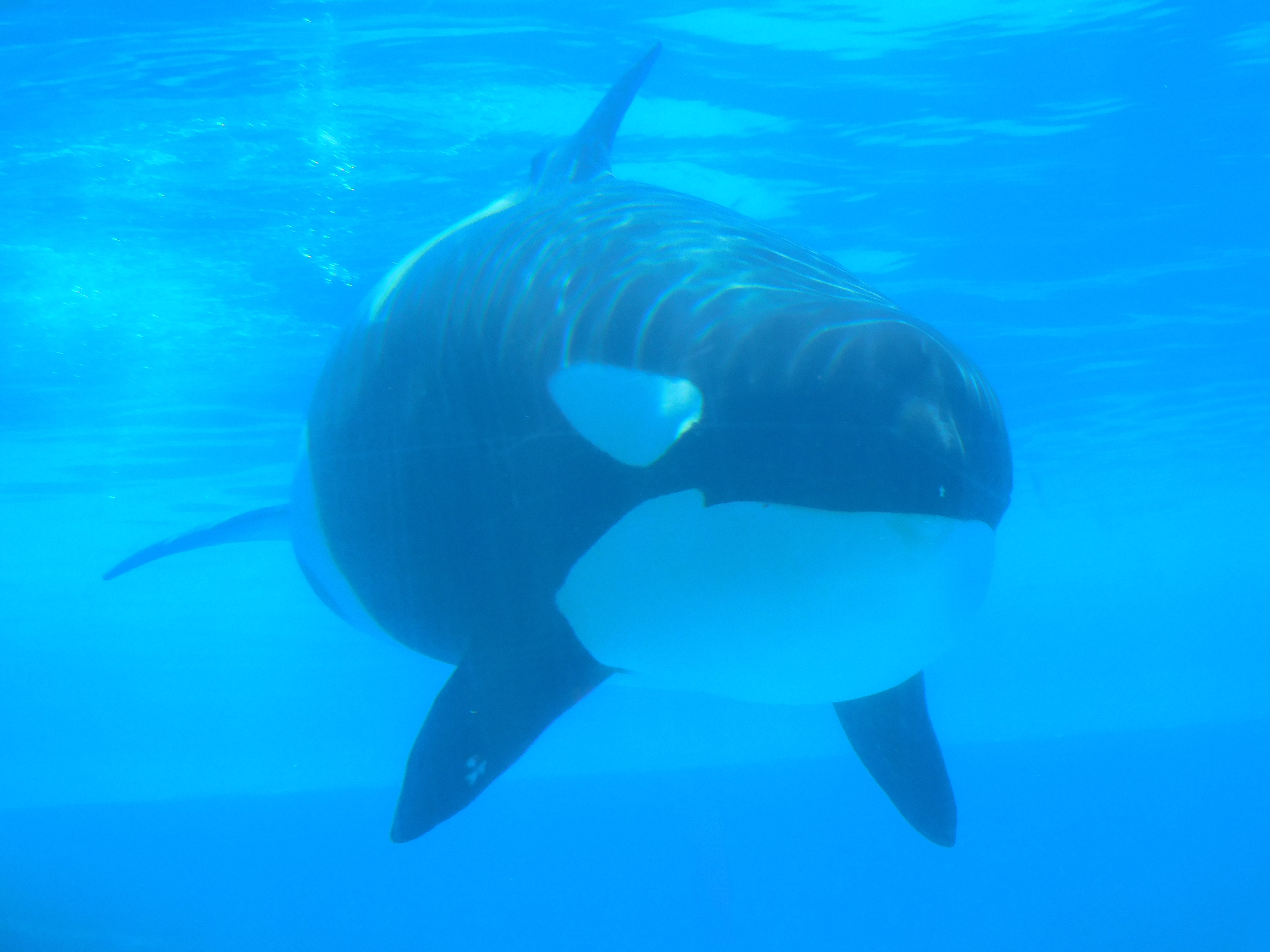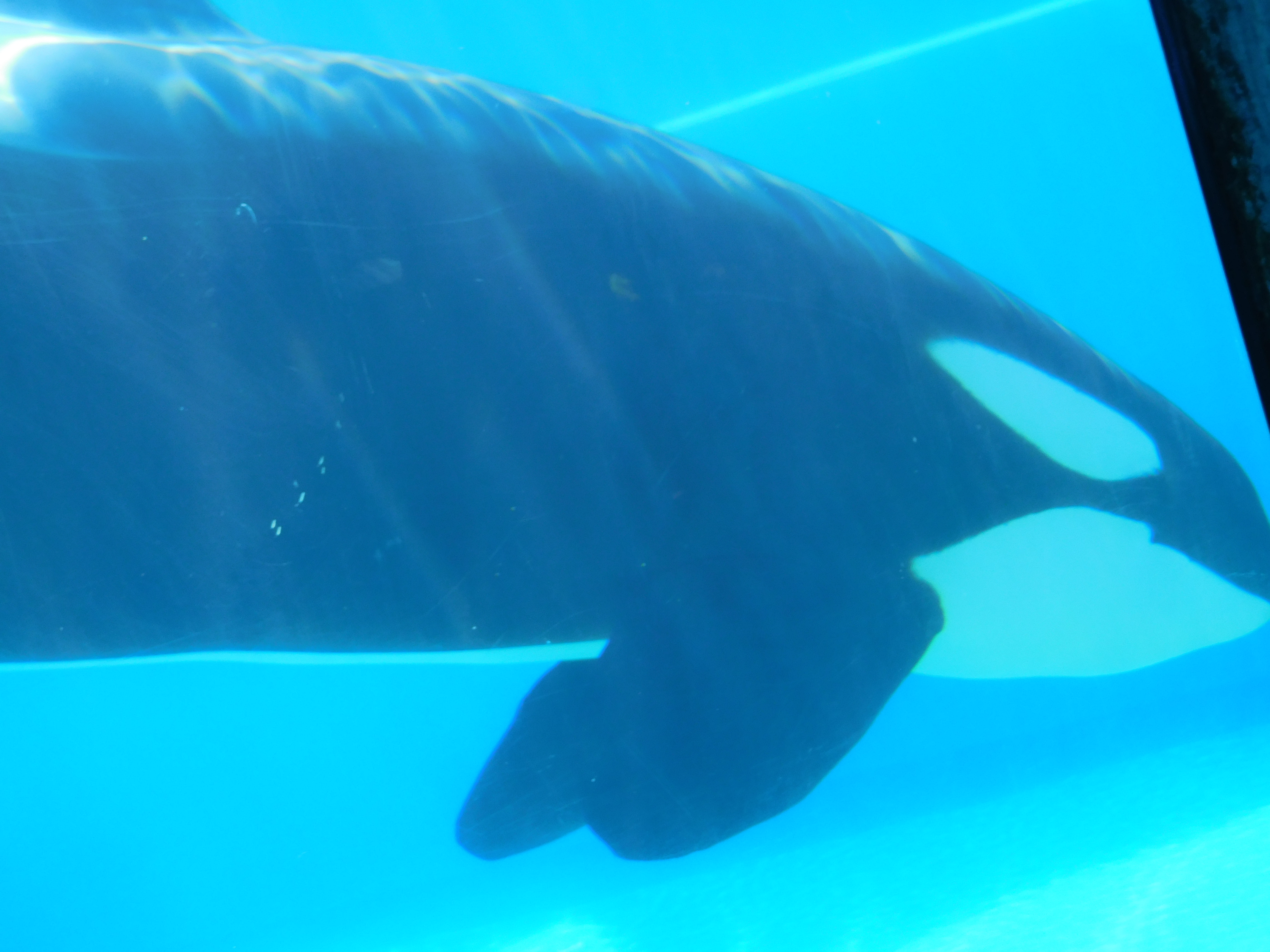 Danach kamen wir bei einem gemischten, abgetrennten Becken an. Auf der einen Seite waren die Orcas.