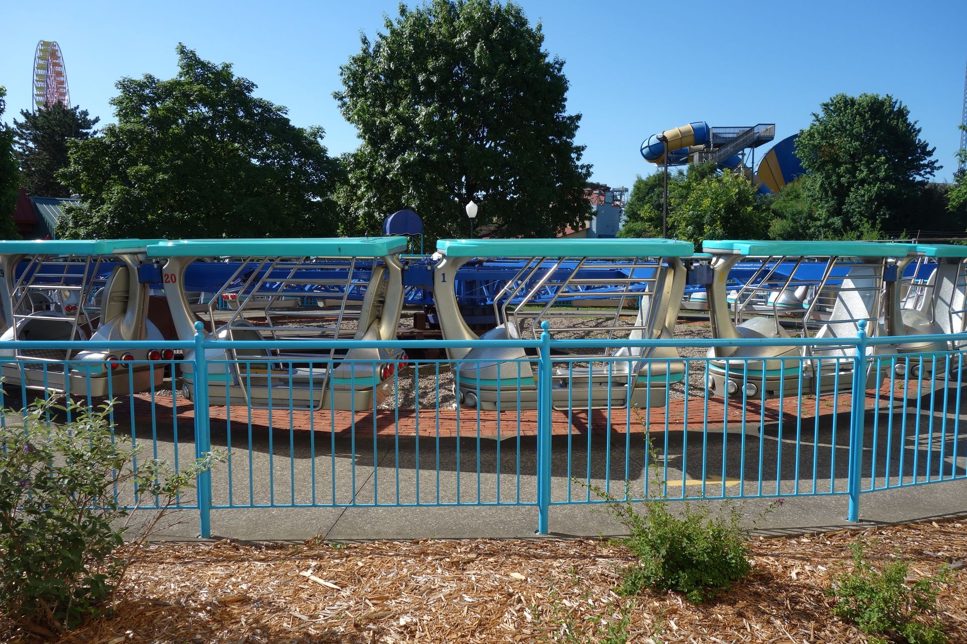 Wohingegen der Flying Scooter zur Neueröffnung 2014 hinzukam. Ebenso wie das blaue Gebilde im Hintergrund.