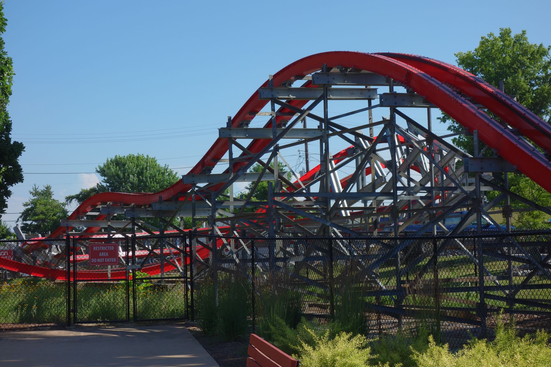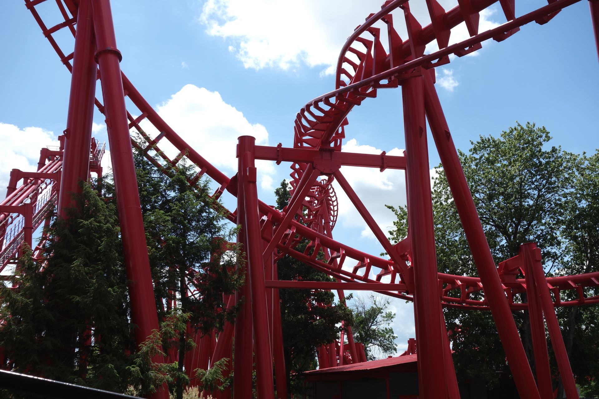 Denn da hinten lächelte uns eine knallrote Schiene an, die zum letzten Count des Parks gehört.