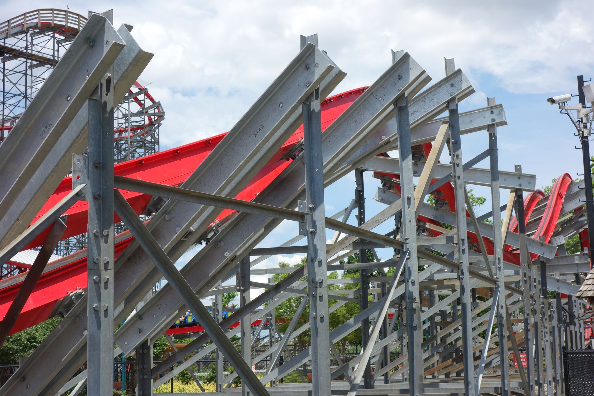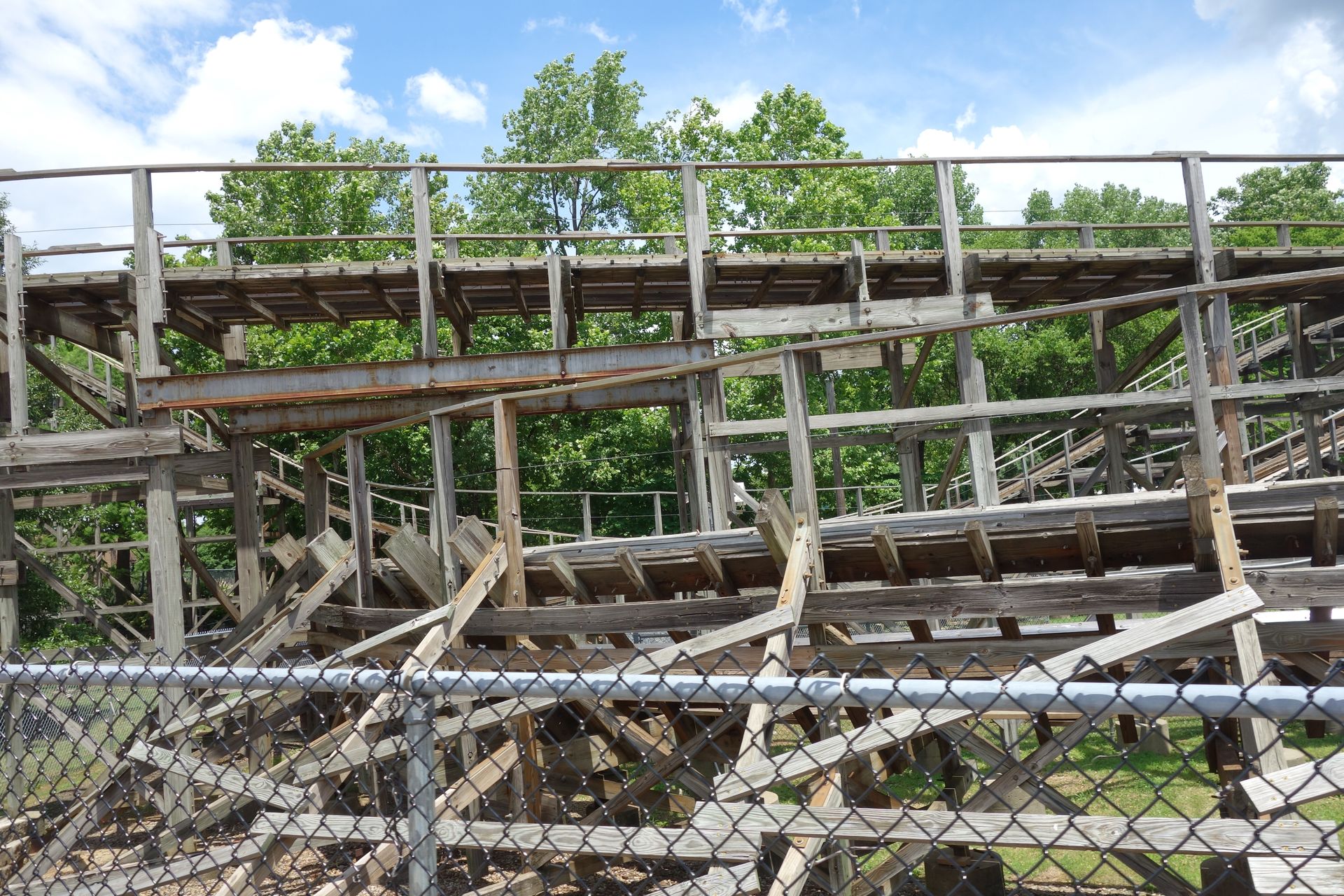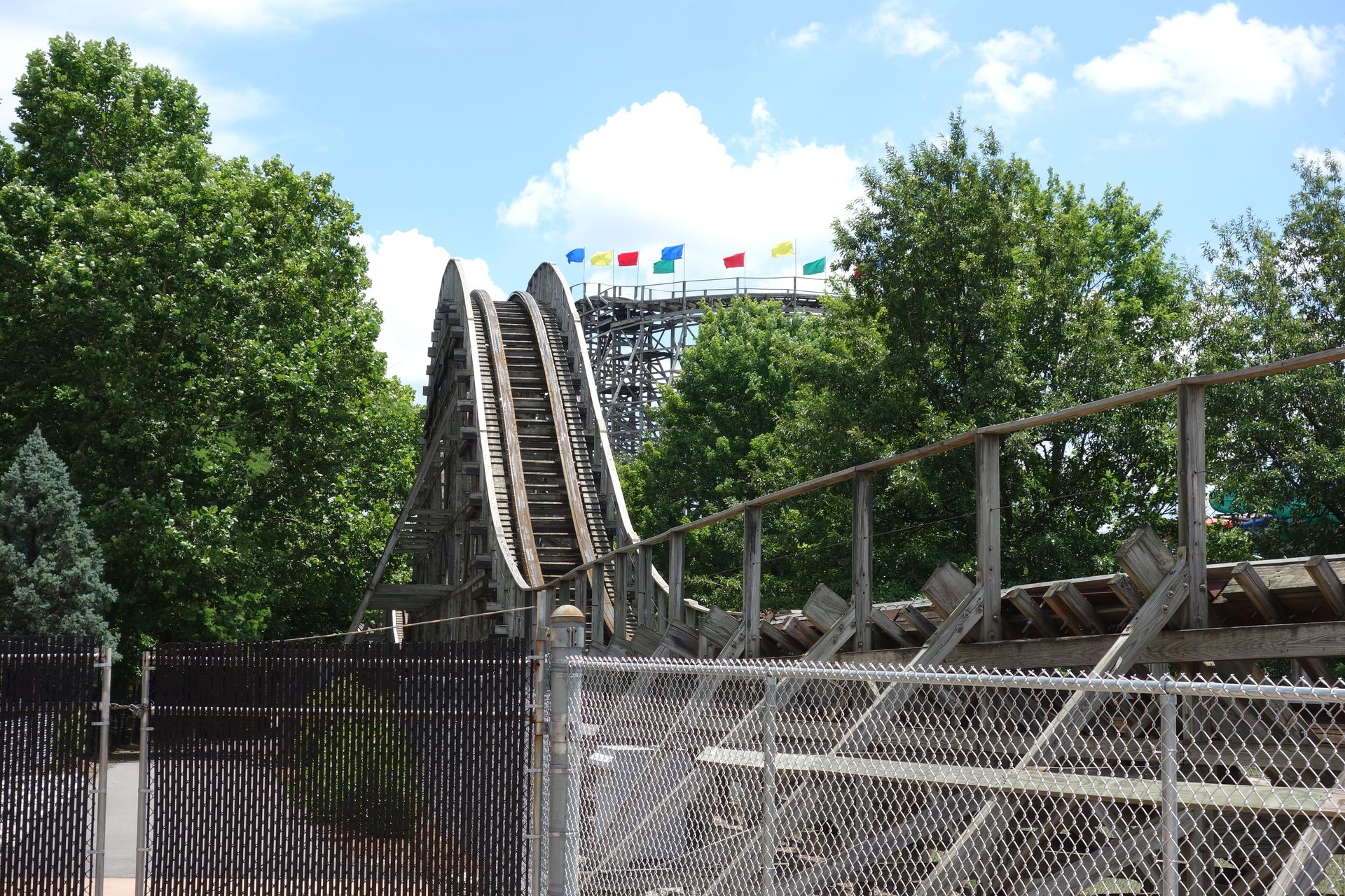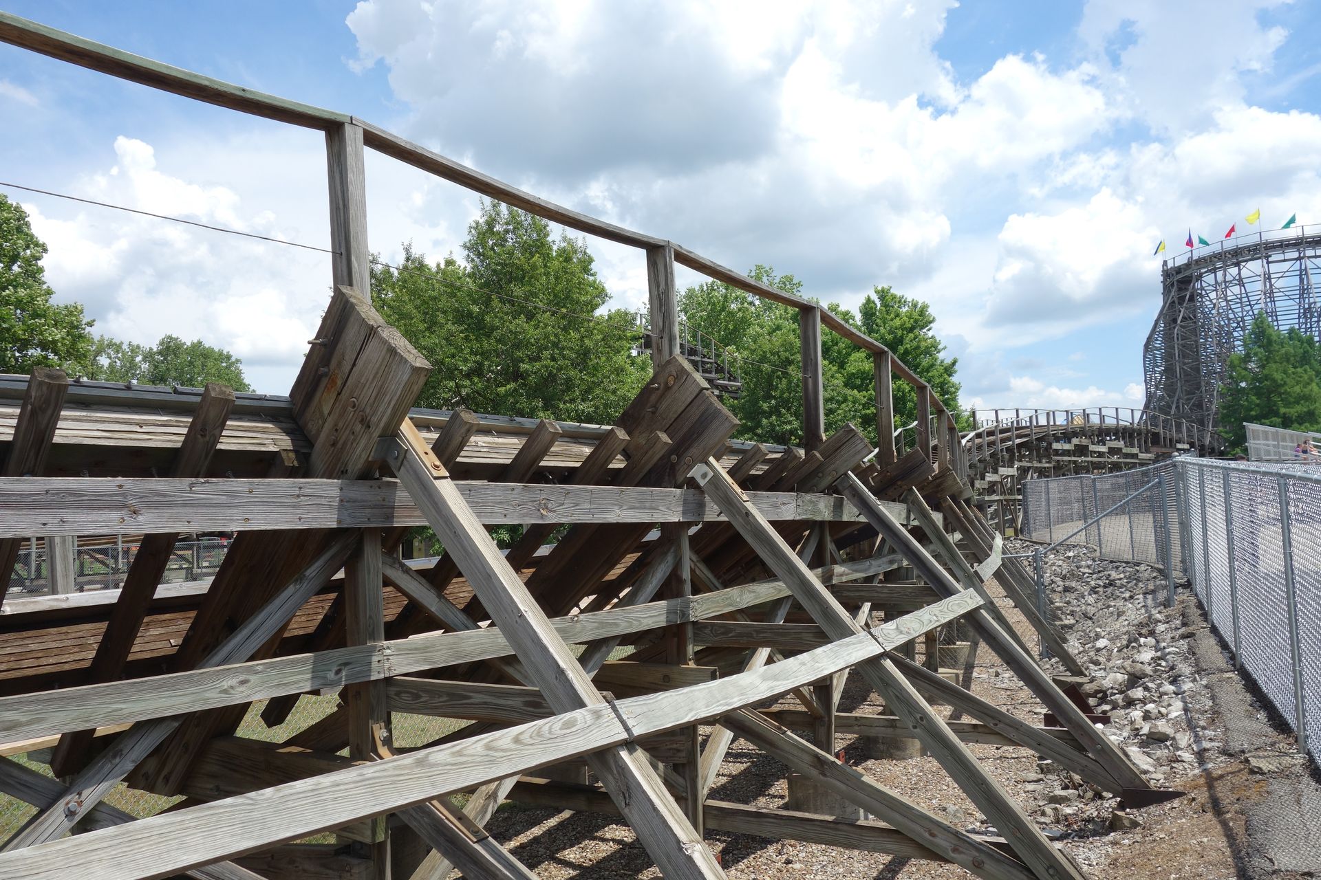 RMC zu einer neuen, aufregenderen Bahn umgebaut werden sollten. Aus den beiden Duelling Woodies wurde also der einzelne Storm Chaser, der dank der stählernen Stützkonstruktion genau genommen auch die erste reine Stahlachterbahn von