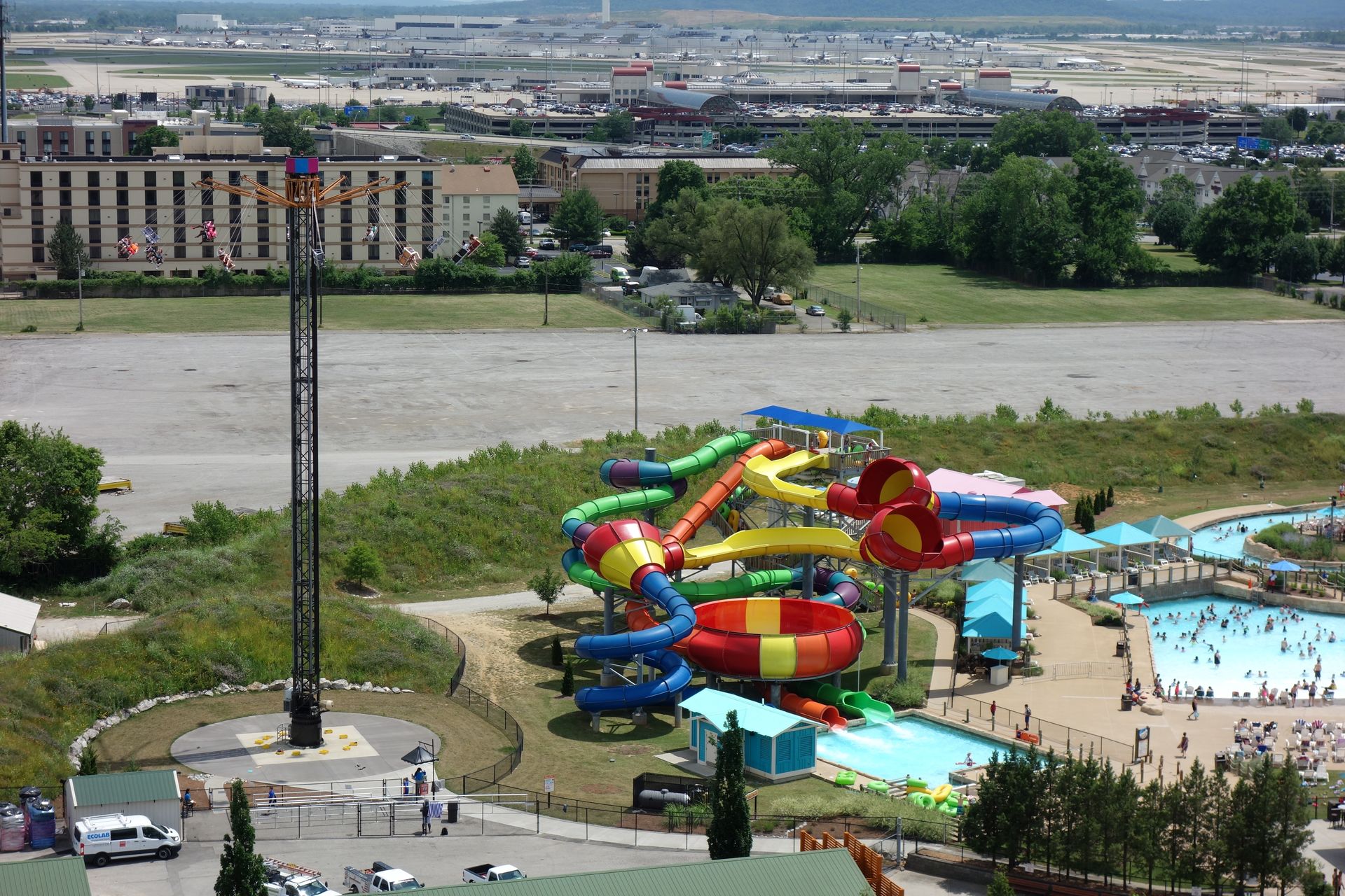 Der ist als Drehkreuz von UPS der drittverkehrsreichste Frachtflughafen der USA und weltweit auf Platz sieben. Passagierflüge beschränken sich allerdings auf inneramerikanische Destinationen. Wir wollten zwar nicht wegfliegen, aber zum Abheben sollte die ein oder andere Bahn im heute zu besuchenden Park wohl durchaus gut sein. Direkt am Flughafen gelegen, befindet sich das 1956 eröffnete Kentucky Exposition Center, wo seither jedes Jahr im Sommer die Kentucky State Fair stattfindet. 1987 pachteten einige texanische Investoren etwa 4 Hektar des Geländes, um einen kleinen Freizeitpark als Erweiterung zur State Fair zu errichten. Der Erfolg hielt sich allerdings in Grenzen, die Betreibergesellschaft war schon nach dem ersten Jahr pleite und der Park blieb geschlossen. Erst 1989 erwarb Ed Hart mit einer Gruppe die Betriebsrechte des Parks, sodass dieser nach Begleichung noch offener Rechnungen im Jahr 1990 wieder eröffnen konnte. In den Folgejahren galt der Parks als einer der am schnellsten wachsenden Freizeitparks in den USA.