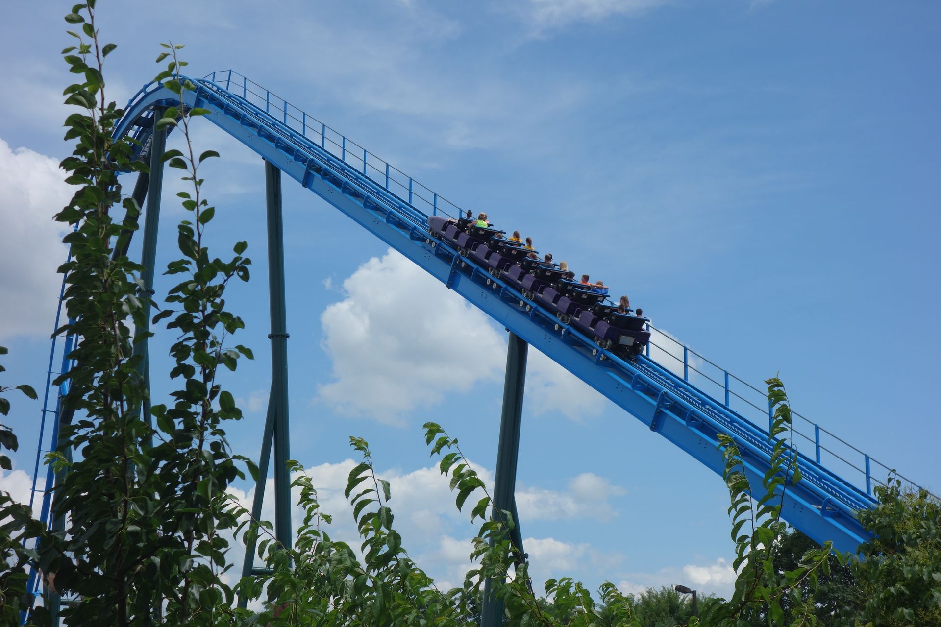 Den First Drop leitet ein vom zwei Jahre älteren Medusa Steel Coaster inspirierter Barrel Roll Downdrop ein. Ein wirklich klasse Auftakt.