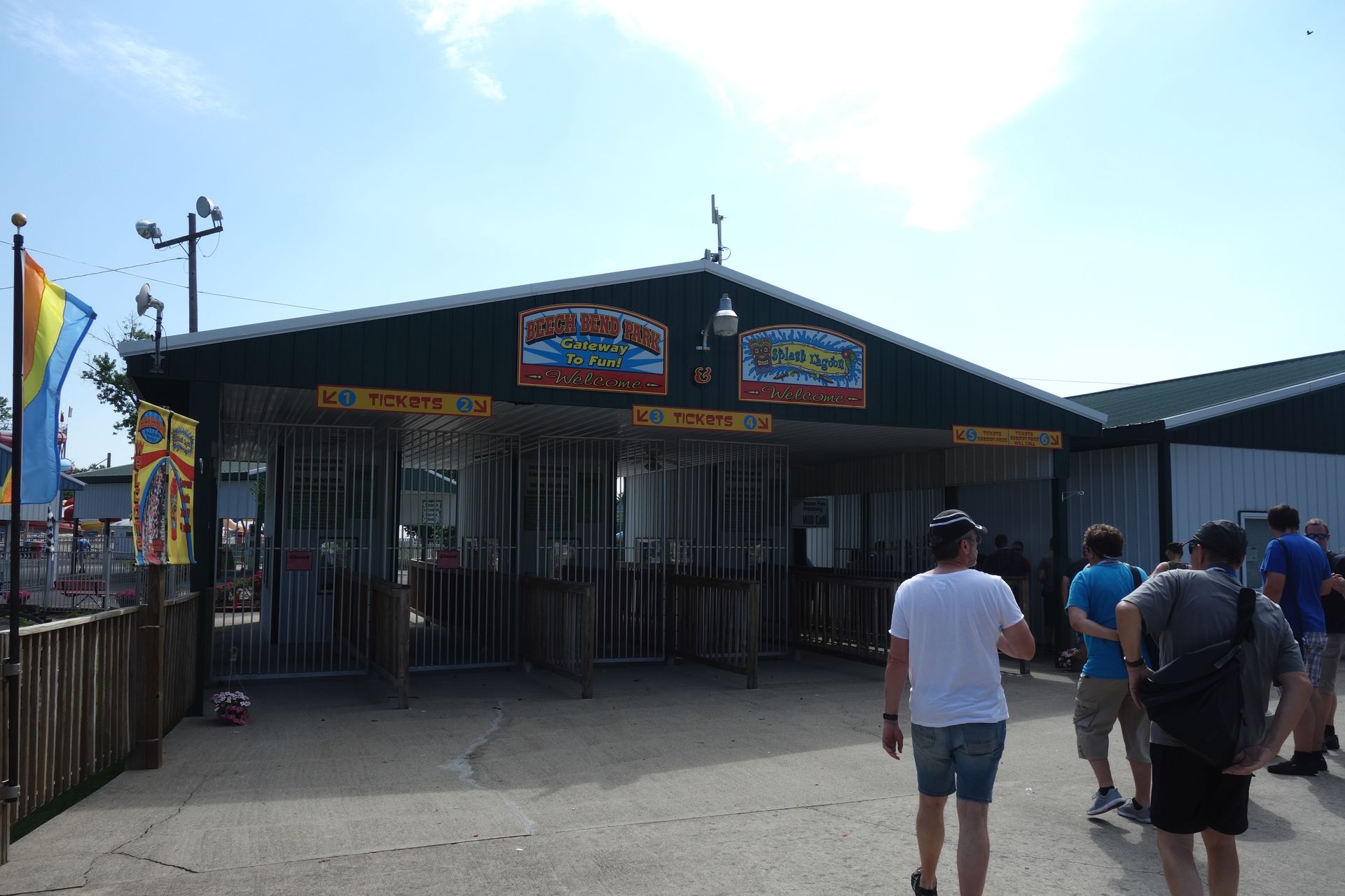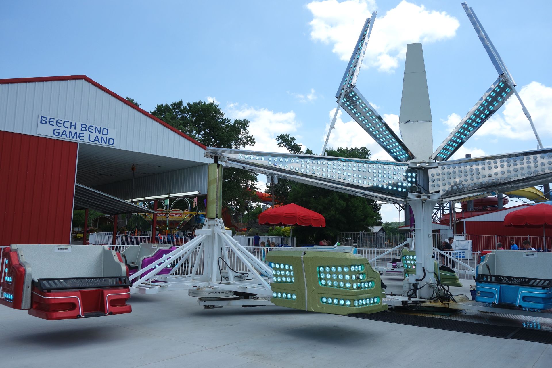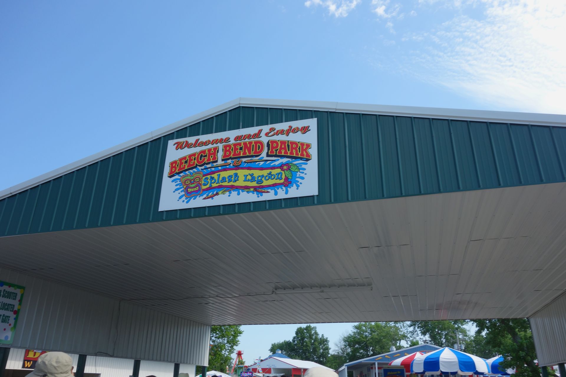 Bevor sich jetzt jemand fragt, wo mitten in Kentucky ein Strand herkommen soll, und warum man das auch noch falsch schreibt: Beech heißt Buche. Und die wachsen ganz in der Nähe an einer Biegung (Bend) des Barren River. Übersetzt heißt der Park also Buchen Biegung. Schon in den 1880er-Jahren wurde hier gepicknickt. Als offizielles Eröffnungsjahr des Freizeitparks gilt 1898. Die ersten kleineren Fahrgeschäfte kamen jedoch erst nach dem Kauf des Geländes durch Charles Garvin in den 1940ern. Zusätzlich zum Freizeitpark wurde eine kleine Rennstrecke etabliert, die aus einem Mini-Oval und einer Dragster-Strecke besteht. In den 60ern folgten ein Campingplatz und ein kleiner Zoo. In den 70ern stagnierte der Park allerdings aufgrund der Konkurrenz durch das nahe Opryland in Nashville. Nach Garvins Tod 1979 blieb der Freizeitpark geschlossen, lediglich auf der Rennstrecke ging der Betrieb weiter. Eine Investorengruppe ließ Beech Bend 1981 nochmals für zwei Jahre zum Leben erwachen, der Erfolg blieb aber aus. 1984 übernahmen Alfreda und Dallas Jones zunächst die Rennstrecke und später auch den Rest des verwahrlosten Geländes. Erst 1990 holten die beiden den Freizeitpark aus seinem Dornröschenschlaf, räumten ihn auf und eröffneten ihn mit neuen Fahrgeschäften wieder. Man kann jetzt nicht unbedingt sagen, dass hier ein Top-Park entstanden wäre, aber er hat sich über die Jahre tatsächlich gut gehalten.