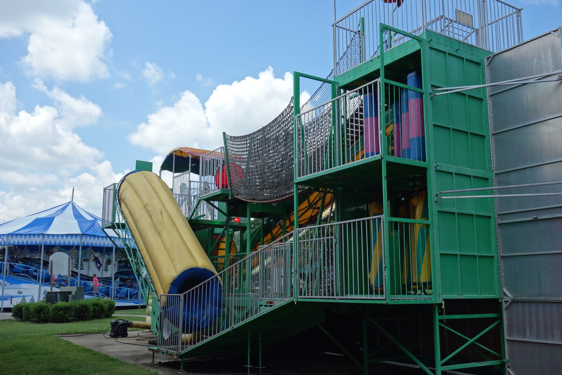 Unter anderem mit einer dieser komischen Flying Saucer Rutschen von ProSlide.
