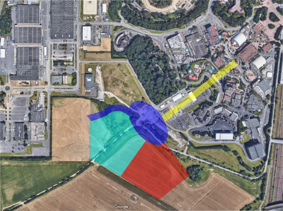 Man sieht aber auch das eine Anbindung ans Disneyland unwahrscheinlich ist. Zum einen doch zu weit weg und dann auch noch an einer Stelle, wo auch im Disneyland nichts ist.