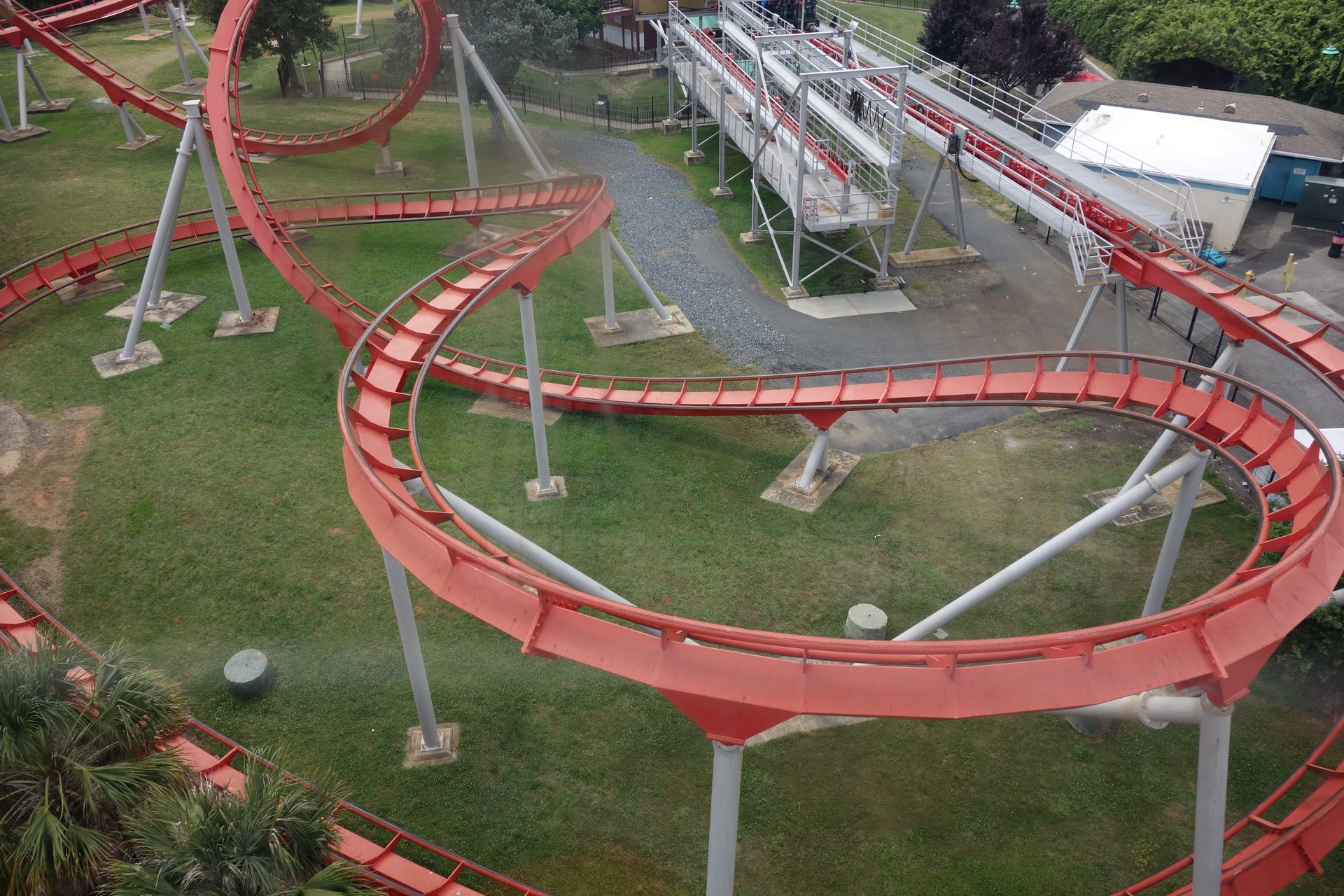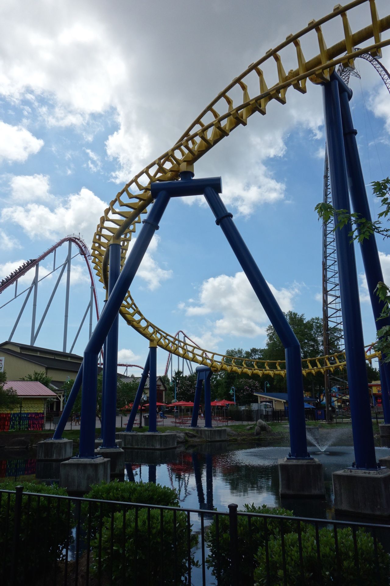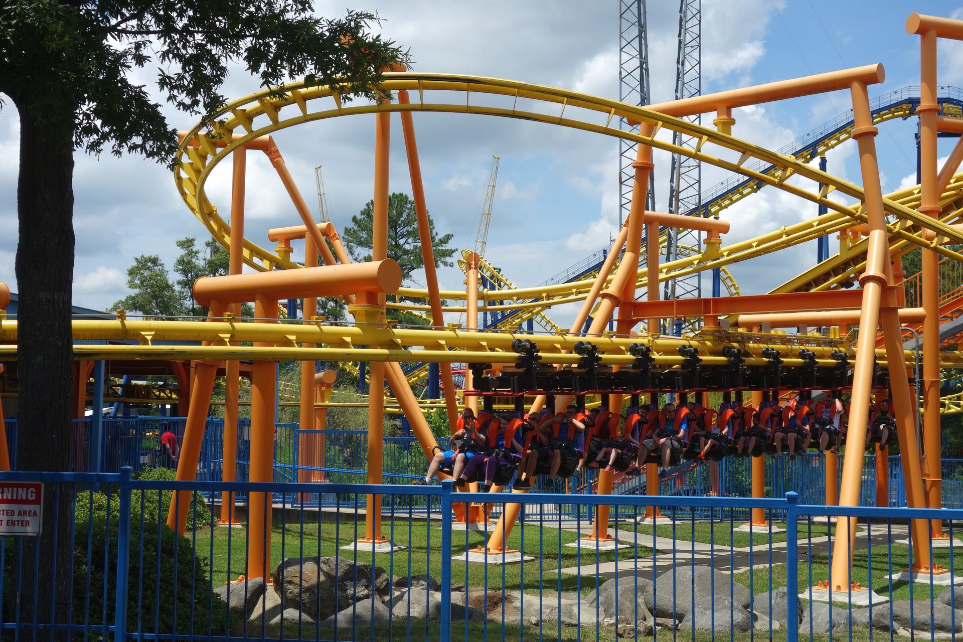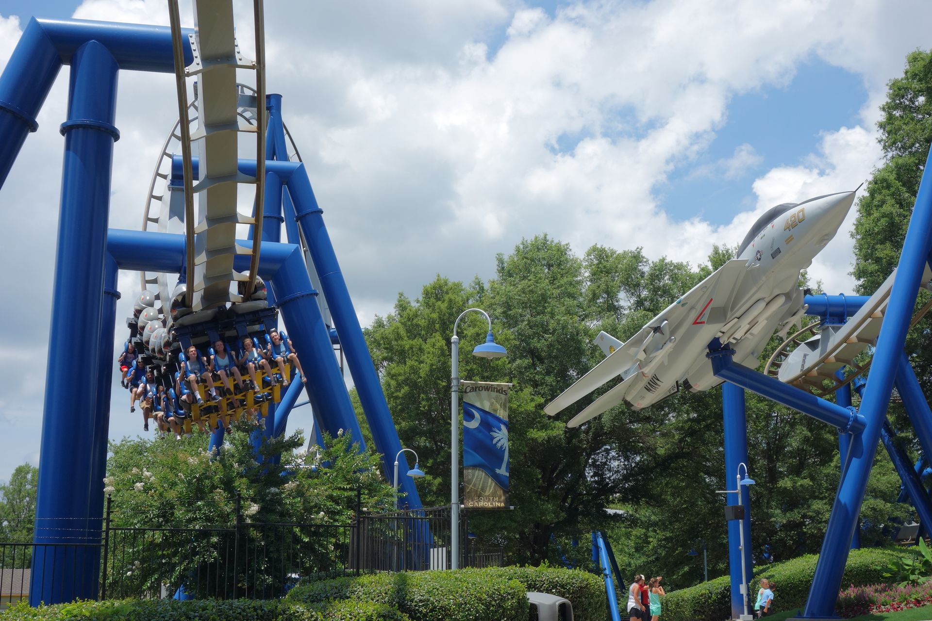 Mit gut 27 Metern Höhe gehört die Bahn zu den kleineren in Carowinds. Dafür geht es mit einem Looping direkt zur Sache.