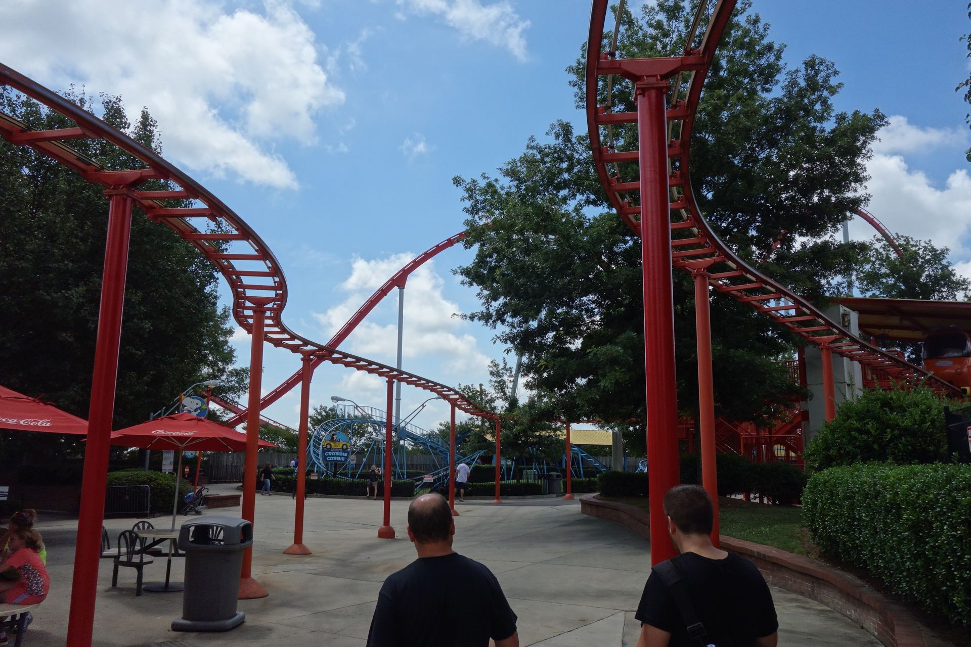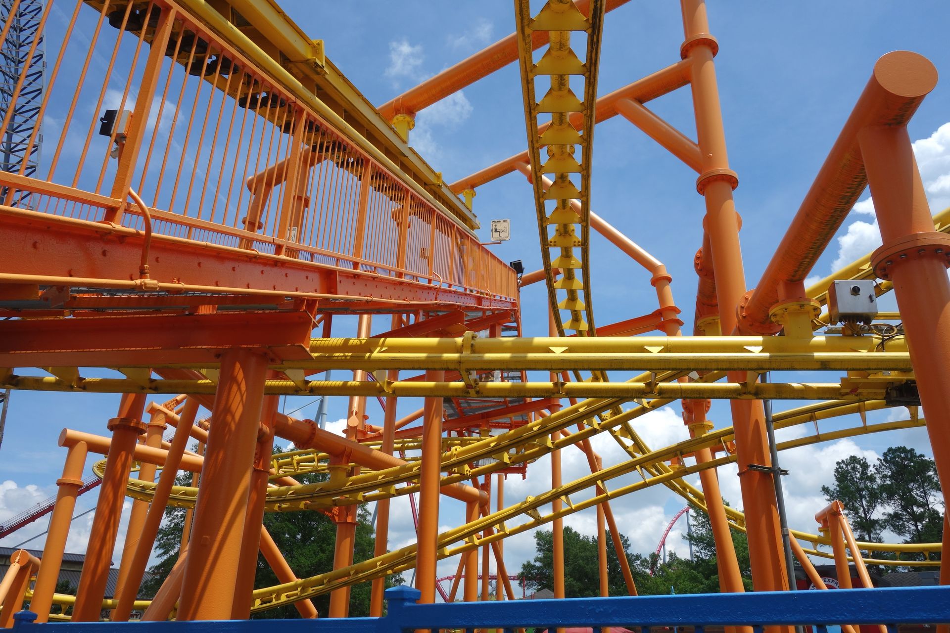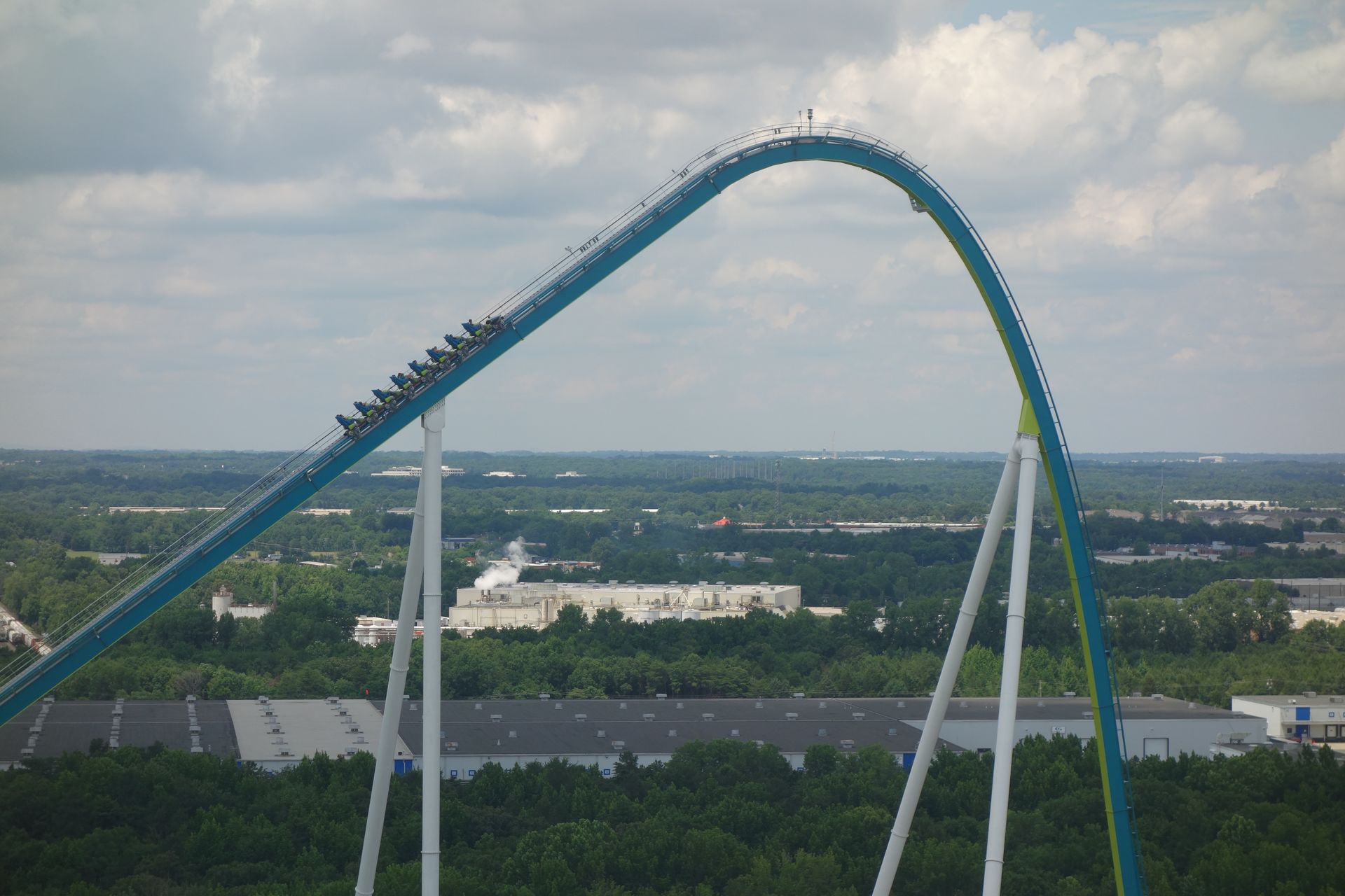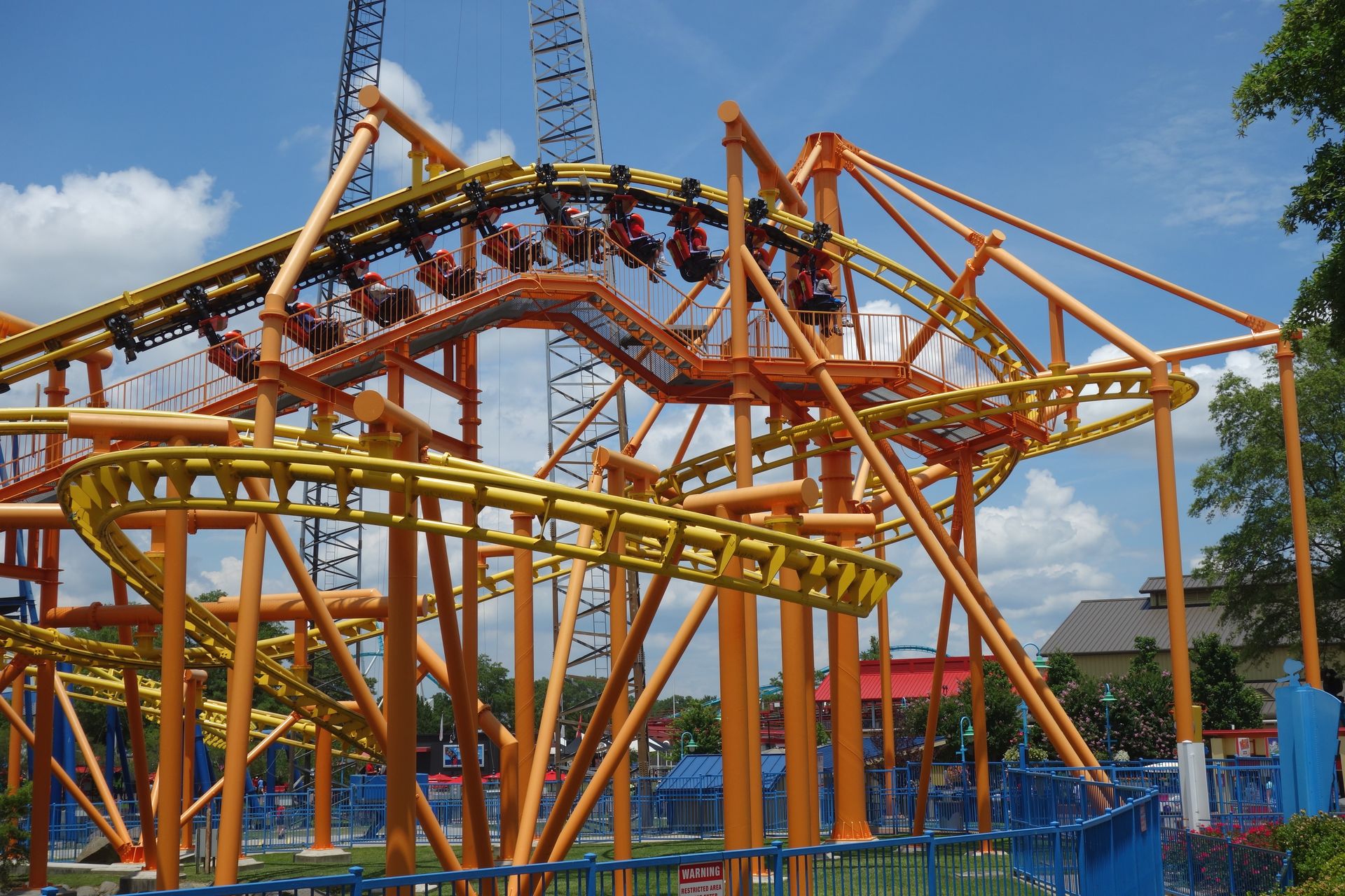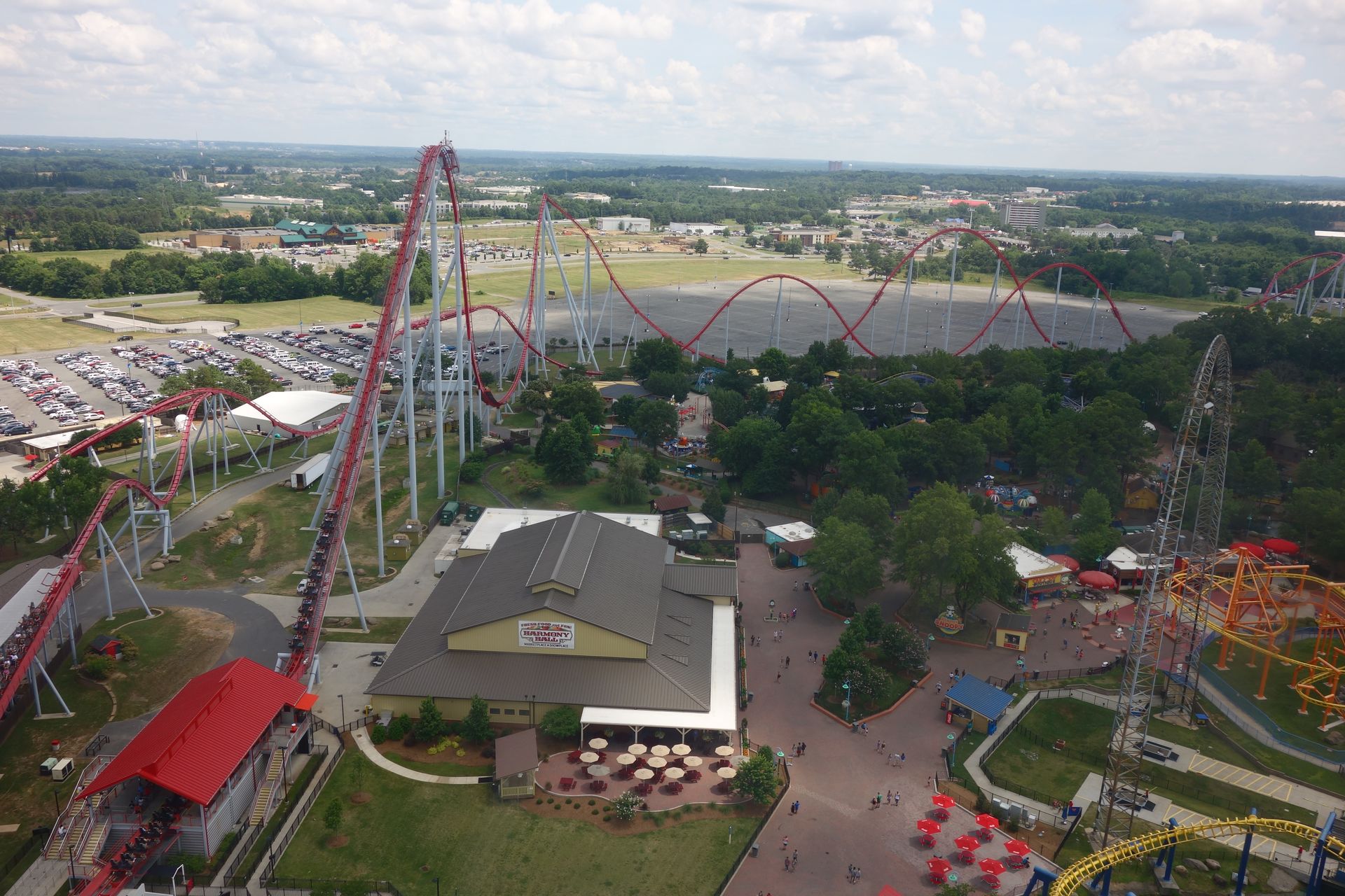 Mit gut 27 Metern Höhe gehört die Bahn zu den kleineren in Carowinds. Dafür geht es mit einem Looping direkt zur Sache.