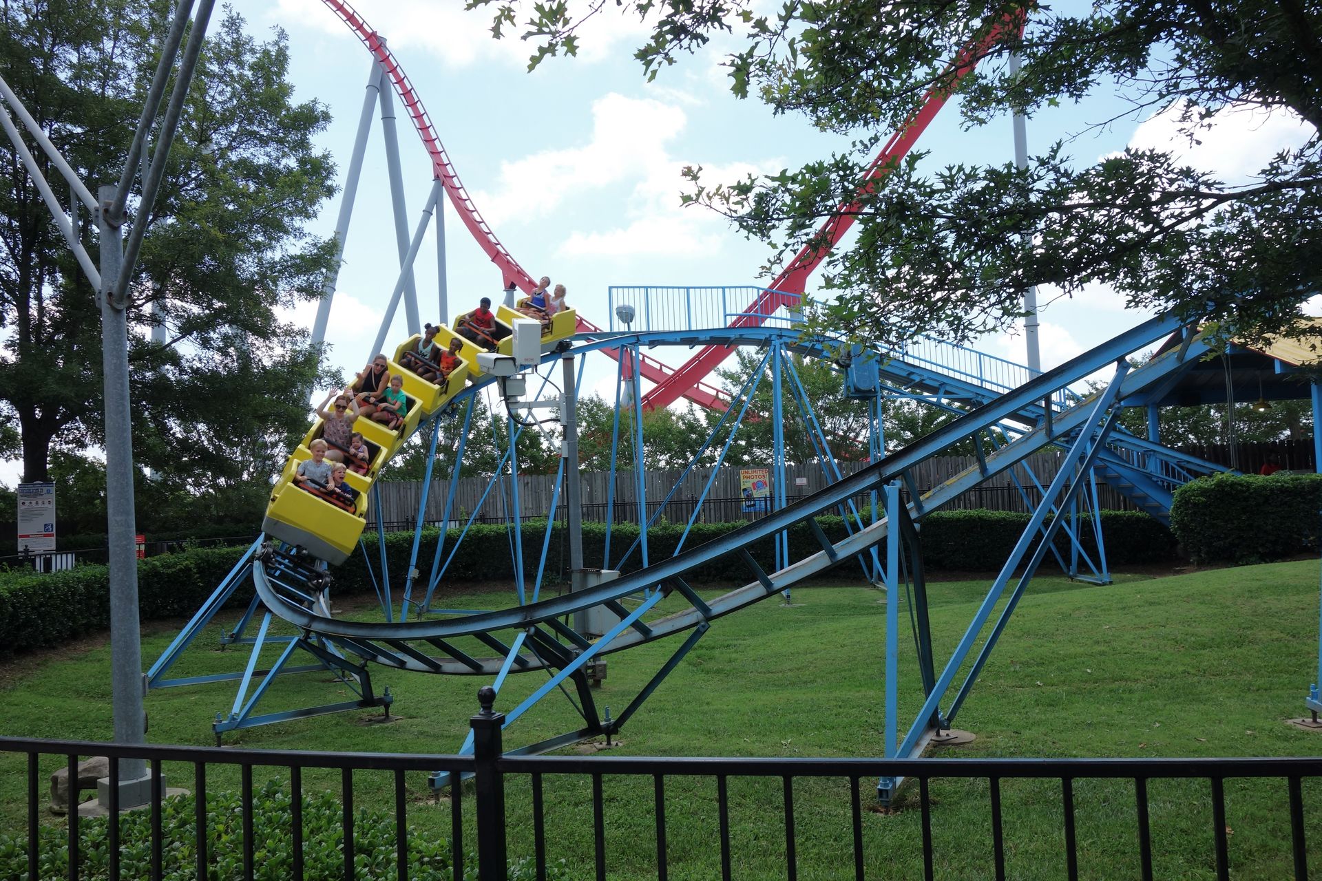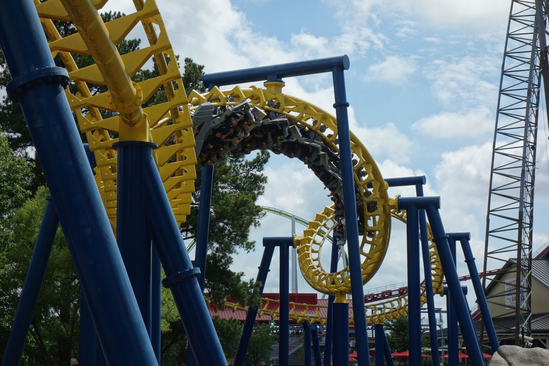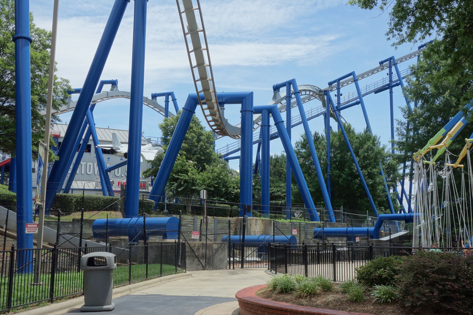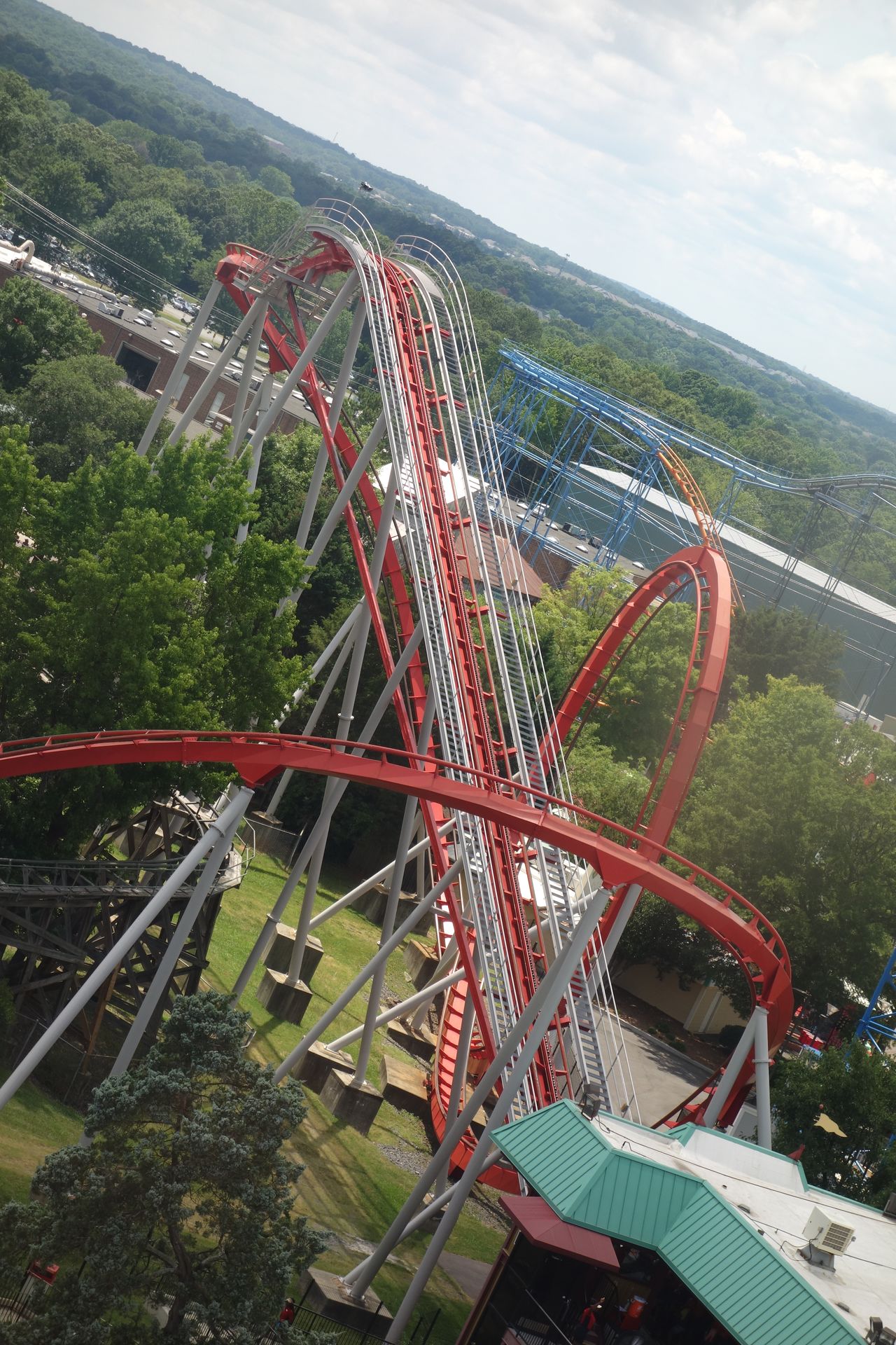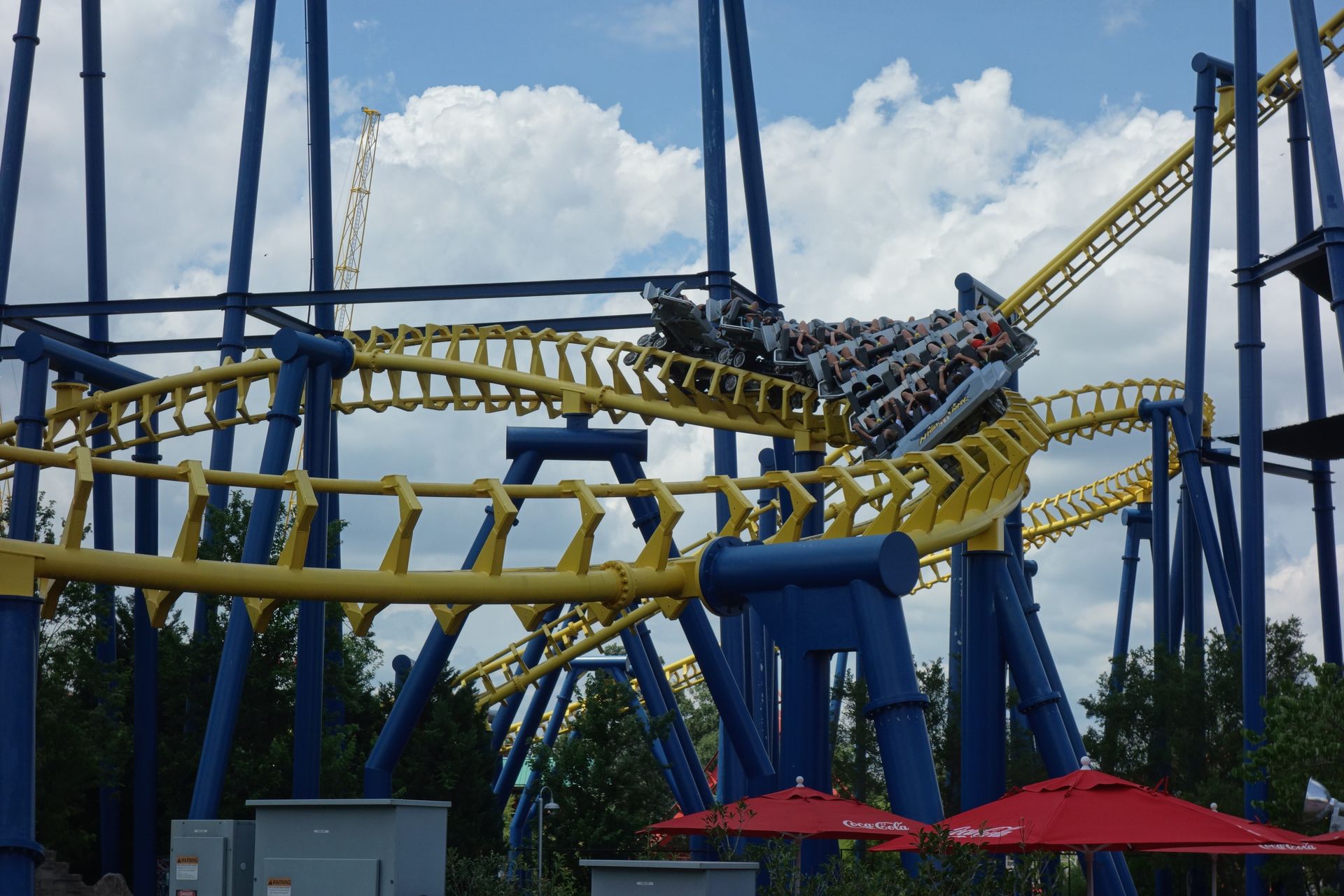 Mit gut 27 Metern Höhe gehört die Bahn zu den kleineren in Carowinds. Dafür geht es mit einem Looping direkt zur Sache.