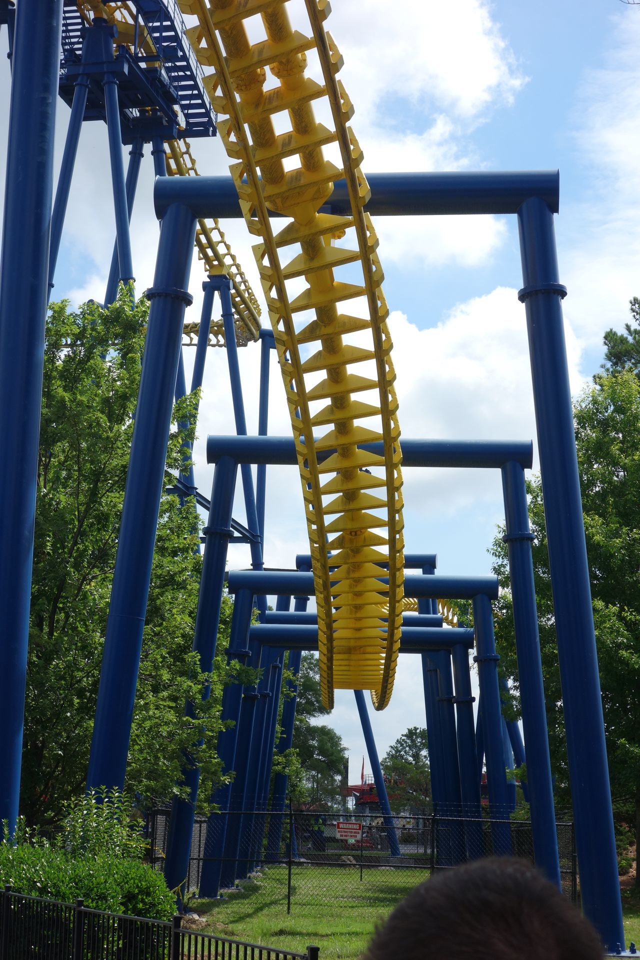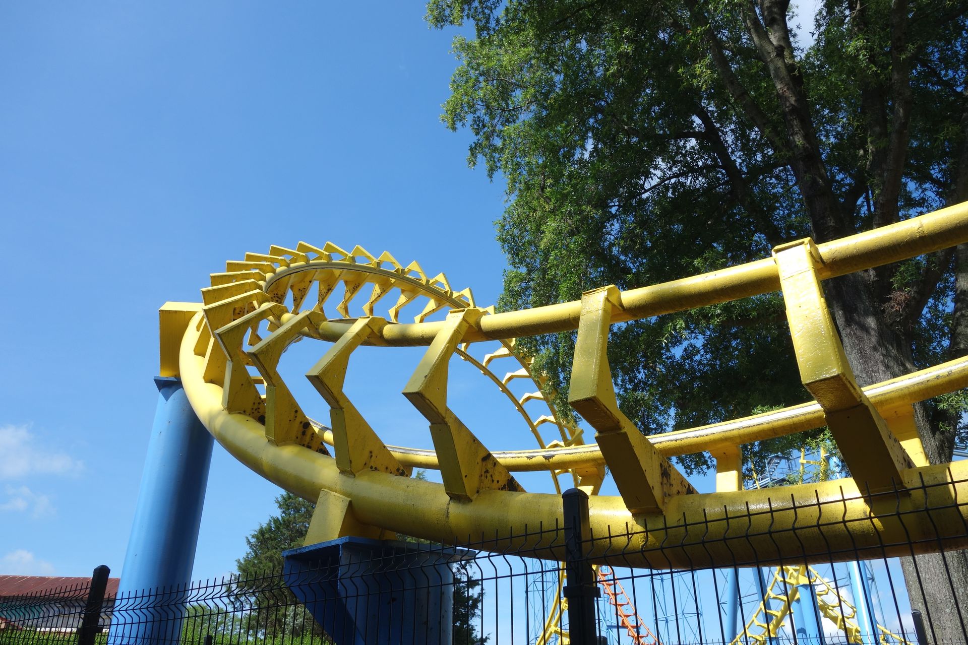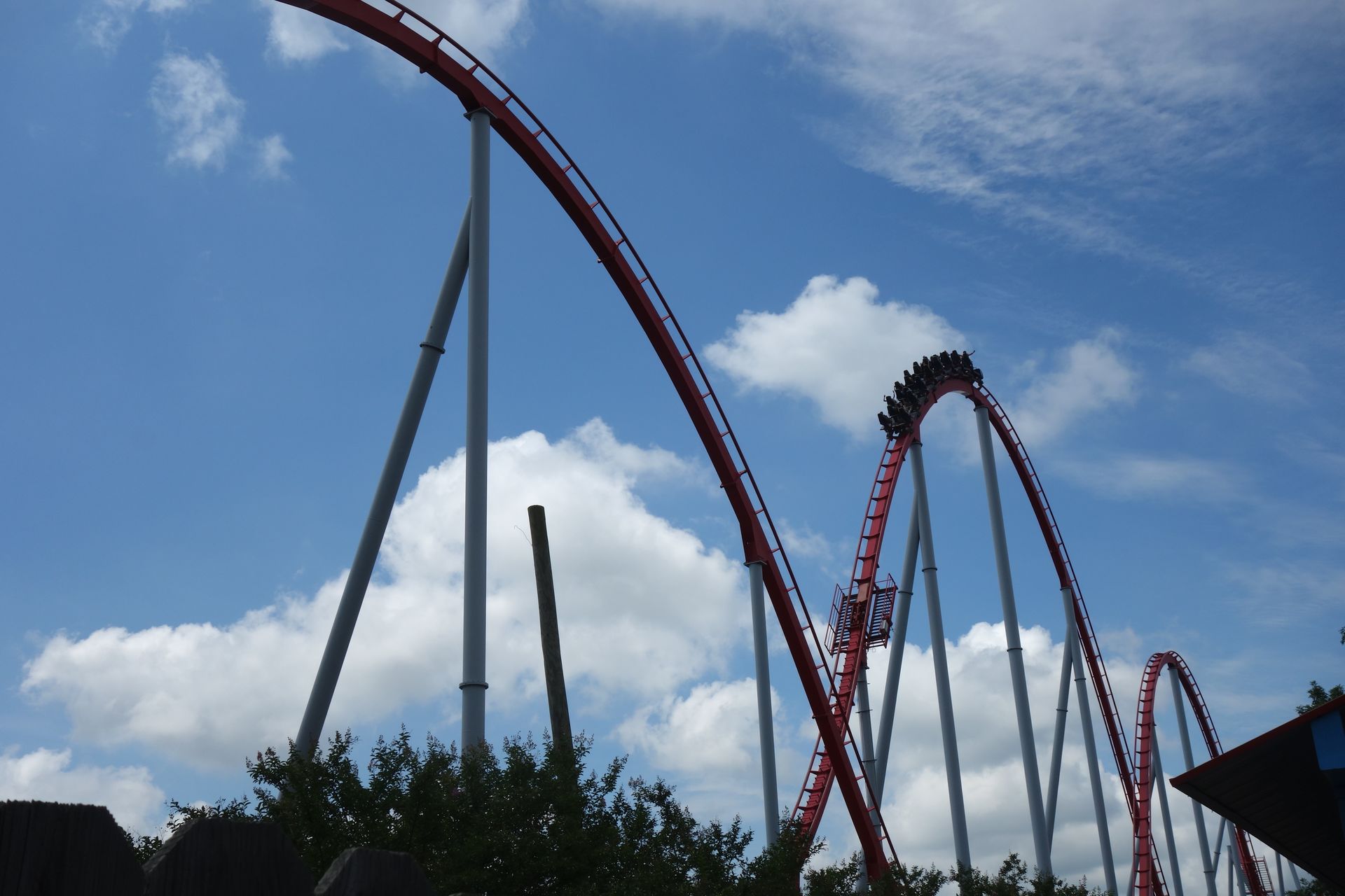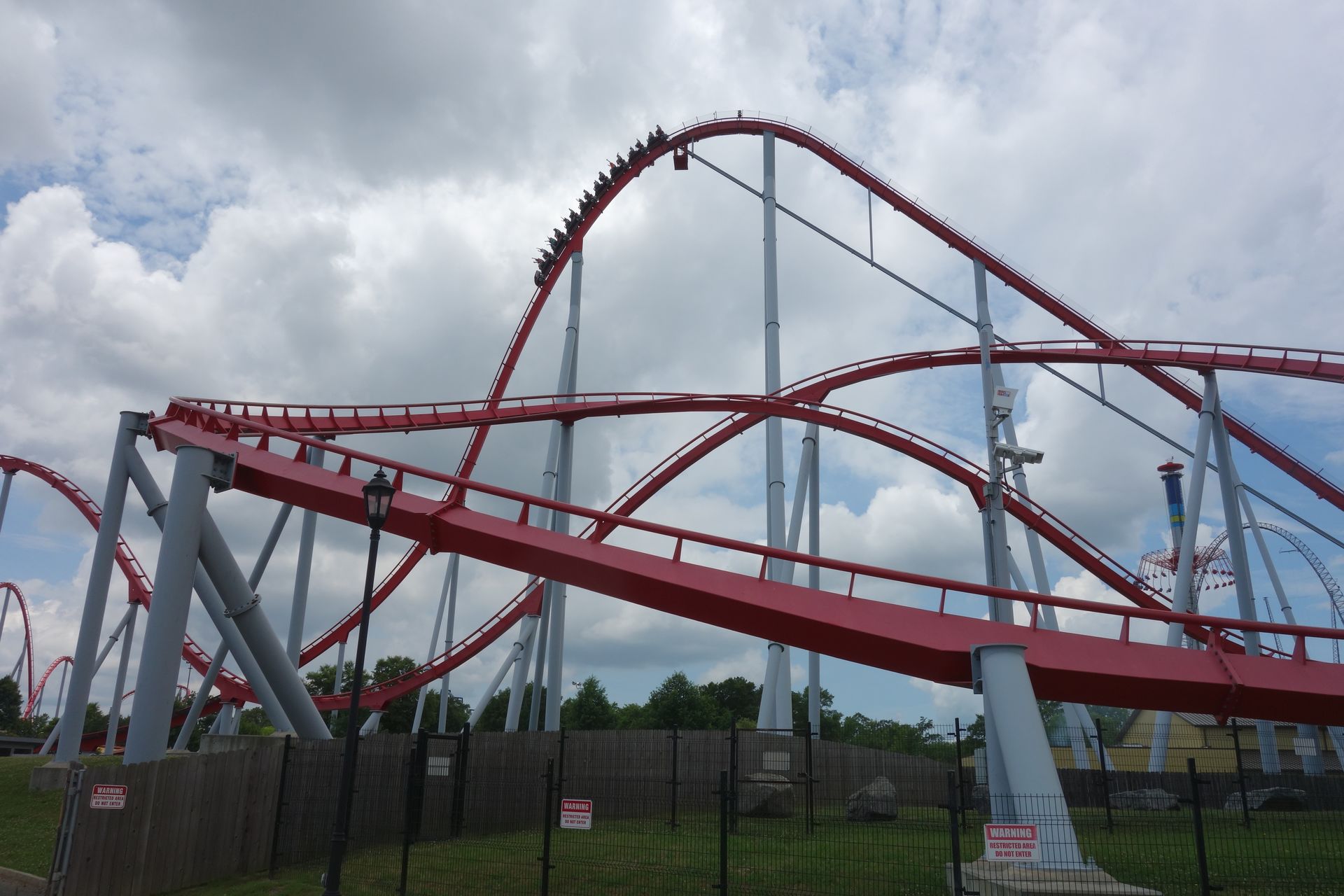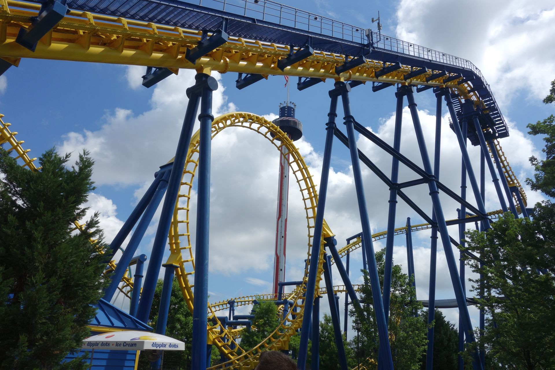 Mit gut 27 Metern Höhe gehört die Bahn zu den kleineren in Carowinds. Dafür geht es mit einem Looping direkt zur Sache.
