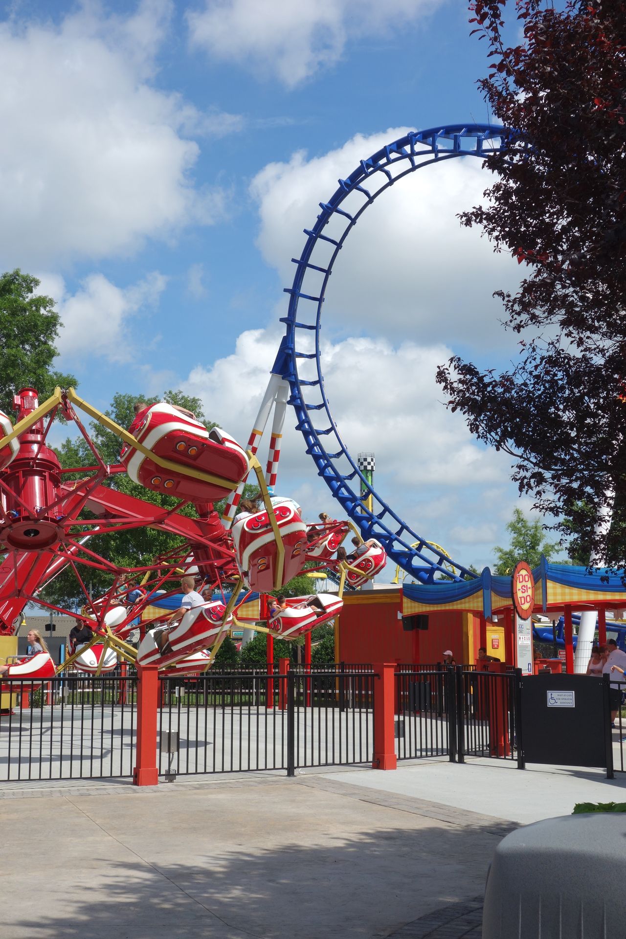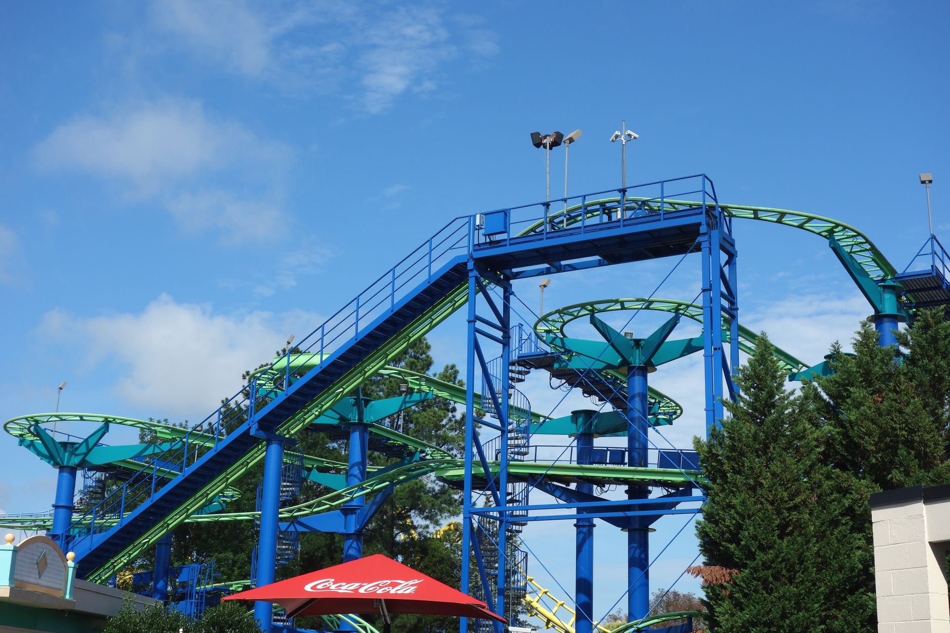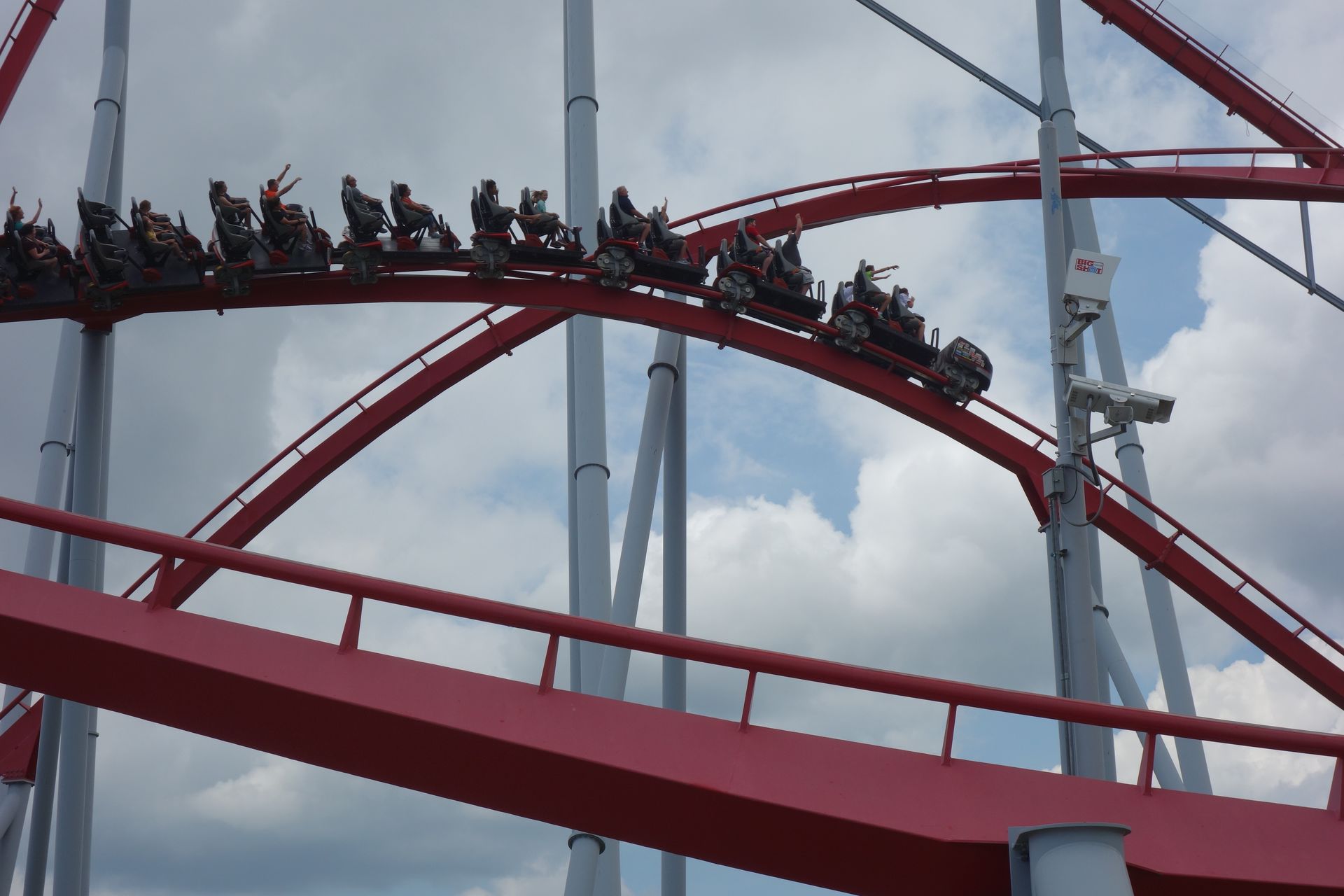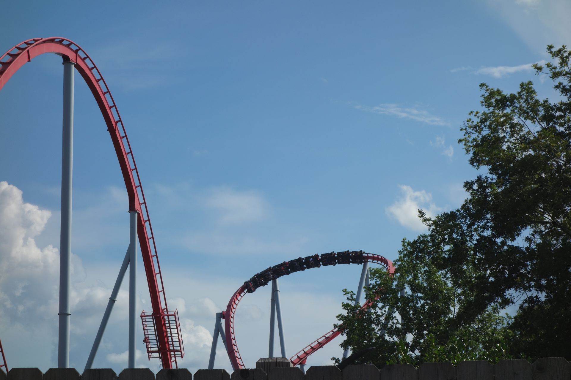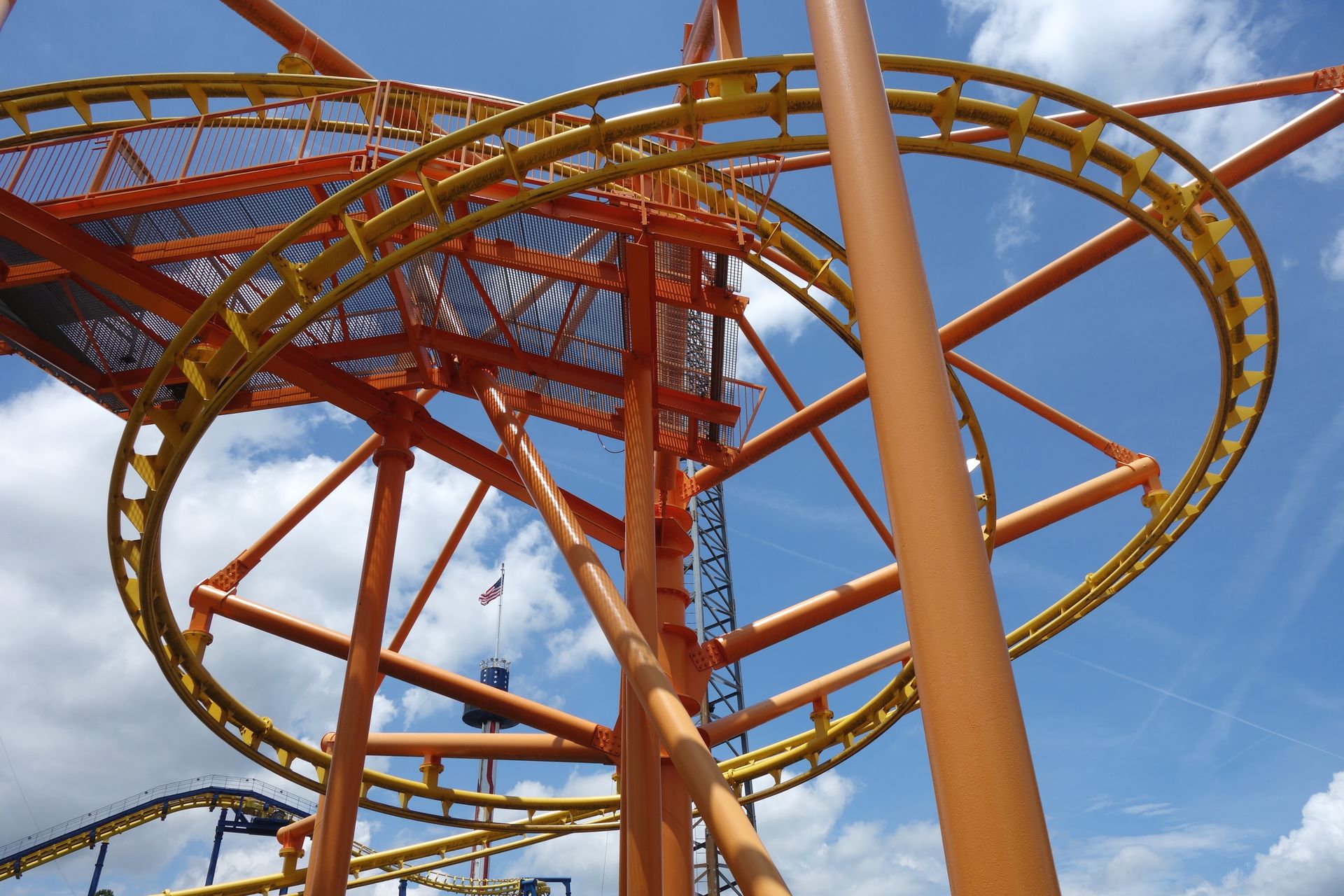 Mit gut 27 Metern Höhe gehört die Bahn zu den kleineren in Carowinds. Dafür geht es mit einem Looping direkt zur Sache.