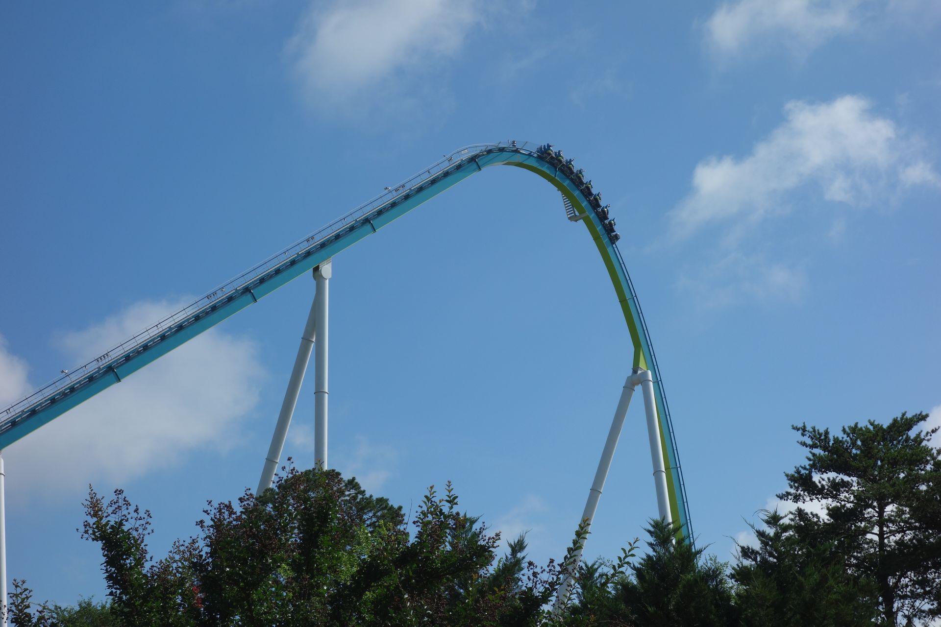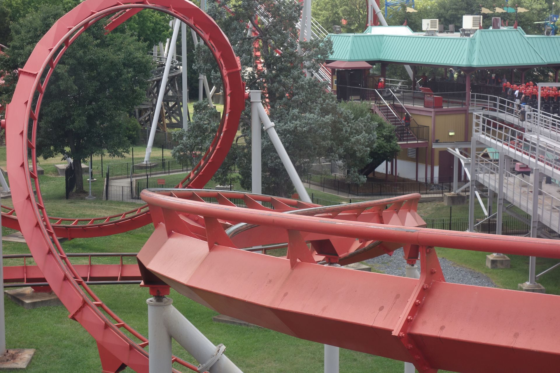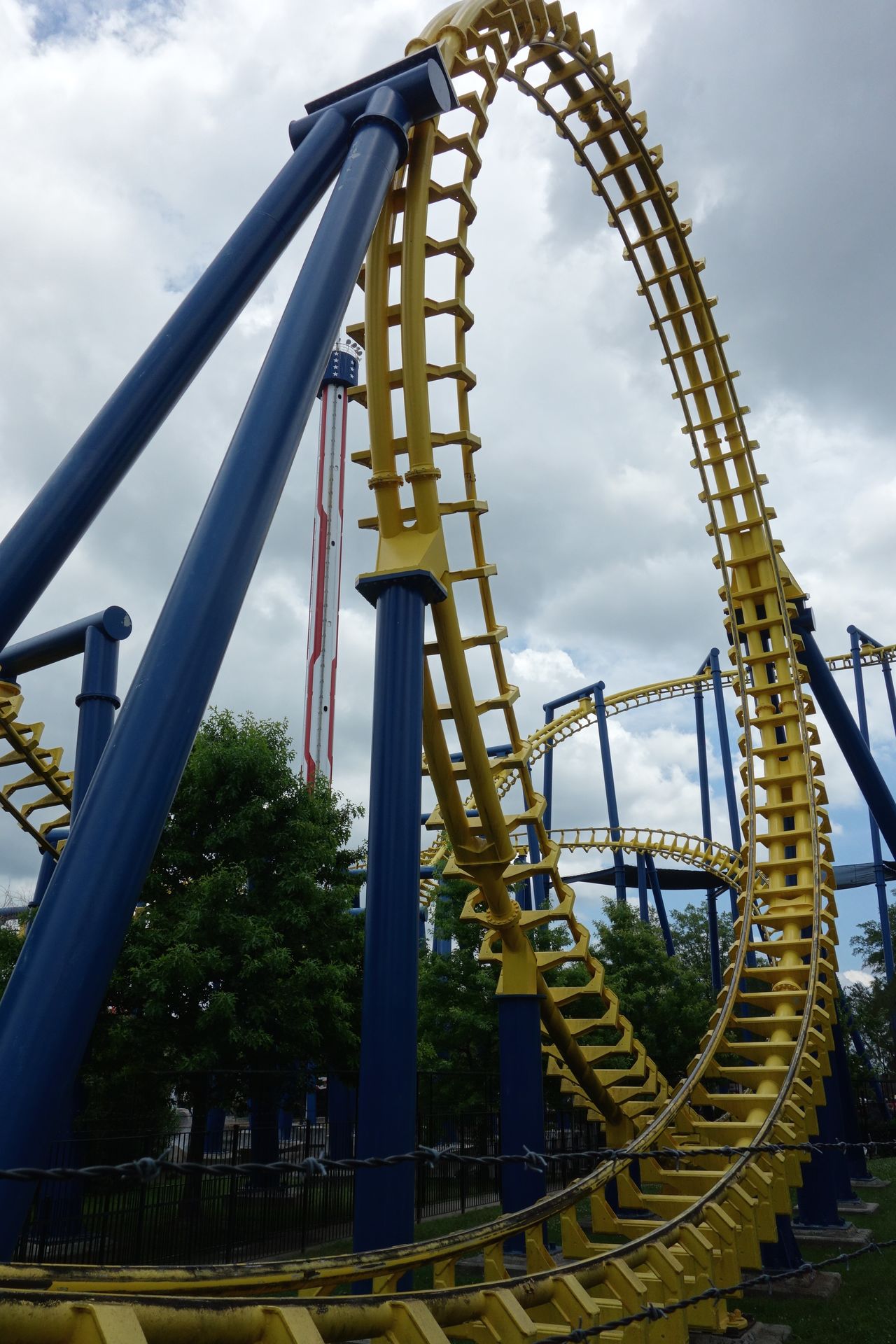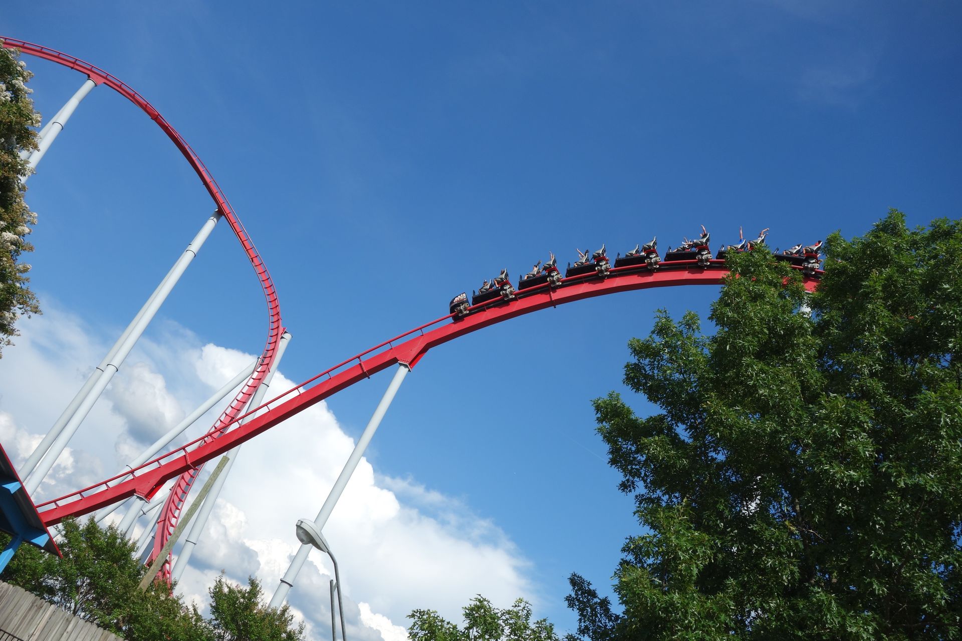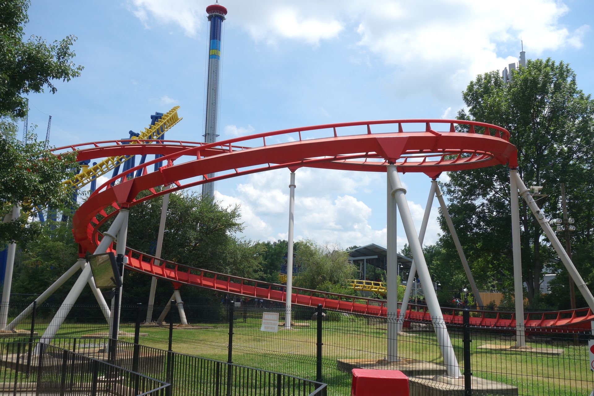 Mit gut 27 Metern Höhe gehört die Bahn zu den kleineren in Carowinds. Dafür geht es mit einem Looping direkt zur Sache.