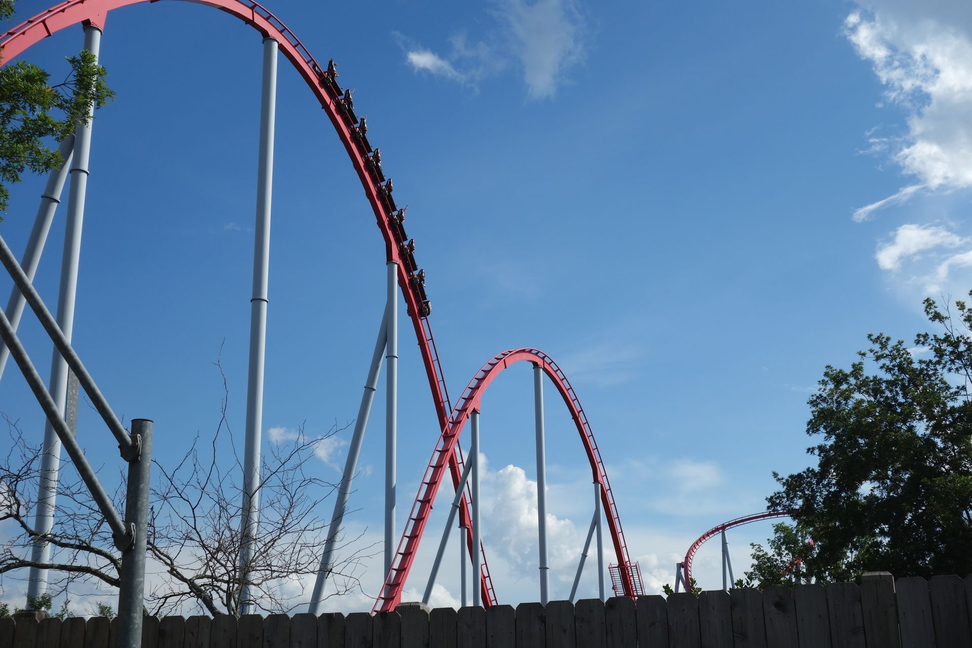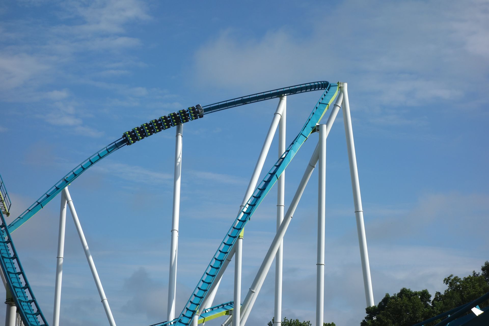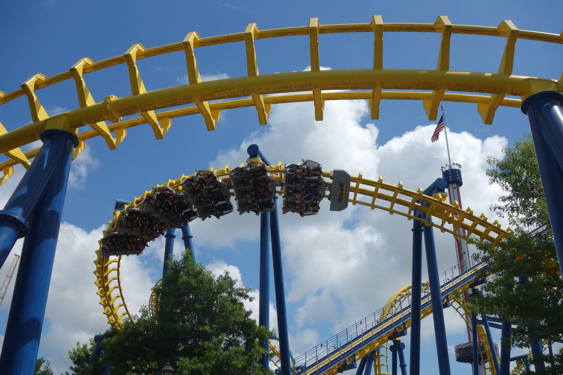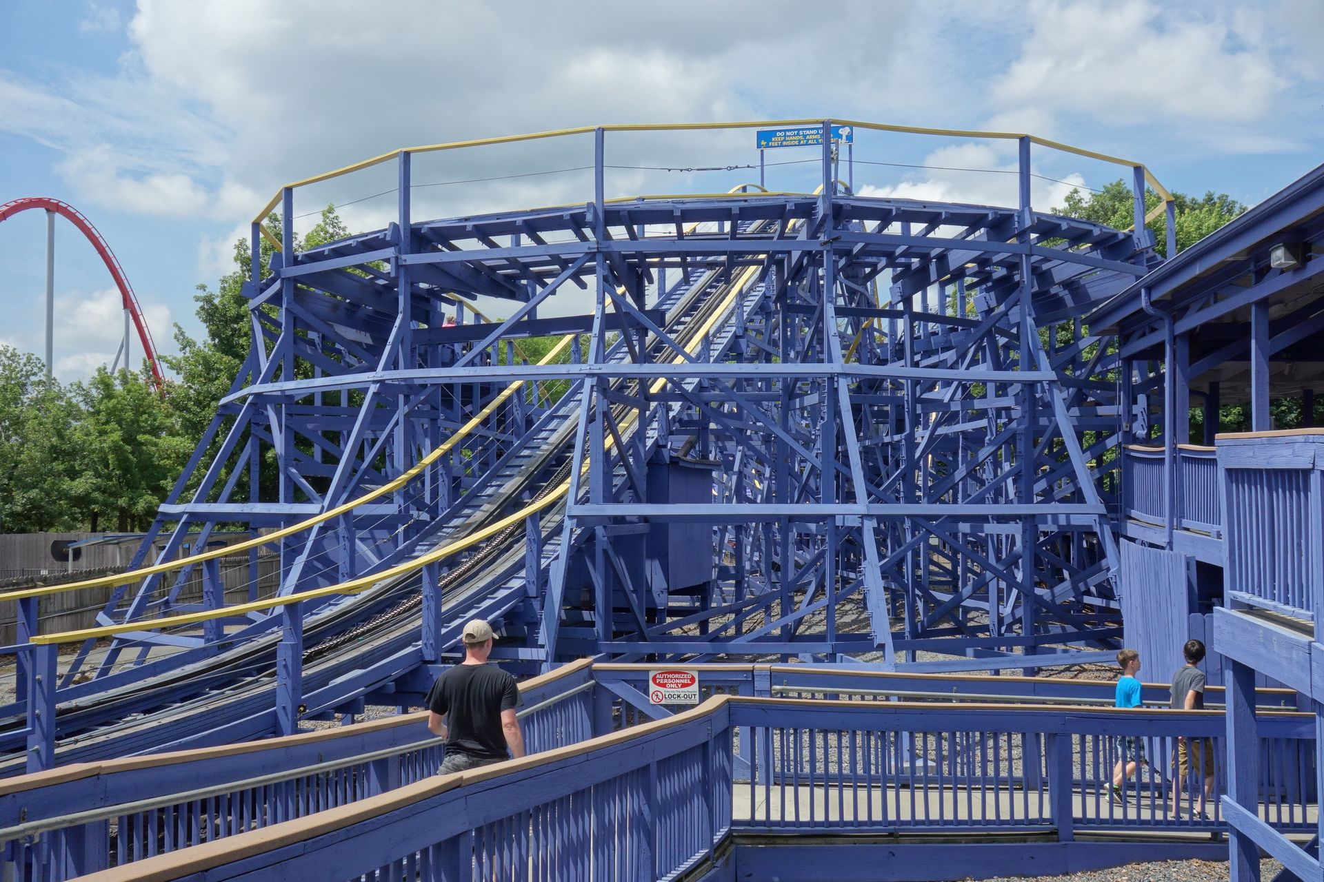 Mit gut 27 Metern Höhe gehört die Bahn zu den kleineren in Carowinds. Dafür geht es mit einem Looping direkt zur Sache.