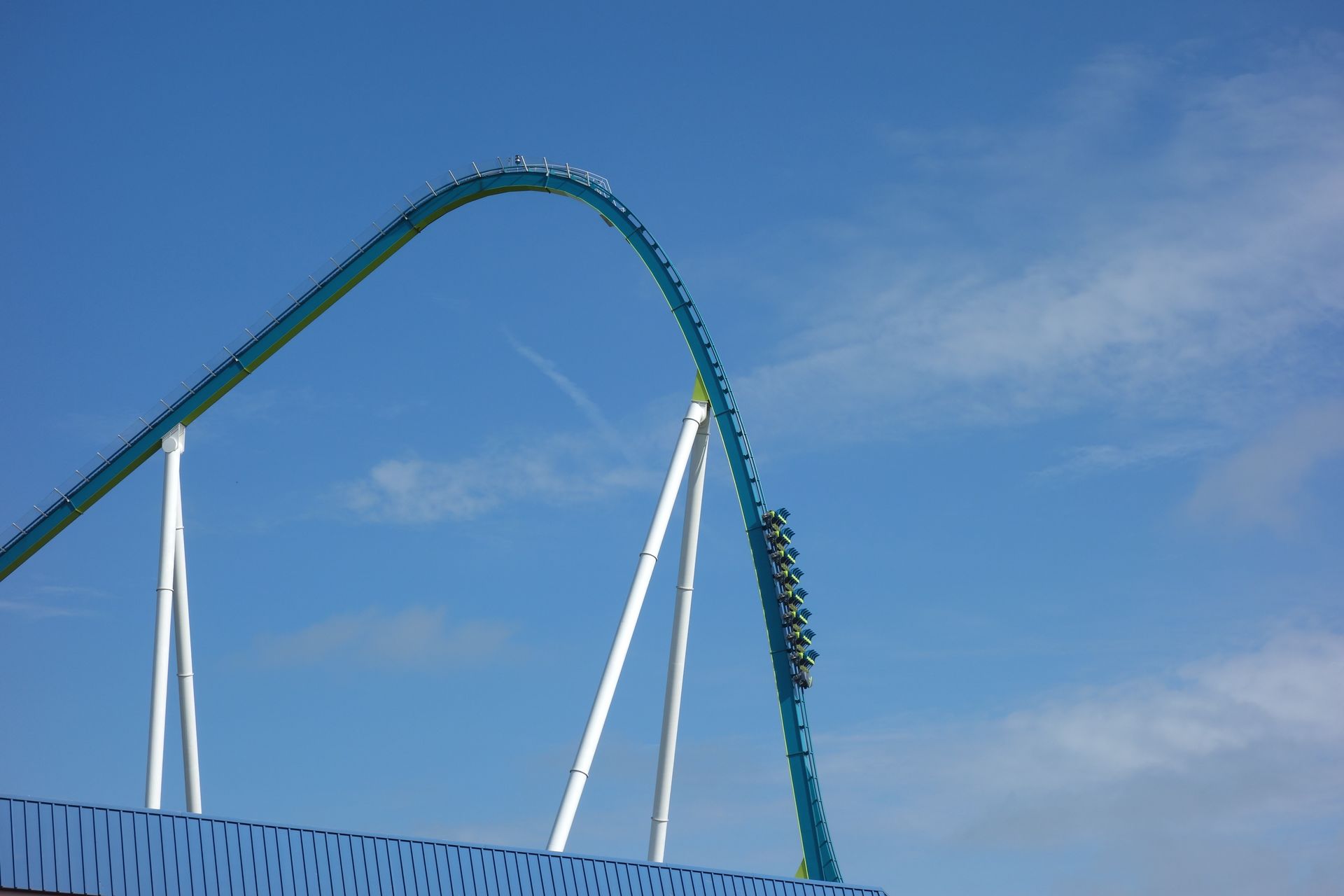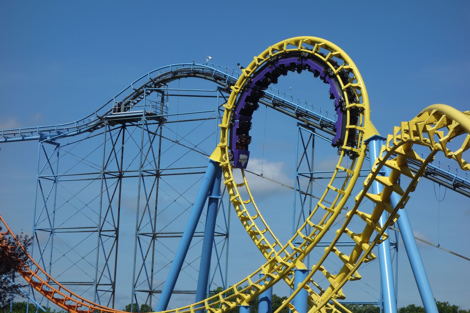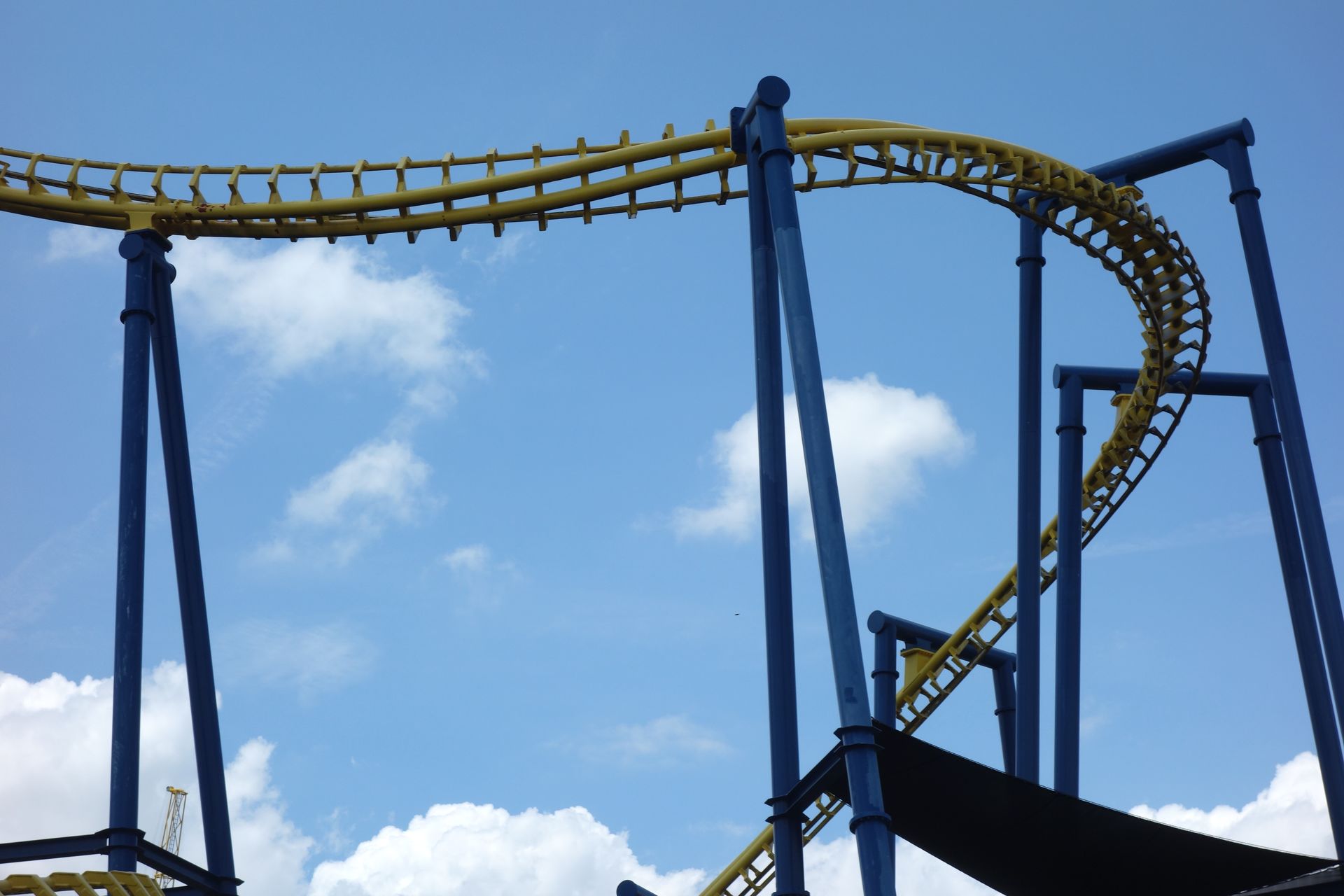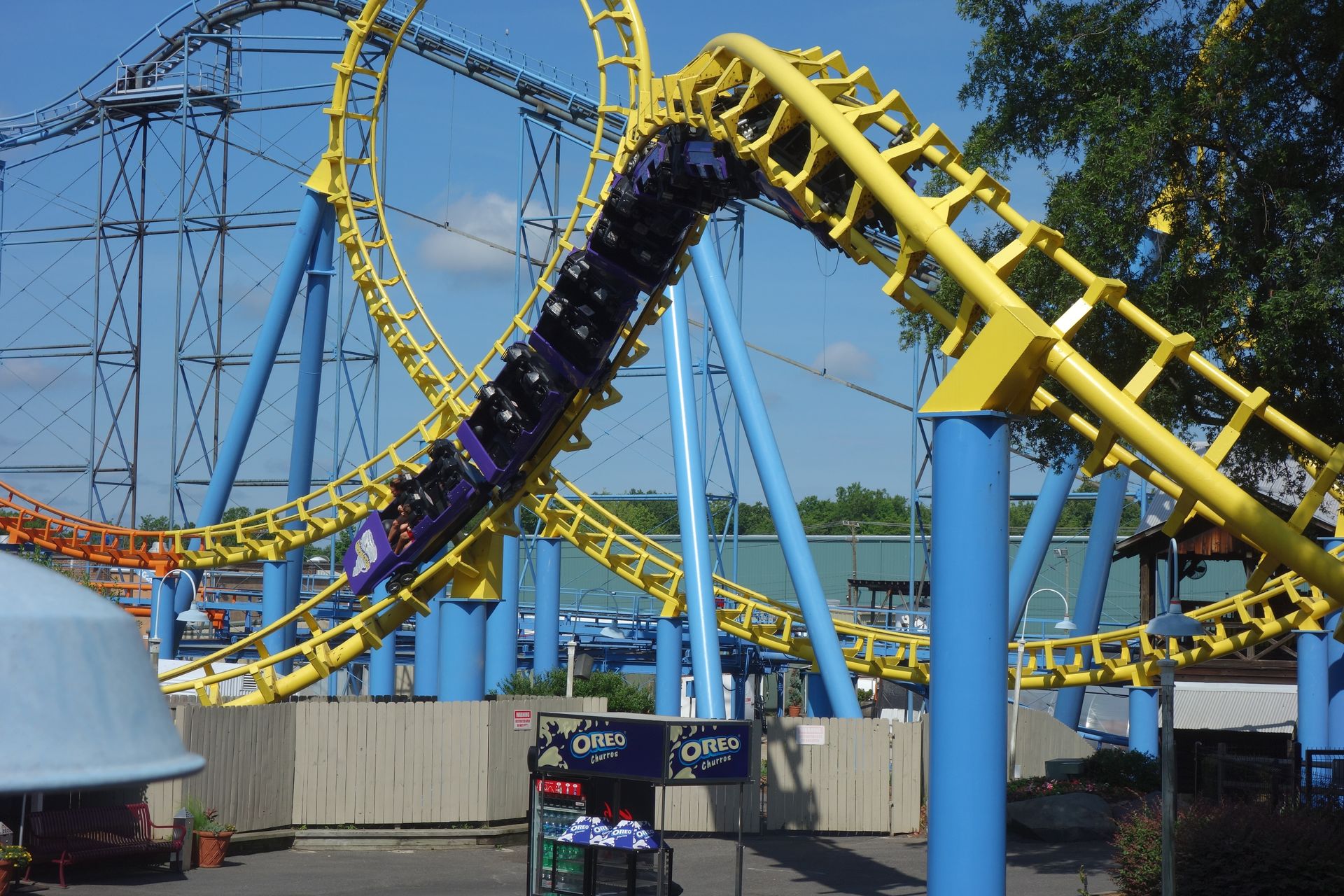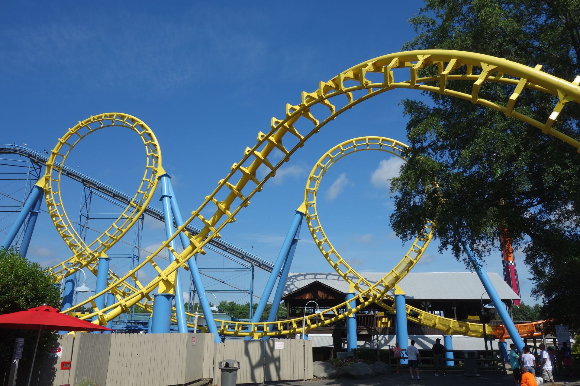 Mit gut 27 Metern Höhe gehört die Bahn zu den kleineren in Carowinds. Dafür geht es mit einem Looping direkt zur Sache.