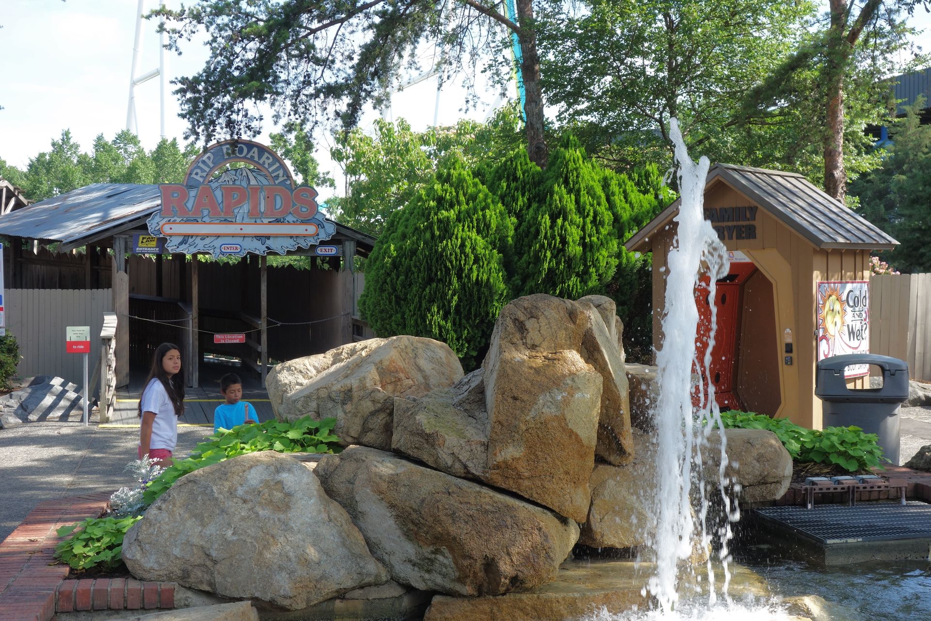 Hier nutzten wir zum zweiten Mal eines unserer Vordrängel-Zettelchen. Auch wenn es uns - so meine ich mich jedenfalls zu erinnern - nur eine kleine Zeitersparnis brachte. Auf jeden Fall tat die Erfrischung gut, Carowinds hat ein schönes Rafting, welches die Fahrgäste ganz allein mit den Wellen durchnässen kann. Zusätzliche Wasserfälle oder gar Wasserkanonen sind da gar nicht nötig. Interessant fand ich ja die Beladung. Es können zwei Boote hintereinander beladen werden, wobei sich Zustiege auf beiden Seiten befinden. Nach welchem System da Beladen wird, habe ich allerdings nicht verstanden. Ausgestiegen wird übrigens vor dem Lift, der die Boote wieder zum Einstieg hinauf befördert. Das Rafting selbst ist wohl eine Eigenkonstruktion des Parks. Zur Eröffnung 1982 nutzte man auch selbst konstruierte Boote, mit denen es allerdings auch diverse Unfälle gab. Im Jahr darauf setzte man daher auf Boote von