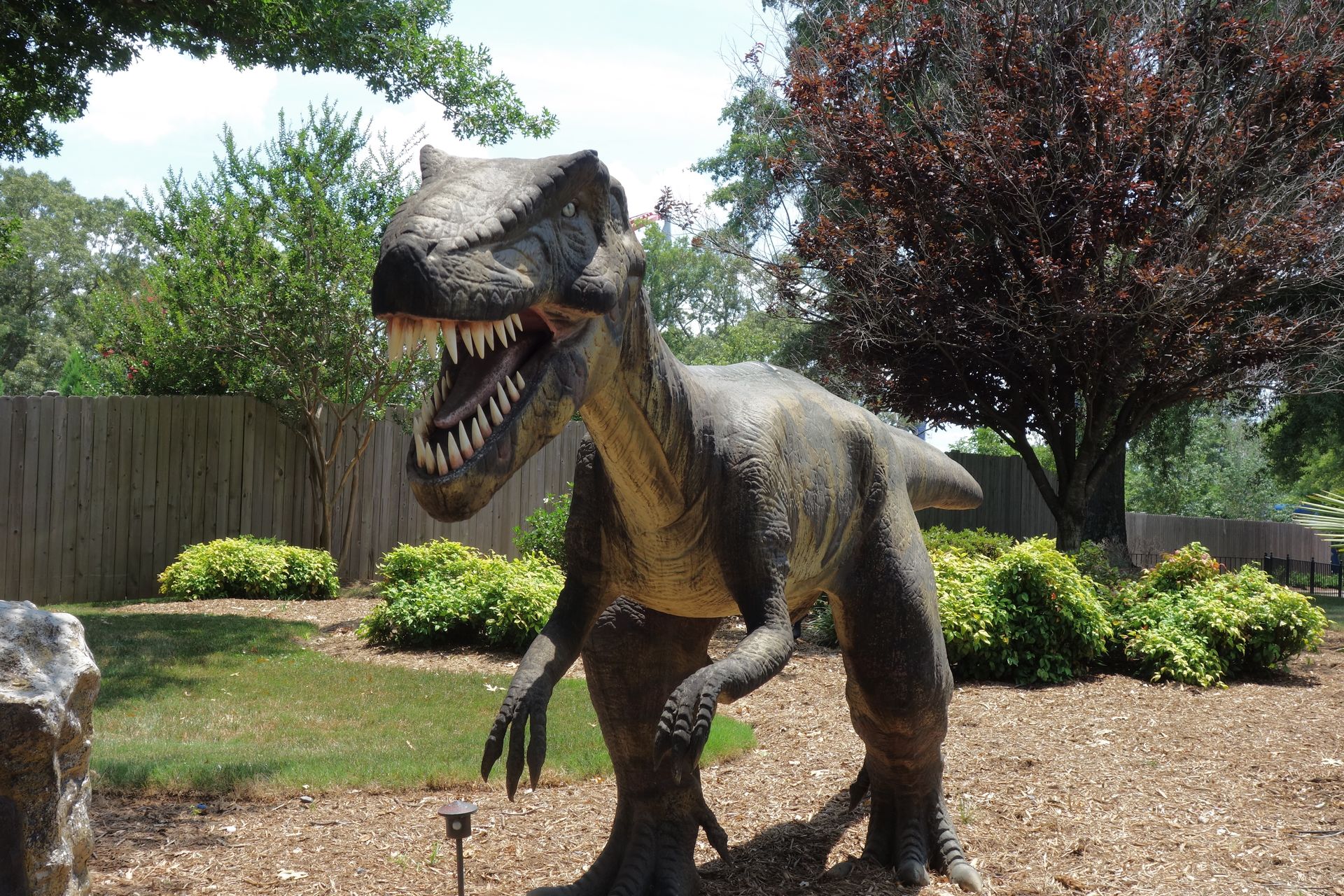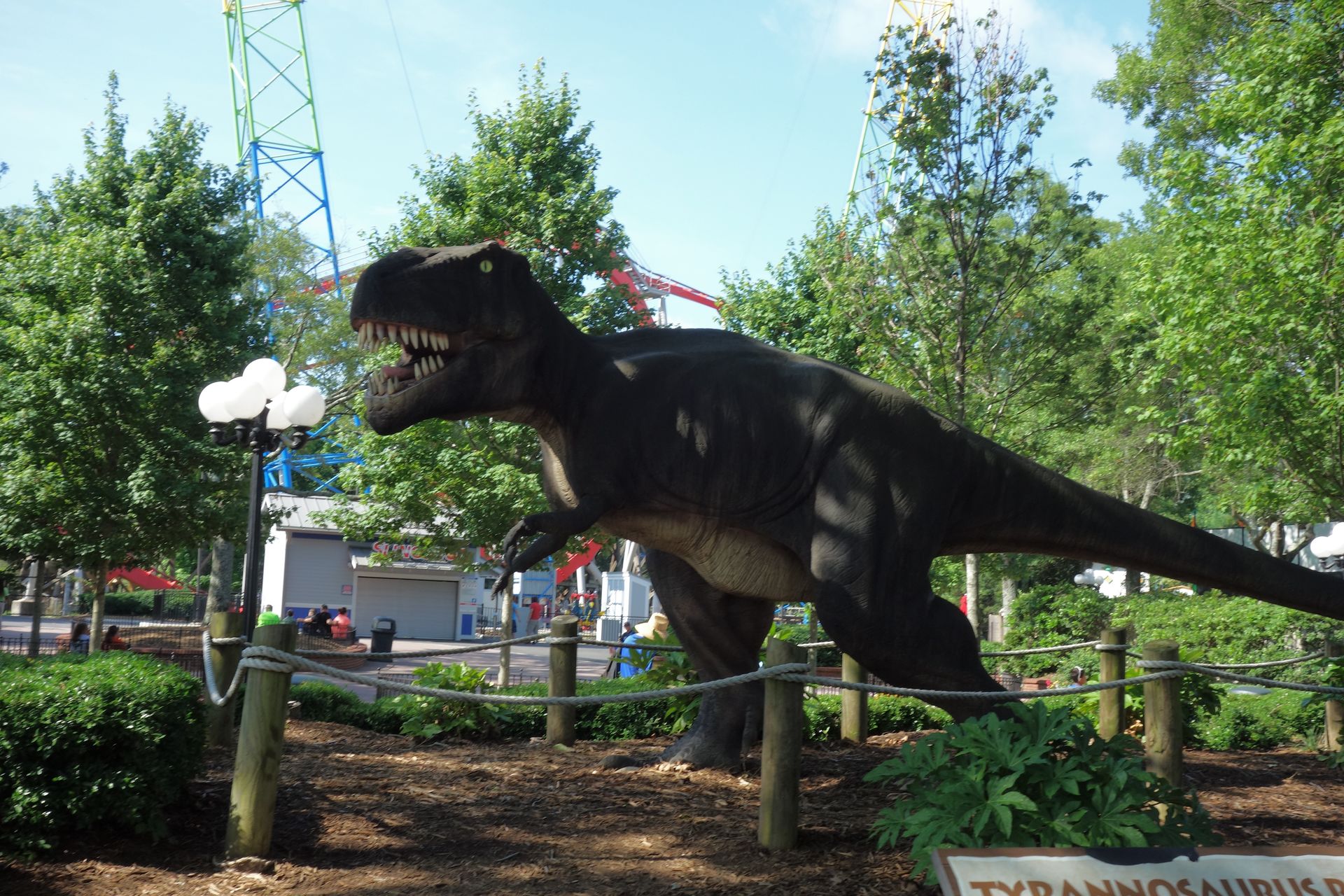 Ein etwas komischer Tyrannosaurus ist aber auch so im Park zu finden.