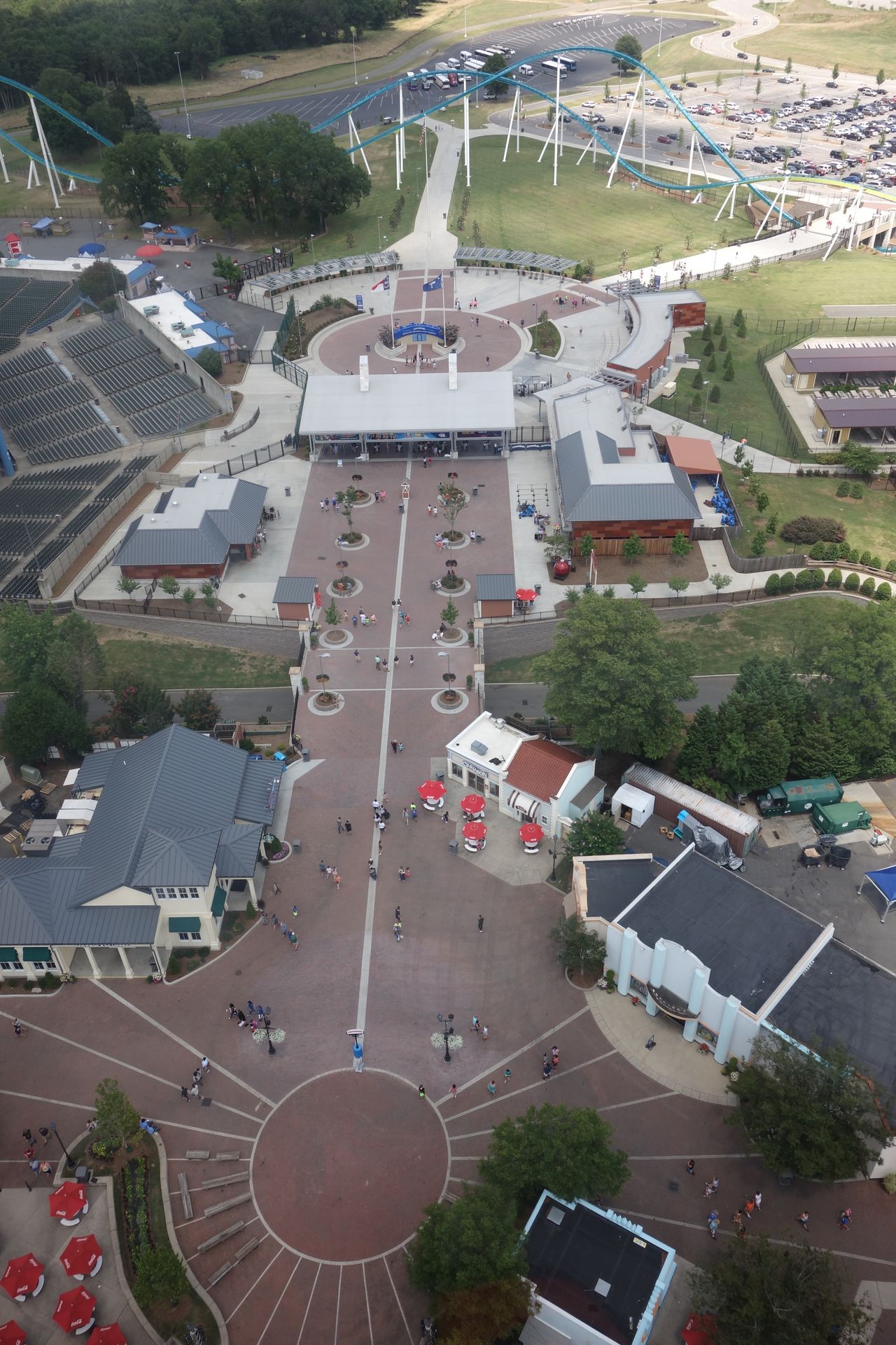 Selbstverständlich entstand auch die Idee für diesen Park nach dem Besuch eines Geschäftsmanns im Disneyland. Dieser Geschäftsmann, Earl Patterson Hall, wählte den Standort aber auch mit dem Hintergedanken, die beiden Carolinas näher zusammenzuführen. Eine schöne Idee, könnte man doch auch mal auf der Grenze zwischen Mexiko und den USA versuchen. Wäre am Ende wahrscheinlich billiger als eine Mauer und würde sogar noch Geld einbringen. Nunja, die Anschrift des Parks gehörte natürlich trotzdem zu Halls Heimat Charlotte in North Carolina. Tatsächlich war rund um den Freizeitpark noch ein großes Resort geplant. Hotels, ein Shopping Center, ein Golfplatz und ein NFL Stadion sollten zusätzliche Besucher anlocken. Doch die Ölkrise verhinderte weitere Investitionen, sodass 1973 lediglich der Freizeitpark selbst eröffnet wurde. Schon Anfang 1975 waren die Schulden der Betreibergesellschaft allerdings so hoch, dass der Park an die Kings Entertainment Company von Taft Broadcasting verkauft werden musste. Die ging bekanntlich 1992 an Paramount, sodass der Park zwischenzeitlich als Paramount's Carowinds bekannt war. Mit dem Ausstieg von Viacom wurden 2006 schließlich alle Paramount Parks verkauft, die meisten an Cedar Fair. So auch Carowinds.