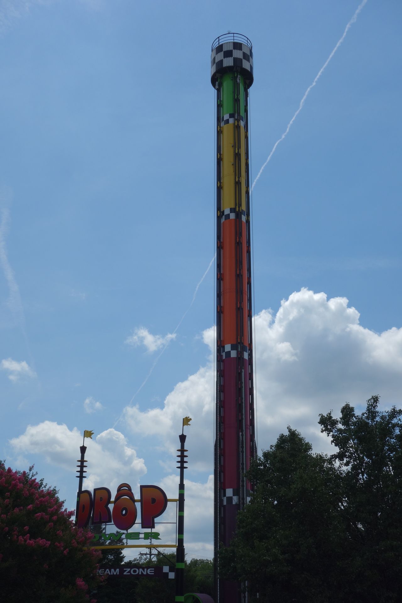 Carowinds besitzt nicht einen Intamin-Coaster. Aber immerhin zwei Türme. Den kleineren Drop Tower ließen wir aber aus.