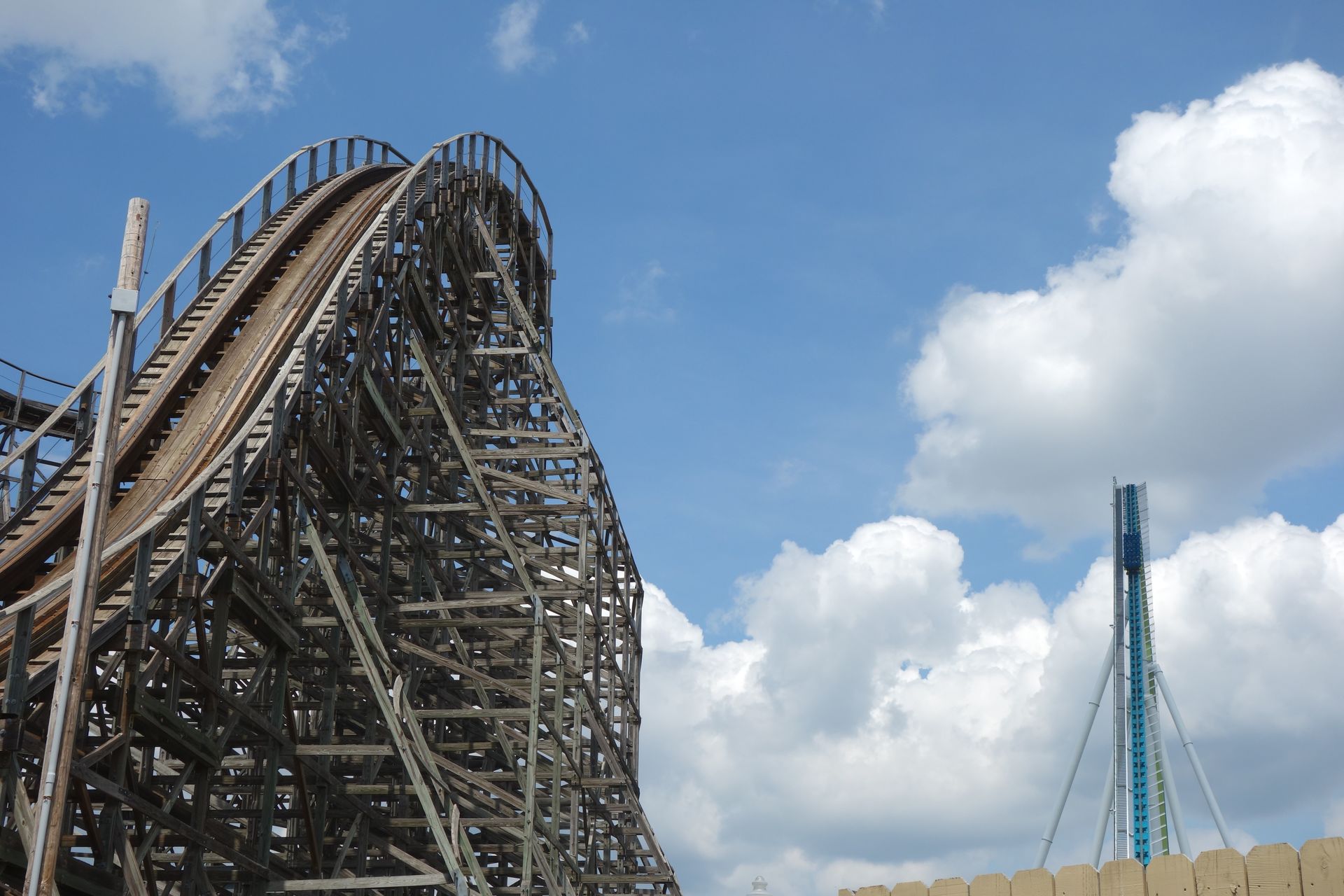 Die altbekannte Holzachterbahn gleich neben dem jungen B&M ließen wir aber noch aus. Zunächst sollten die Kapazitätsgurken angesteuert werden.