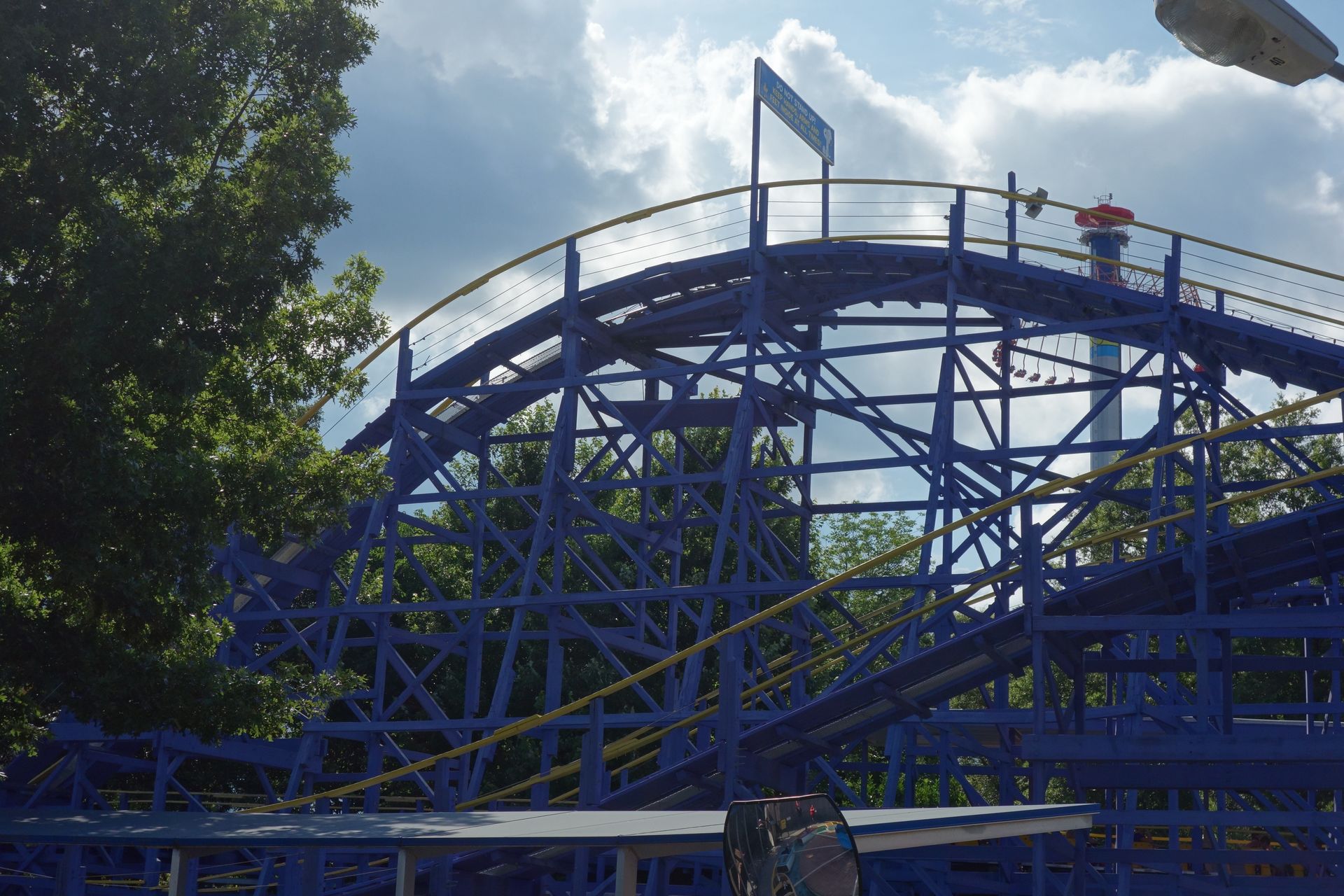 1973 erbaut und damit die einzige Achterbahn, die zusammen mit dem Park eröffnet wurde. Und auch die erste Achterbahn überhaupt, die eine Staatsgrenze überquerte.
