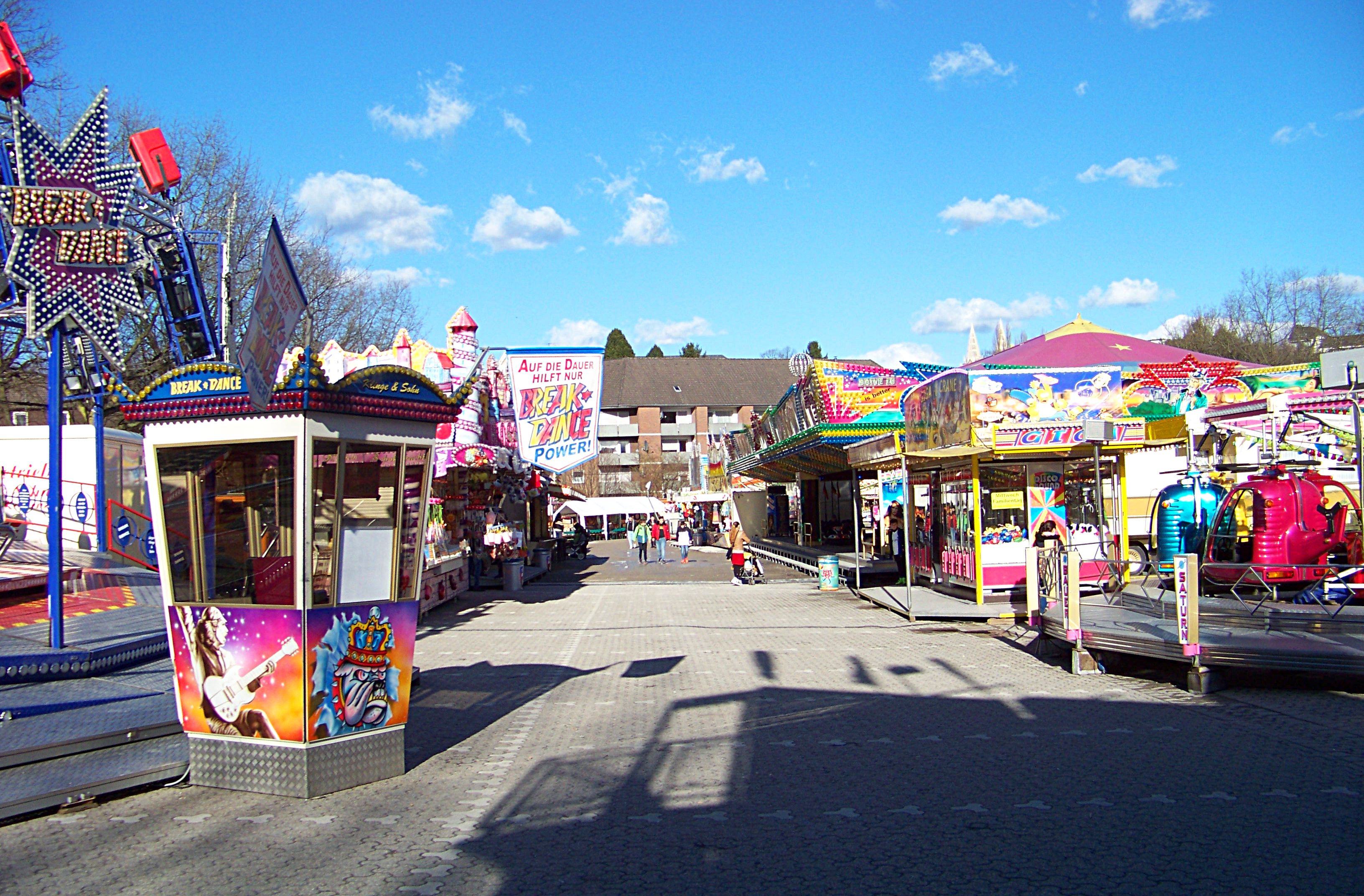 Nicht sonderlich viel los war am Dienstag auf der doch recht kleinen Kirmes in Solingen an der Klingenhalle. Aber wen wundert das bei doch noch eher kühlen Temperaturen einen Tag vorm sicher etwas besucherstärkeren Familientag. Immerhin hatten sich doch ein paar Familien und Jugendliche auf den Platz begeben, so dass sich die Fahrgeschäfte doch regelmäßig in Bewegung setzen konnten.