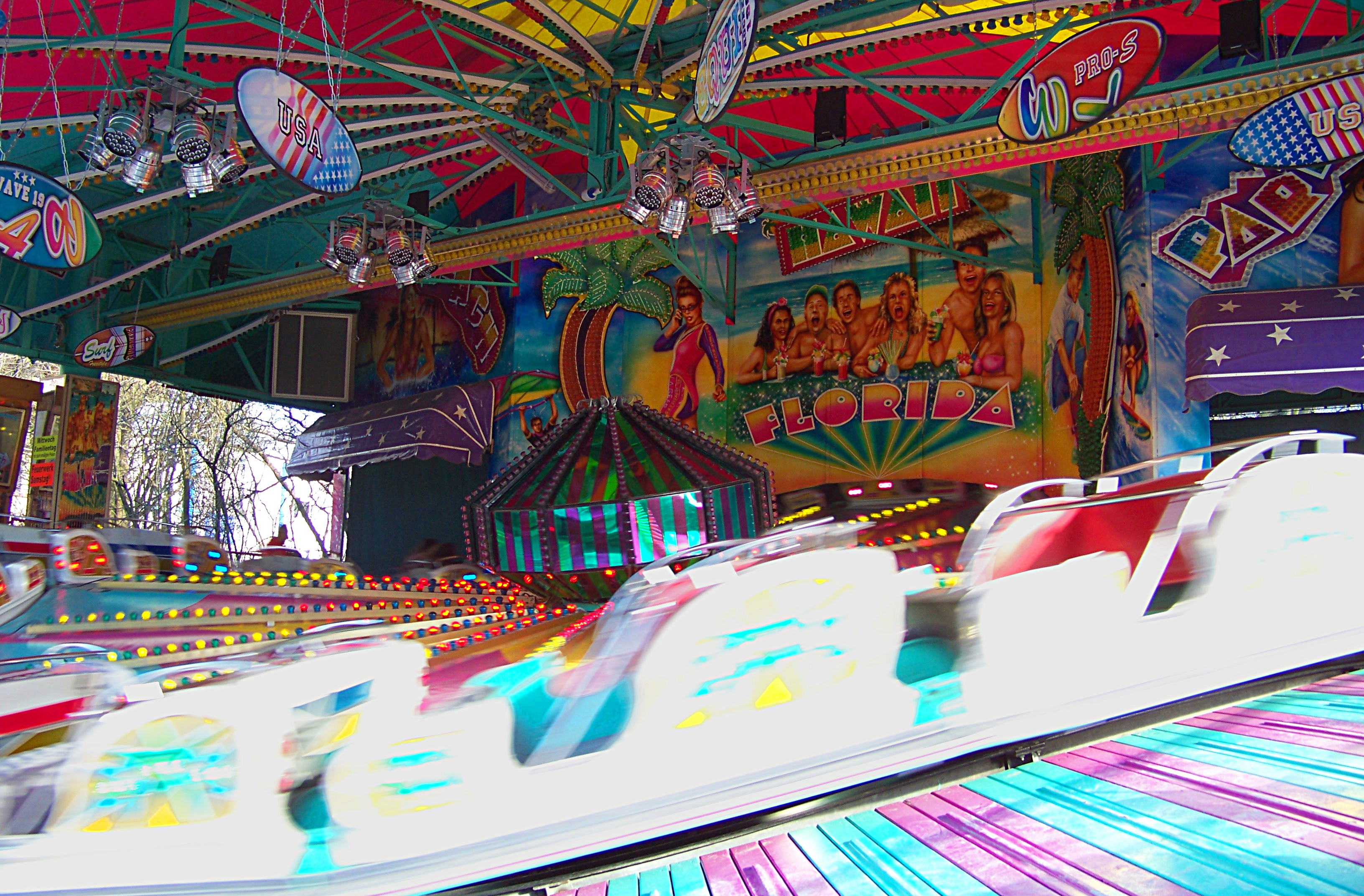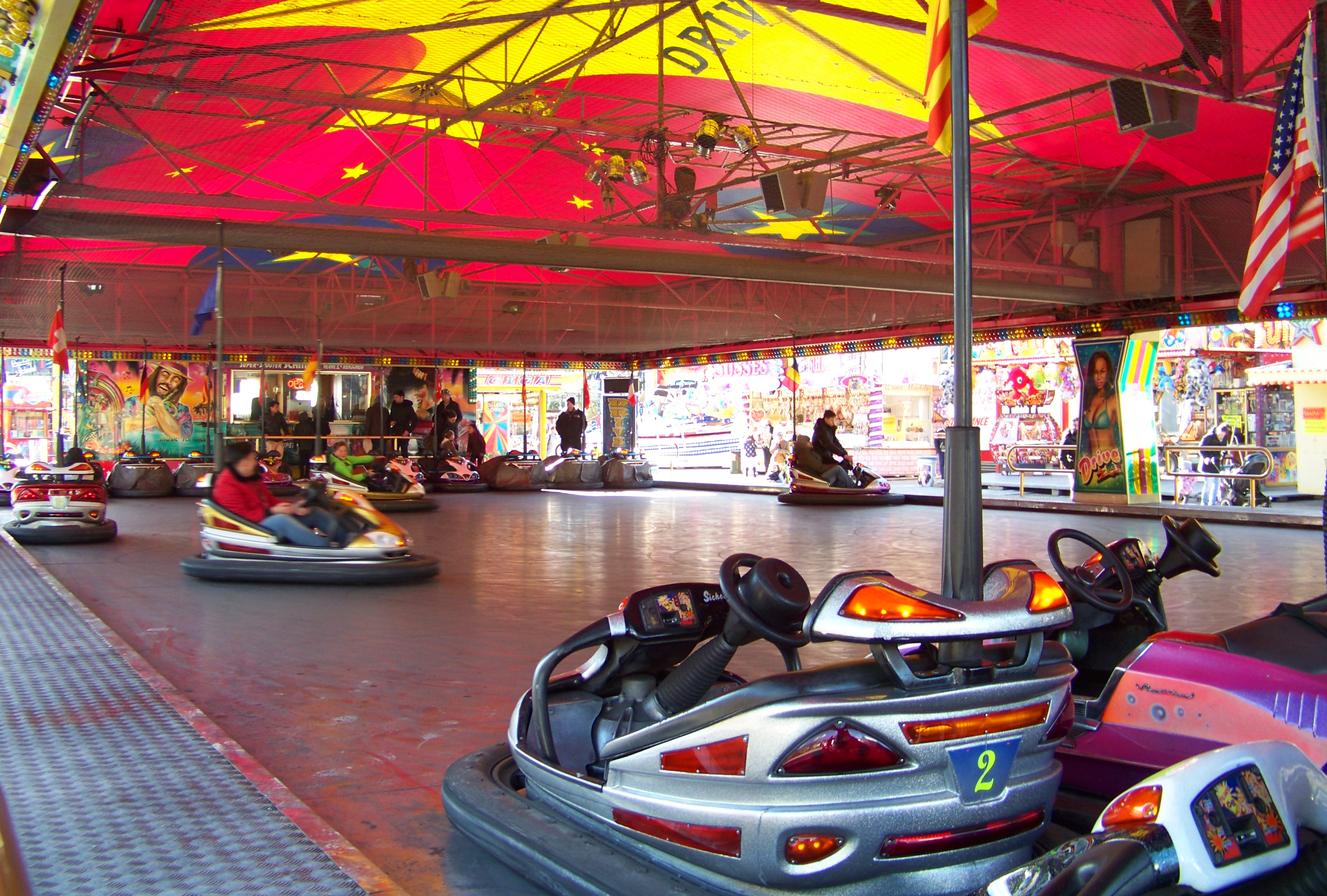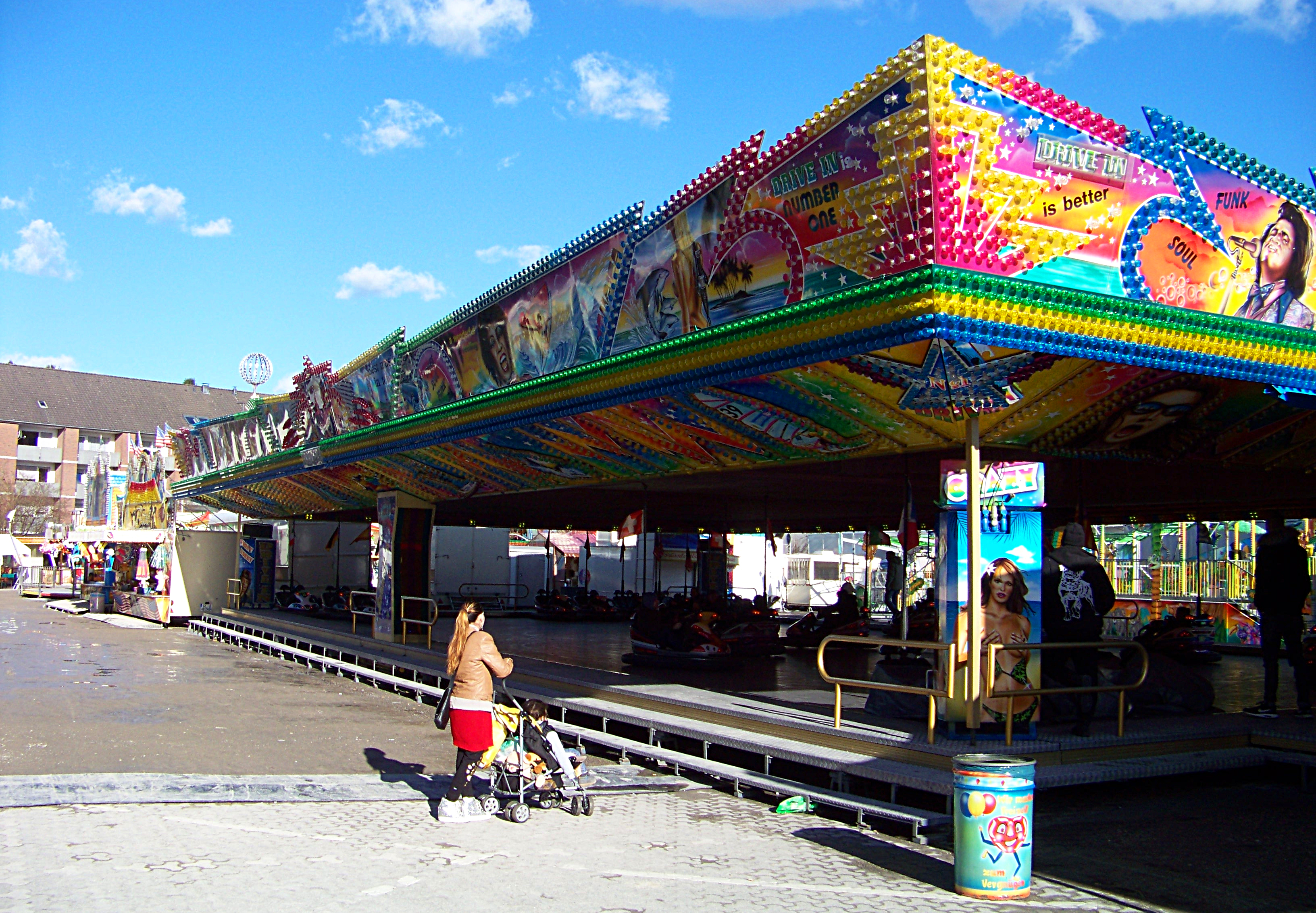 Vorbei am Autoscooter findet man am anderen Ende des Platzes den Hollywood Star von Klinkerfuß und die Beach Party von Milz.