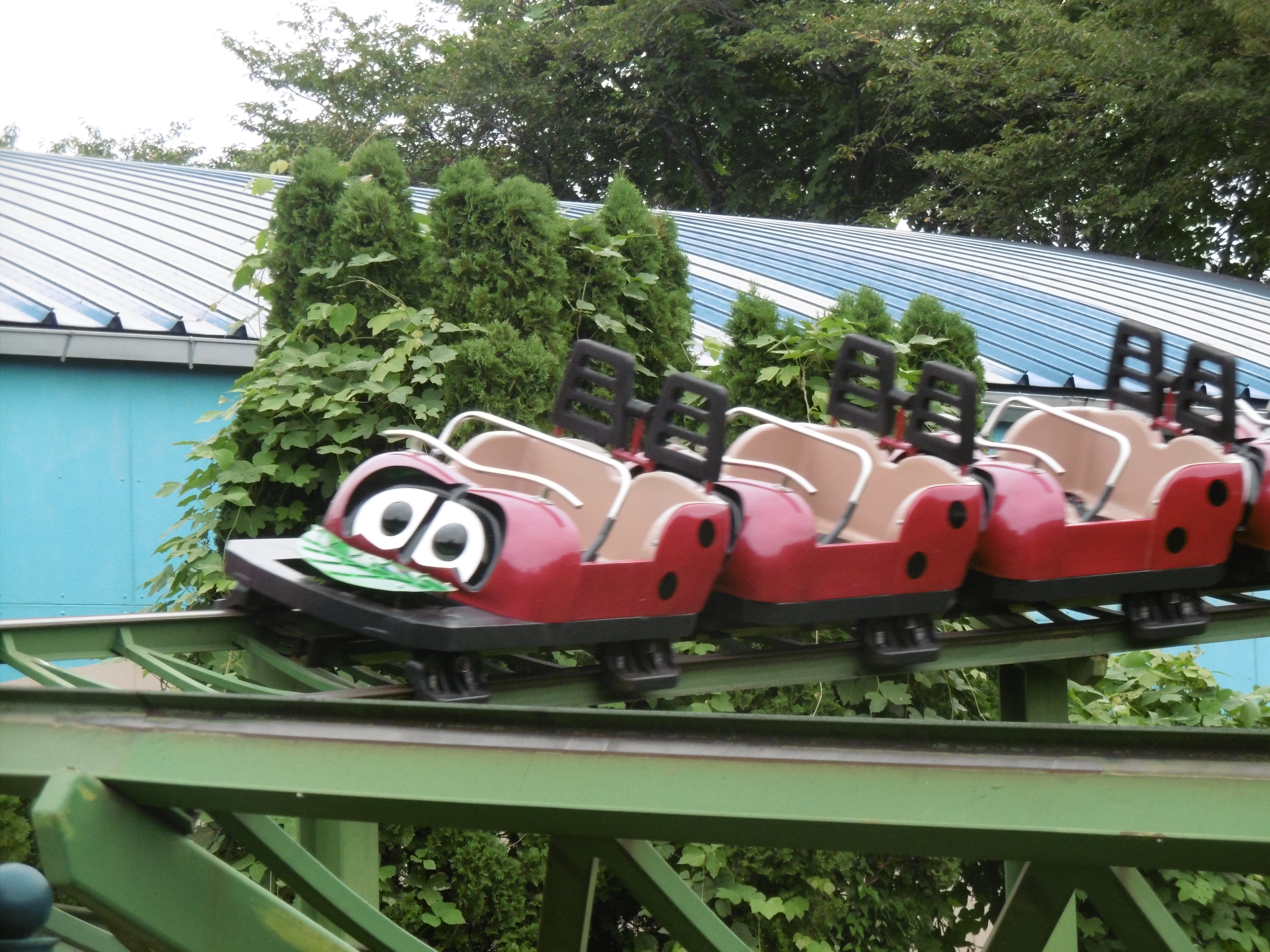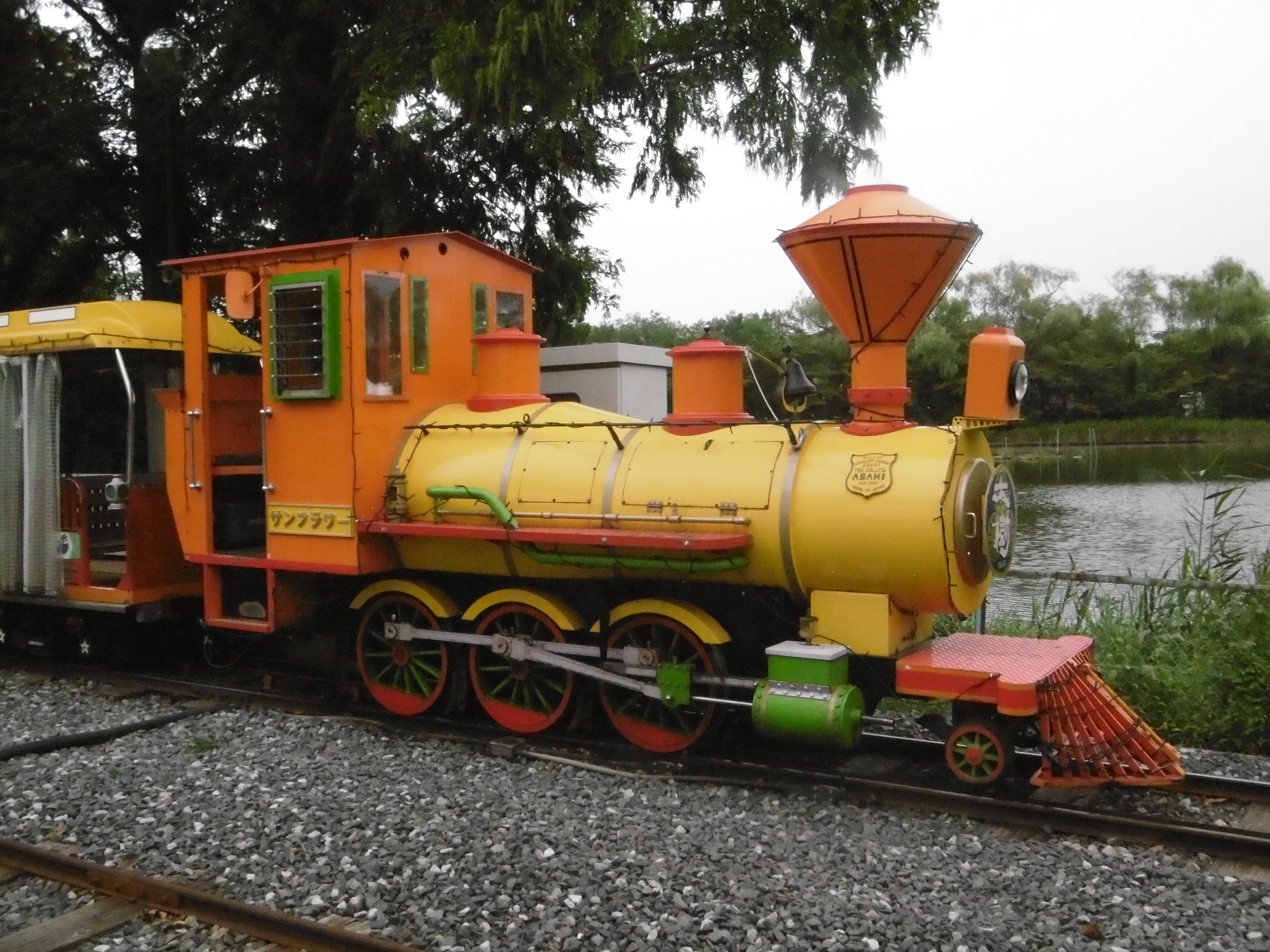 ... und für Achterbahnfans einen Kiddiecoaster namens Diggy and Duggy's Torokko Coaster von Hoei Sangyo mit einem ziemlich massiven Frontcar, dessen Zug gegen Ende durch eine Wassernebelwand fährt.