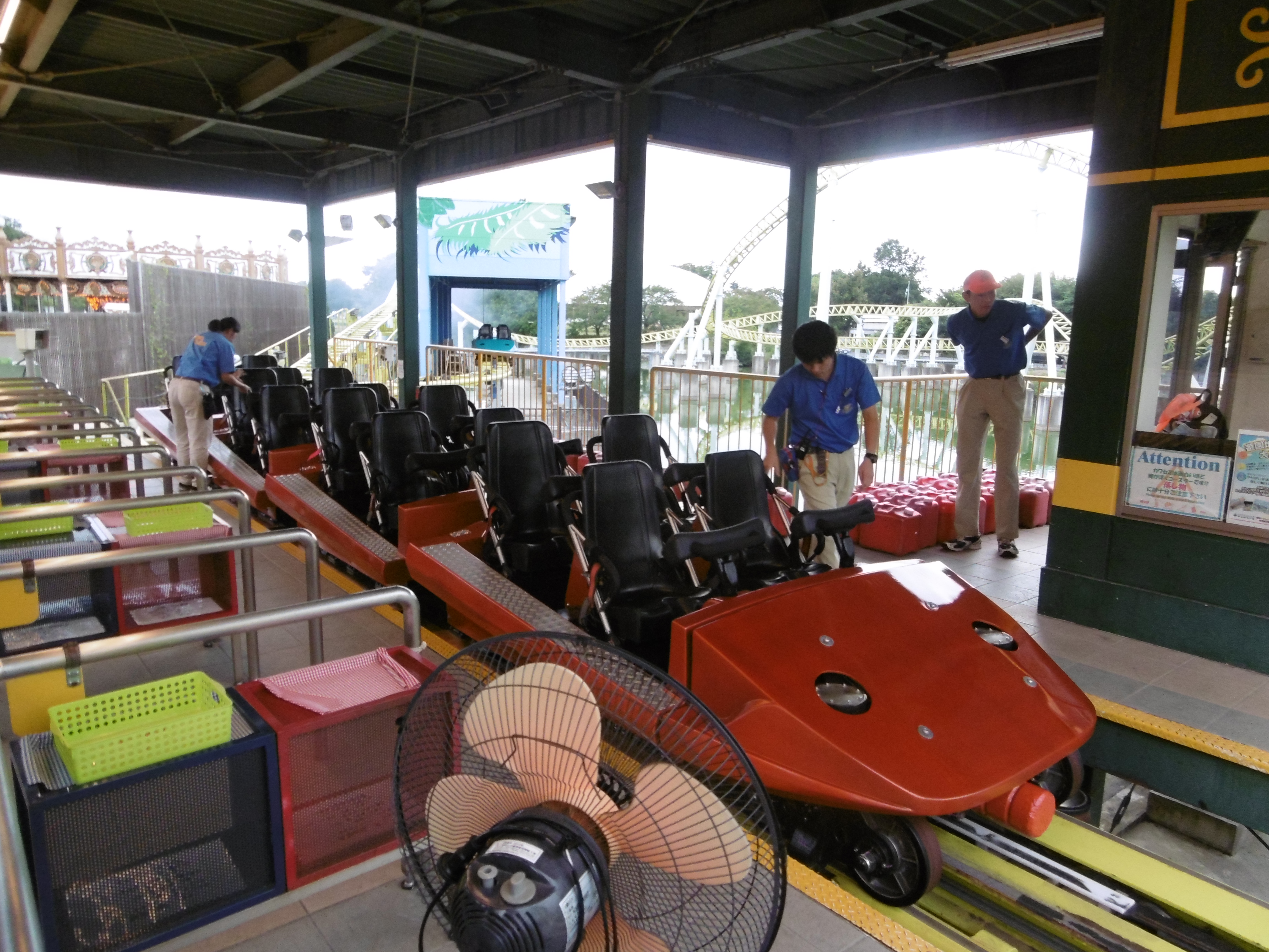 Der Park hat viele Höhen und Tiefen, wobei für mich die Tiefen leider etwas überwiegen, wobei der Zoo das Hauptargument dafür ist. Fast ausschließlich zu kleine Gehege ohne Beschäftigungsmöglichkeiten auf kahlem Beton - und das hat man den Tieren (v.a. den Affen) auch ansehen können. Immerhin sind die neueren Gehege auf einem zumindest etwas besseren Niveau. Attraktionstechnisch reicht für alle Achterbahnfans natürlich Kawasemi aus, um die Anreise zu rechtfertigen. Mit Regina gibt es einen spaßigen Woodie (selbst der meist weinerliche Gründer eines amerikanischen Forums findet dort seinen Spaß) und v.a für Familien sind zahlreiche Attraktionen vorhanden, darunter zwei Achterbahnen, mit denen auch schon Kinder fahren können. Sonderlich hübsch ist der Park bei diesem Wetter und der Jahreszeit nicht. Er wirkt sehr in die Jahre gekommen und wie der wunderschöne Zug der Regina könnte auch der Park an vielen Stellen einen neuen Anstrich benötigen. Aber zumindest das relativ neue Heartful Land macht Hoffnung diesbezüglich. Erfreulich war aber wieder die (in Japan selbstverständliche) Freundlichkeit der Mitarbeiter, die hier beim Abfertigen auch trotz weniger Besucher ziemlich auf die Tube drückten.