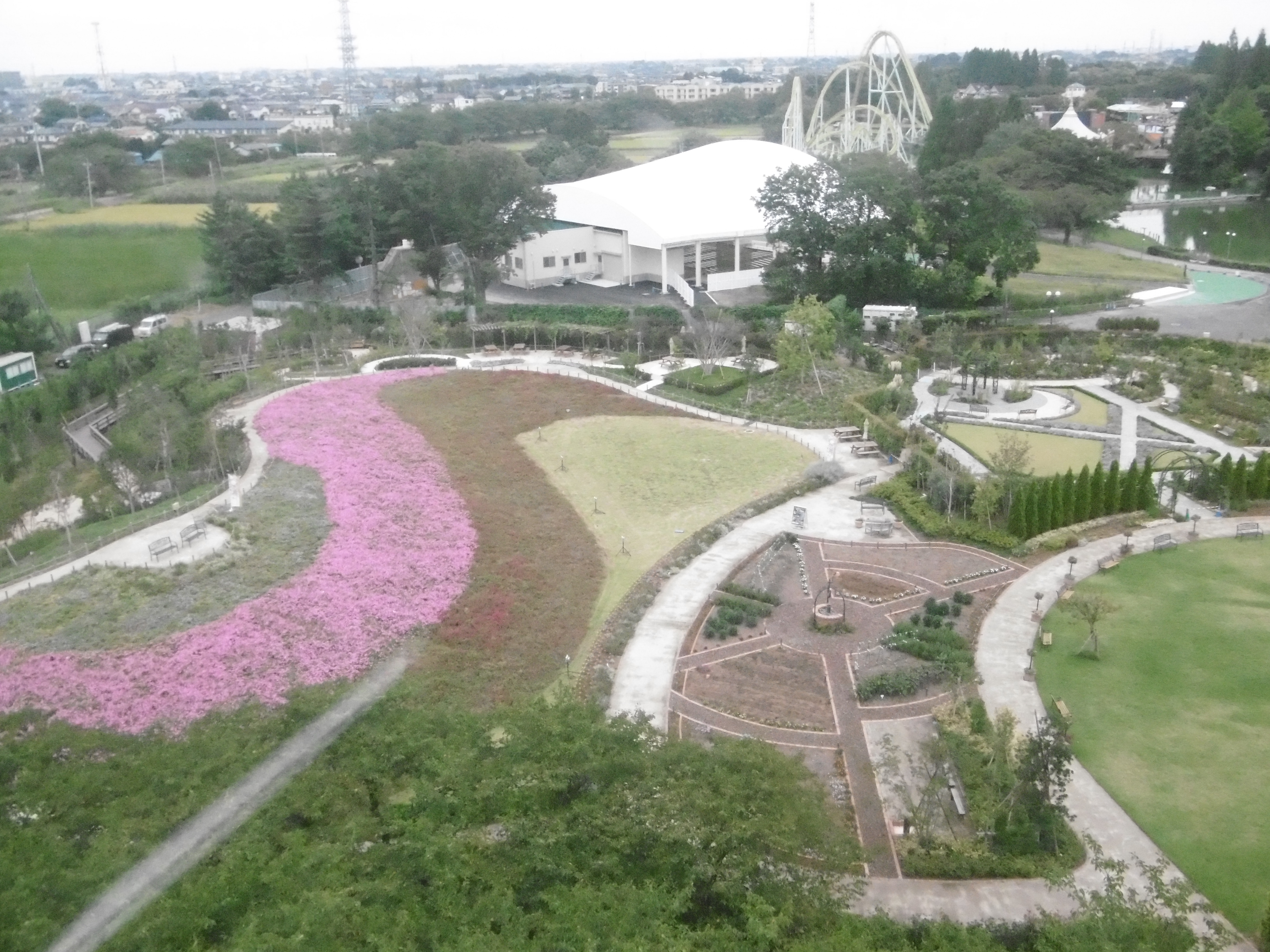 Die Station sollten die Besucher dann über den westlichen Ausgang verlassen. Von dort ist der Park durch einen kurzen zehnminütigen Fußmarsch zu erreichen oder per kostenpflichtiger fünfminütiger Busfahrt. Nach dem Verlassen der Eisenbahnstation einfach der Straße nach Süden folgen, bis ein großer Parkplatz erreicht wurde. Von dort sind die höheren Attraktionen des Parks nach rechts (Westen) blickend schon zu sehen.