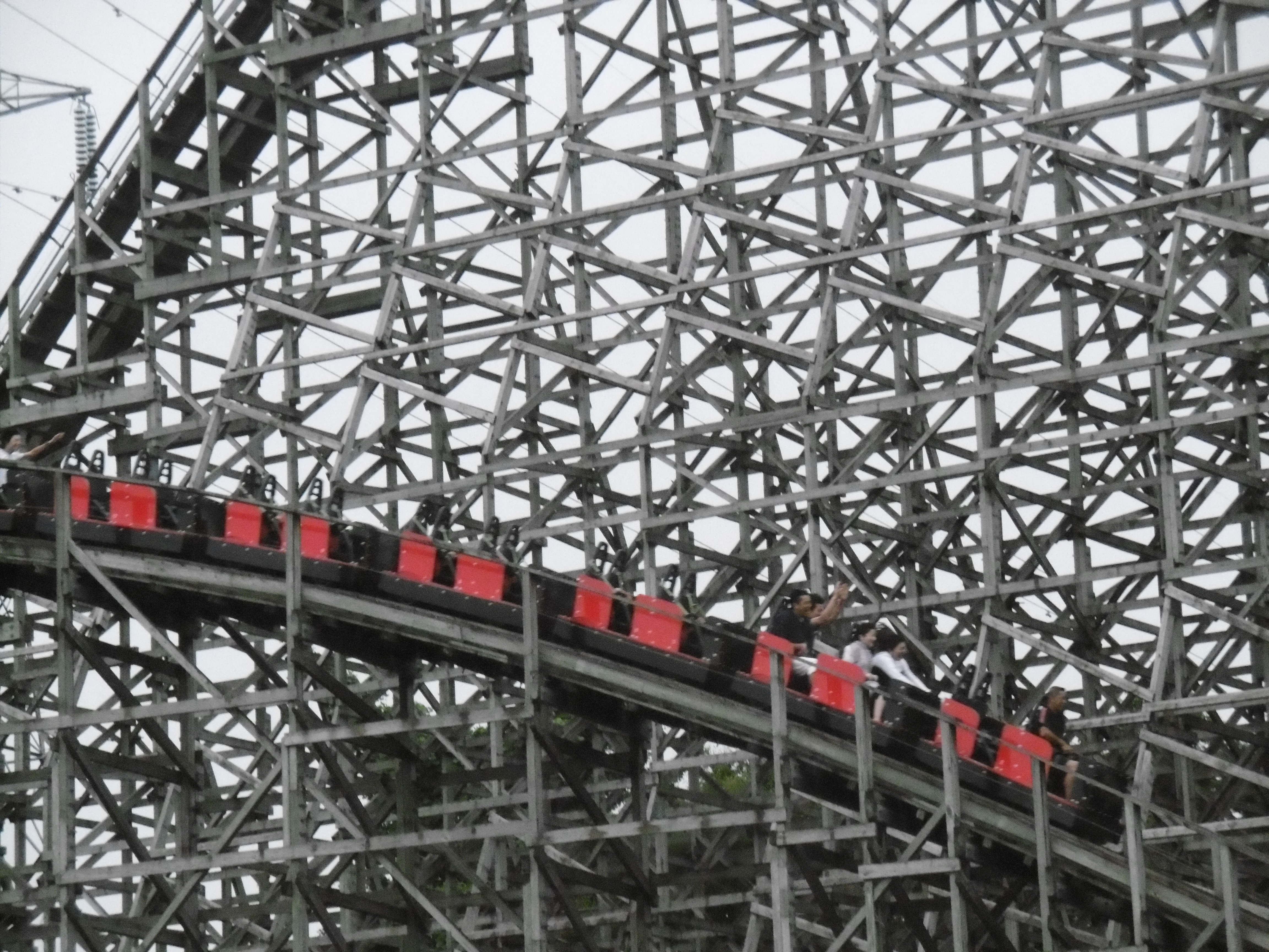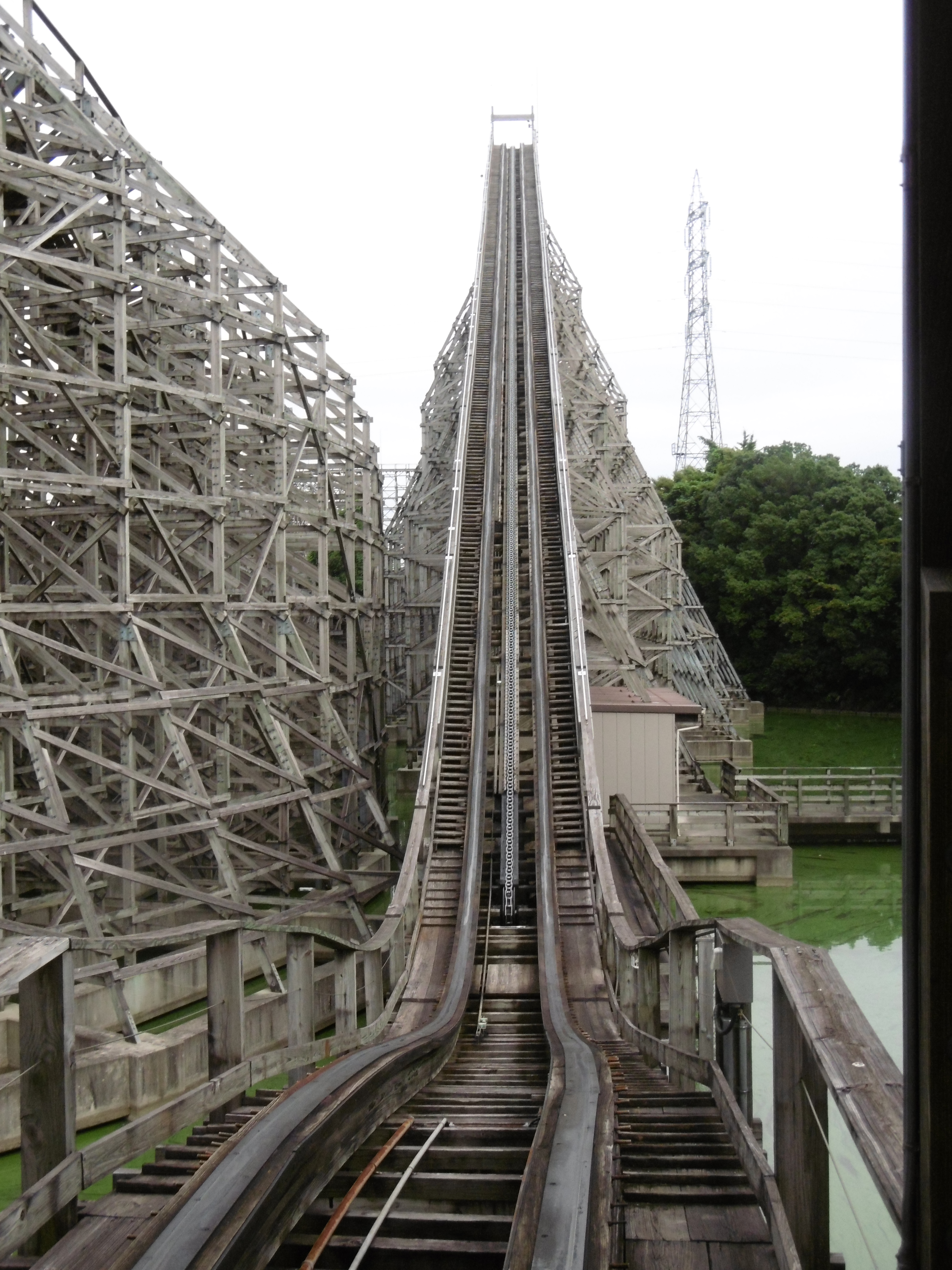 In über 50 % der Fahrten erblickte ich dann aus der ersten Reihe den schicken Lifthill, der auf 36,7 Meter Höhe führt. Damit ist sie Asiens zweithöchste Holzachterbahn und weltweit immerhin auf Platz 10.