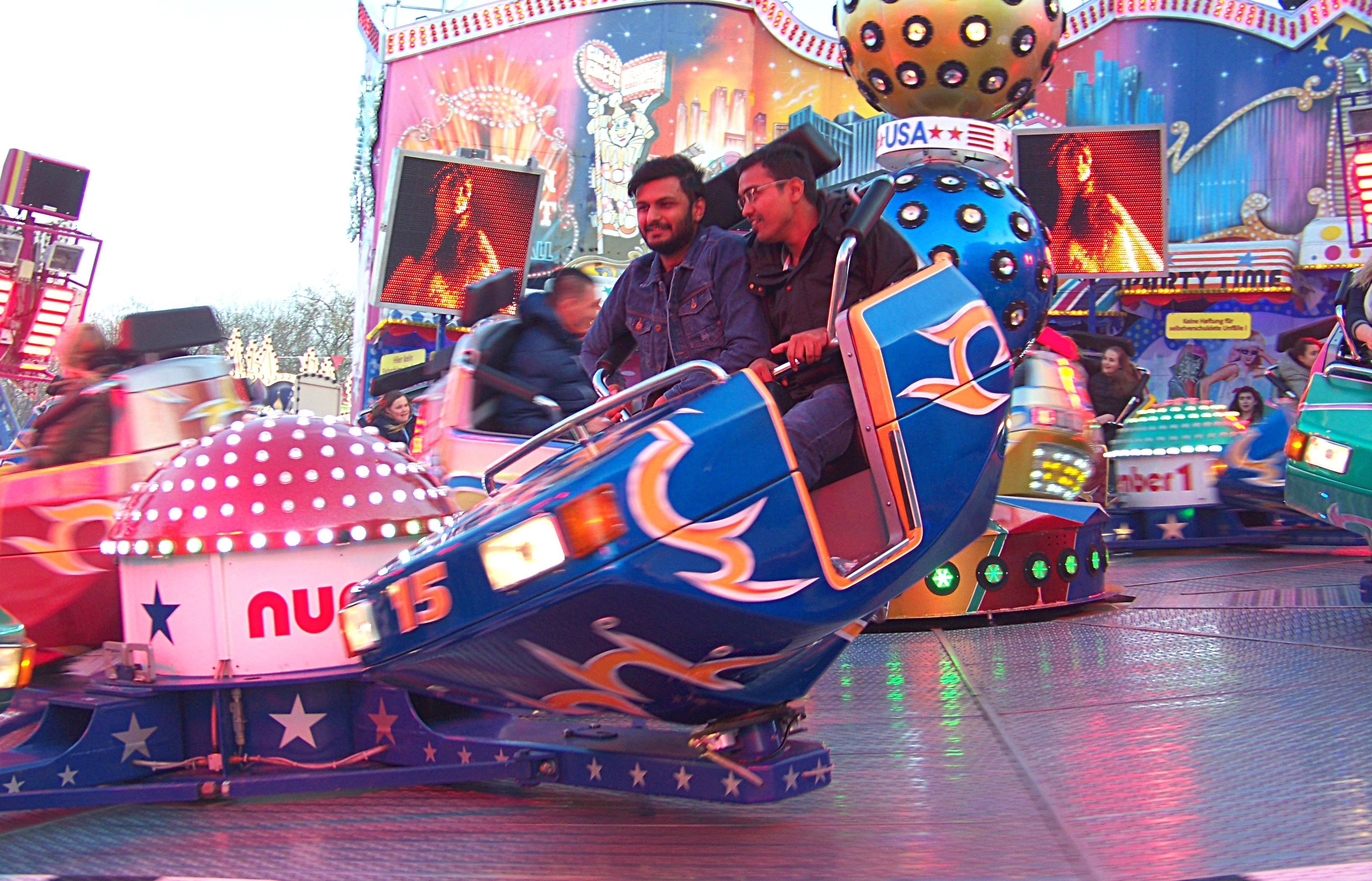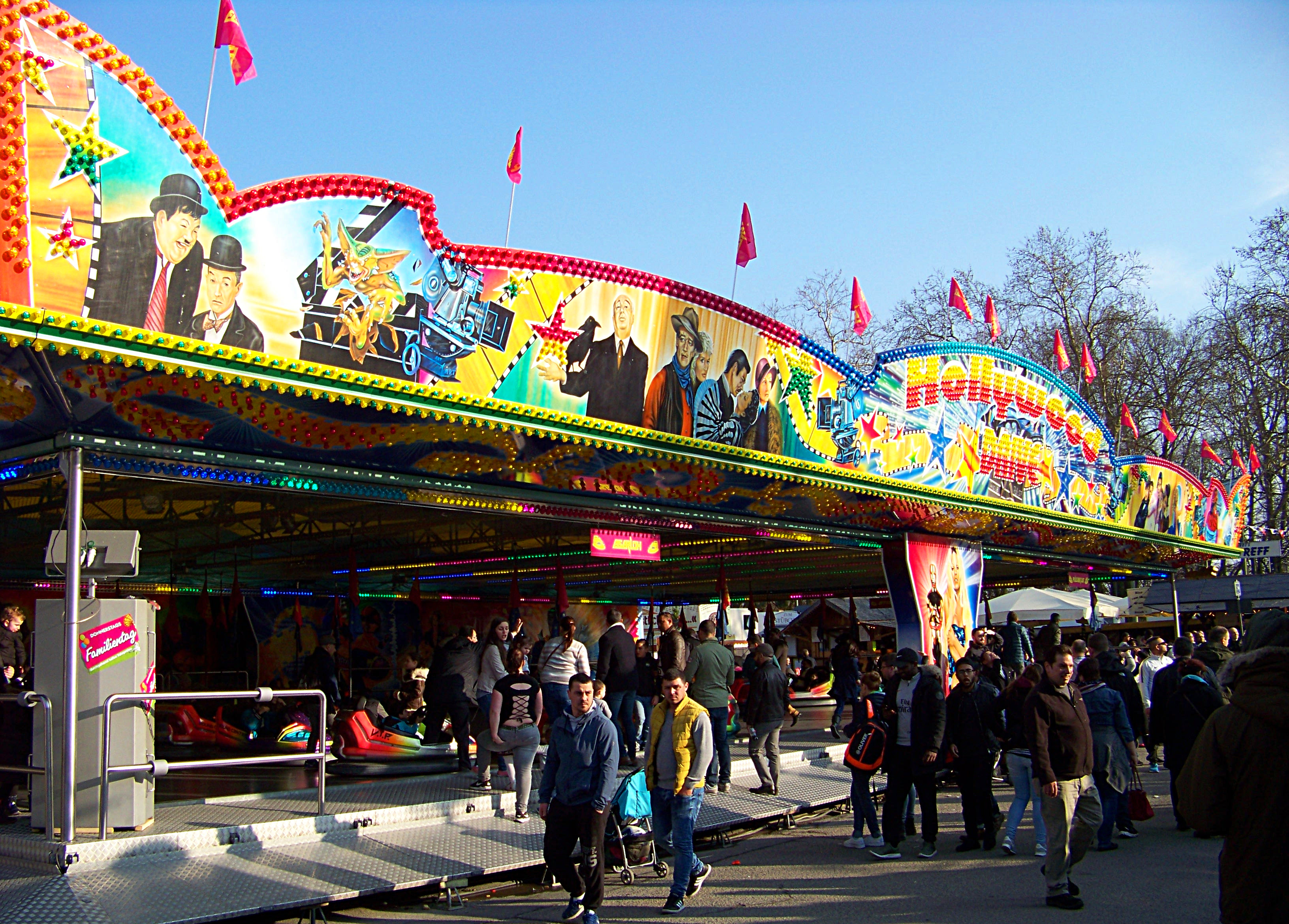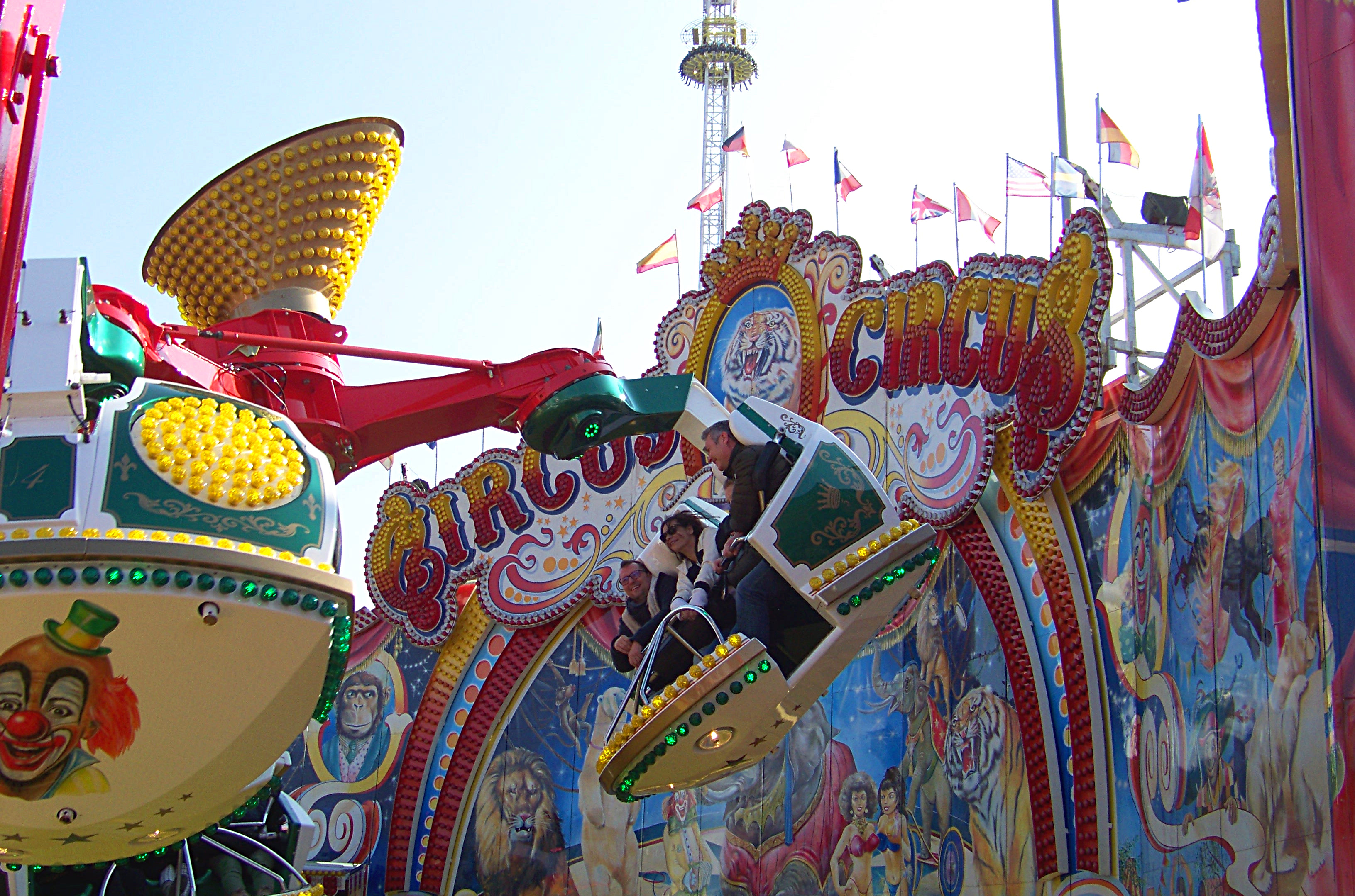 Schon beim Rückstau auf der Autobahnabfahrt merkte ich, dass ich bei weitem nicht der einzige war, der das schöne sonnige Wetter für einen Kirmesbesuch am Frankfurter Ratsweg nutzen wollte. Dementsprechend war der Platz sehr gut gefüllt und alle Fahrgeschäfte der in diesem Jahr sehr gelungenen und ausgewogenen Beschickung wurden rege frequentiert. Die Verteilung der Geschäfte auf dem Platz hätte man auch kaum besser lösen können.