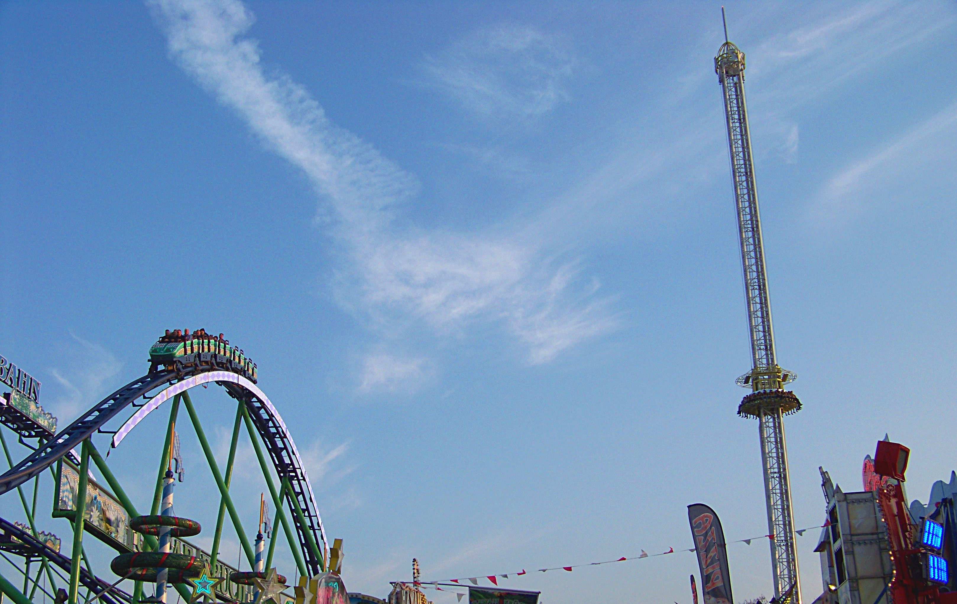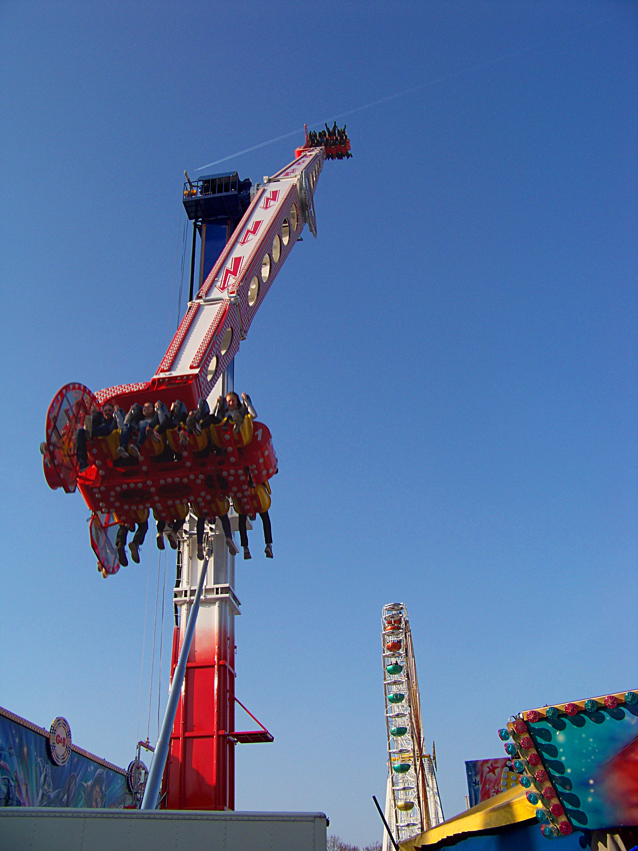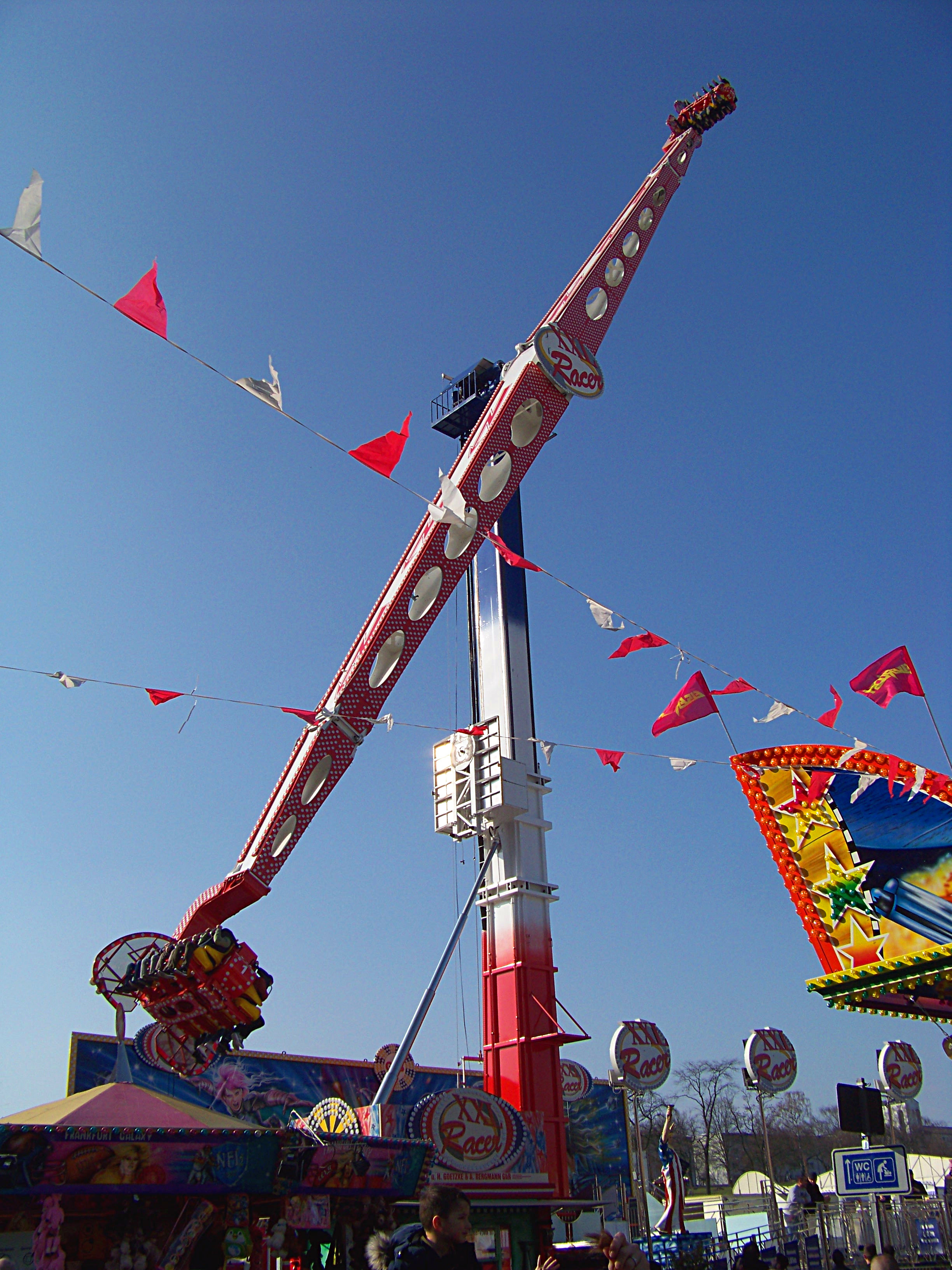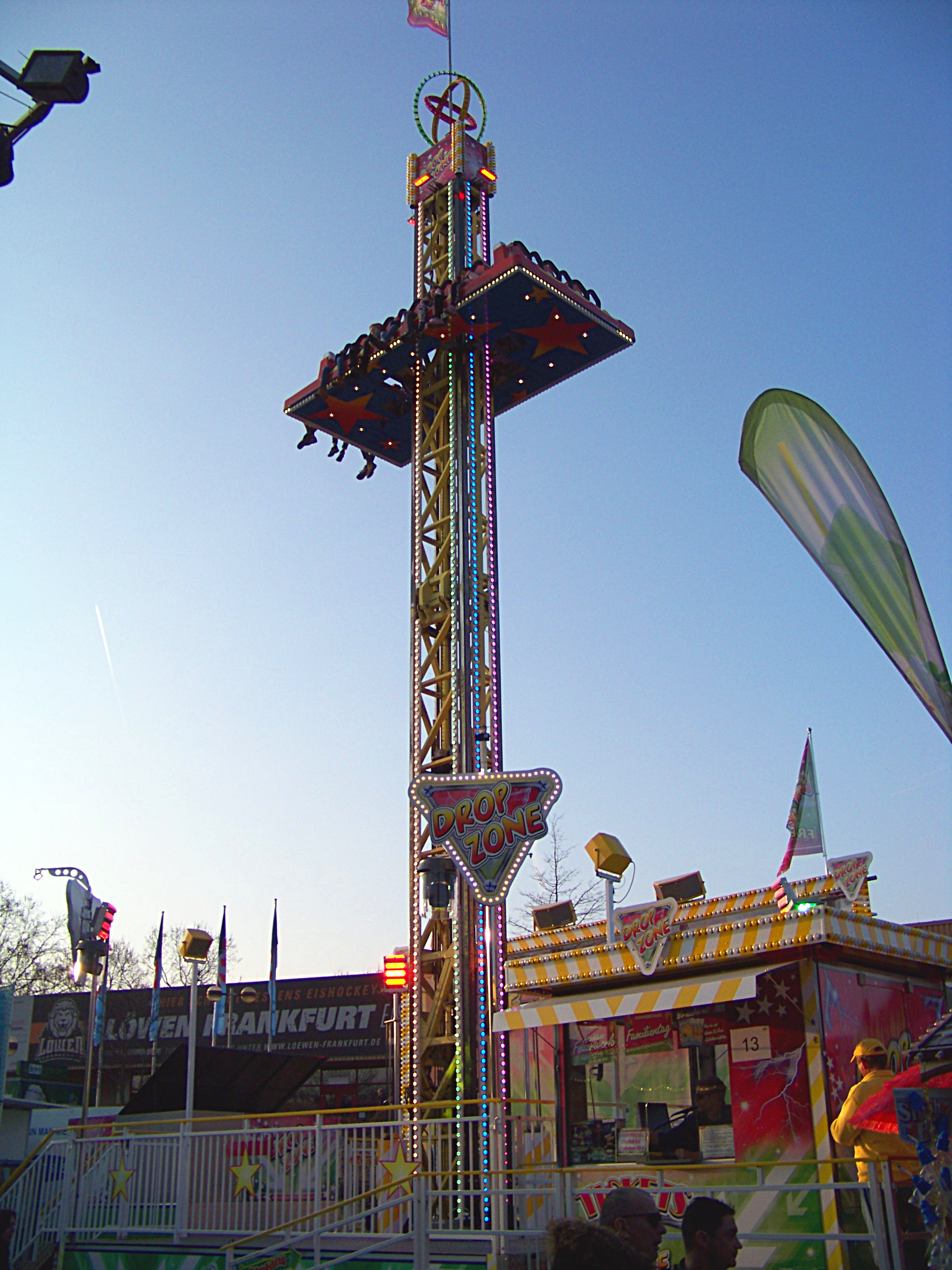 Auf der letzten Ecke des Kirmesrundlaufs steht das Geschäft, das schon auf einigen Fotos im Hintergrund zu sehen war: der Sky Fall von Goetzke.