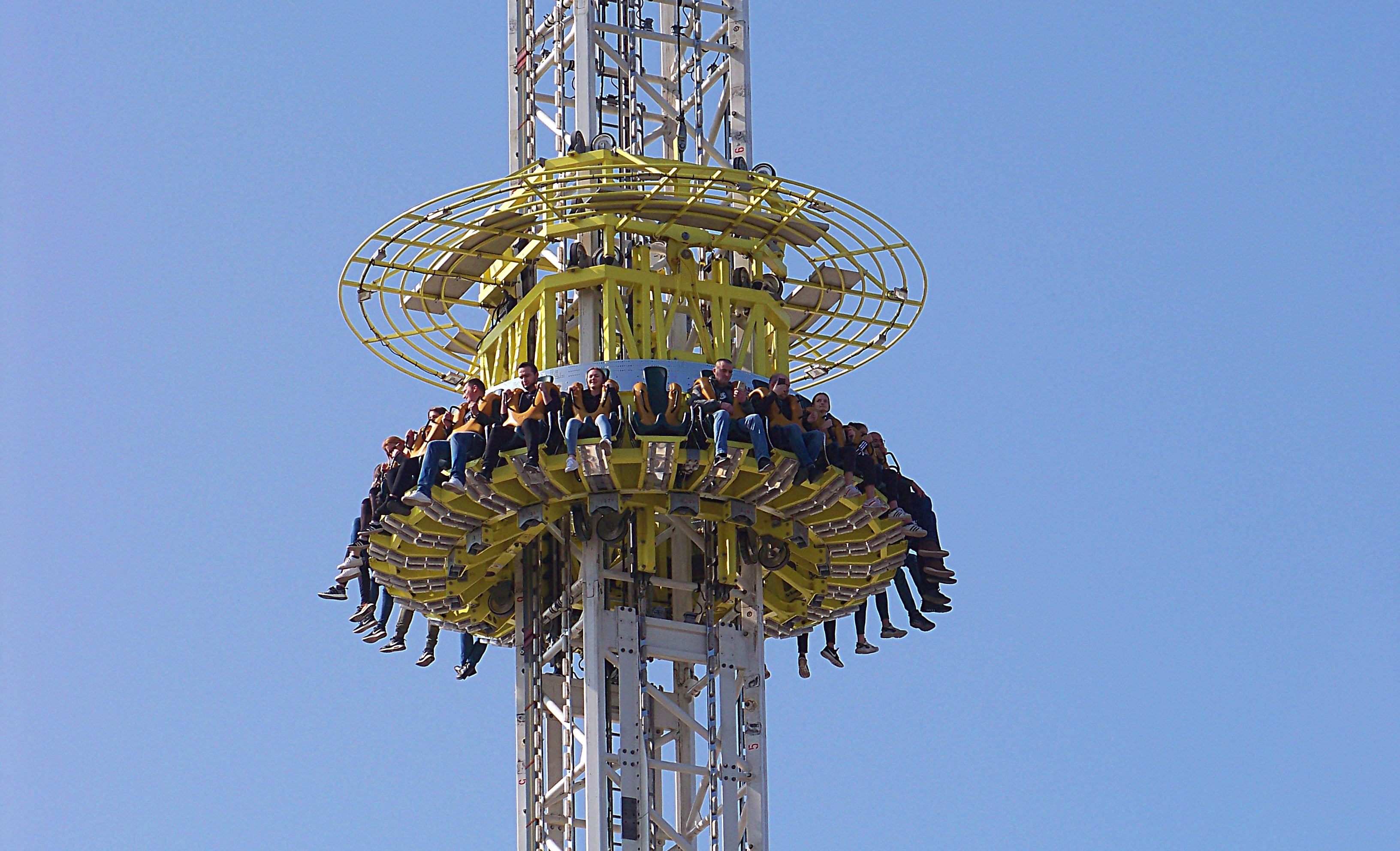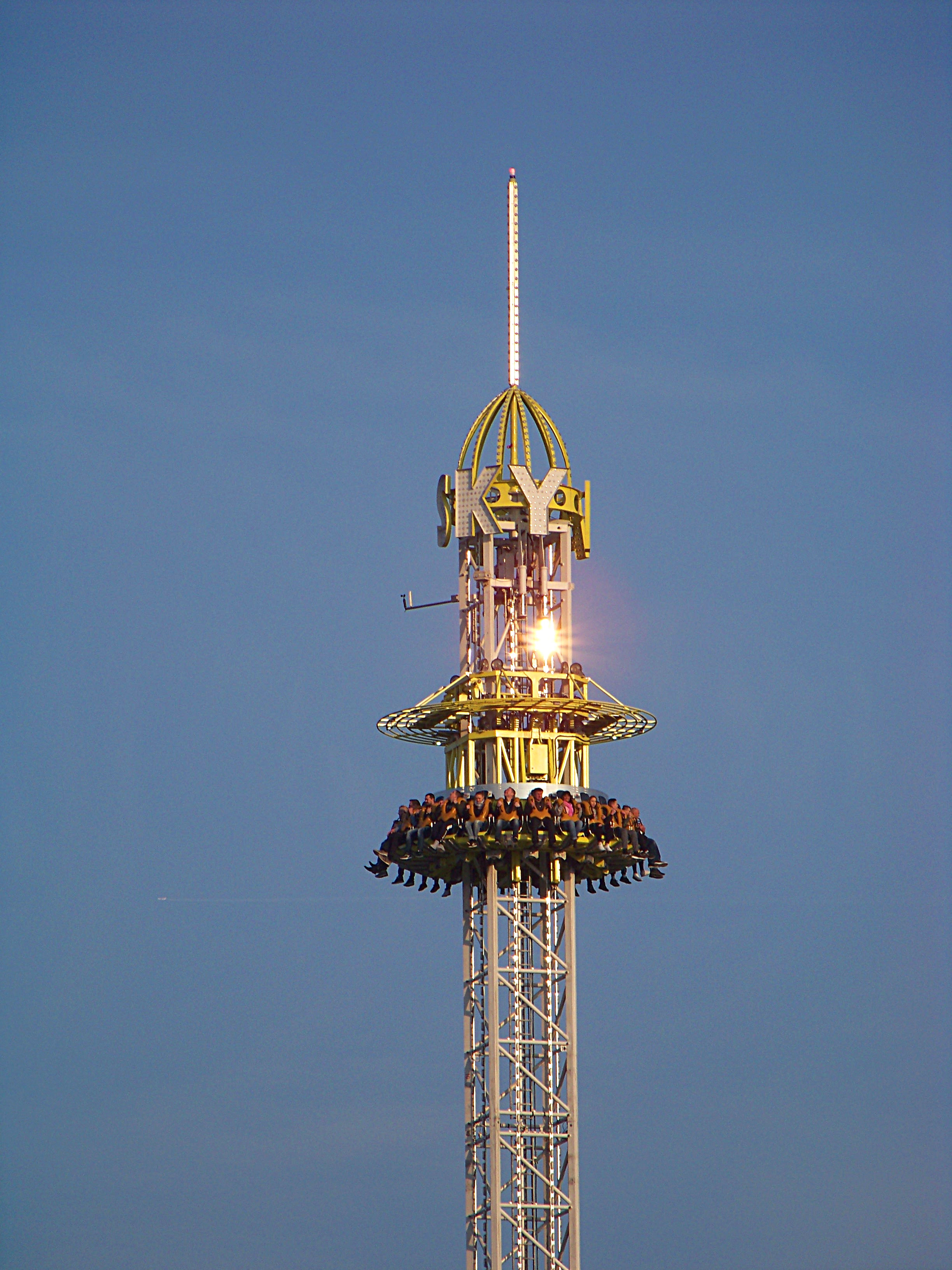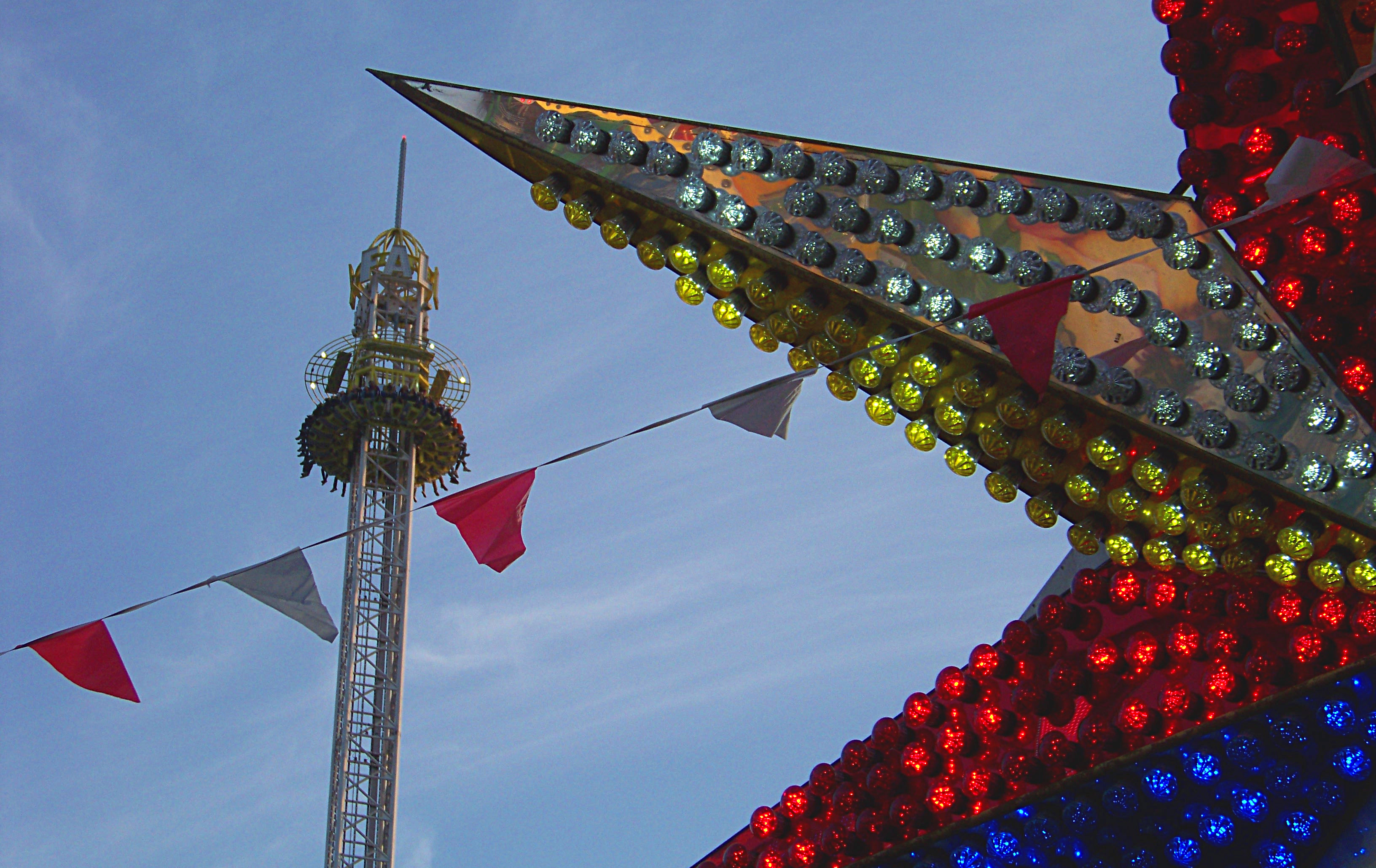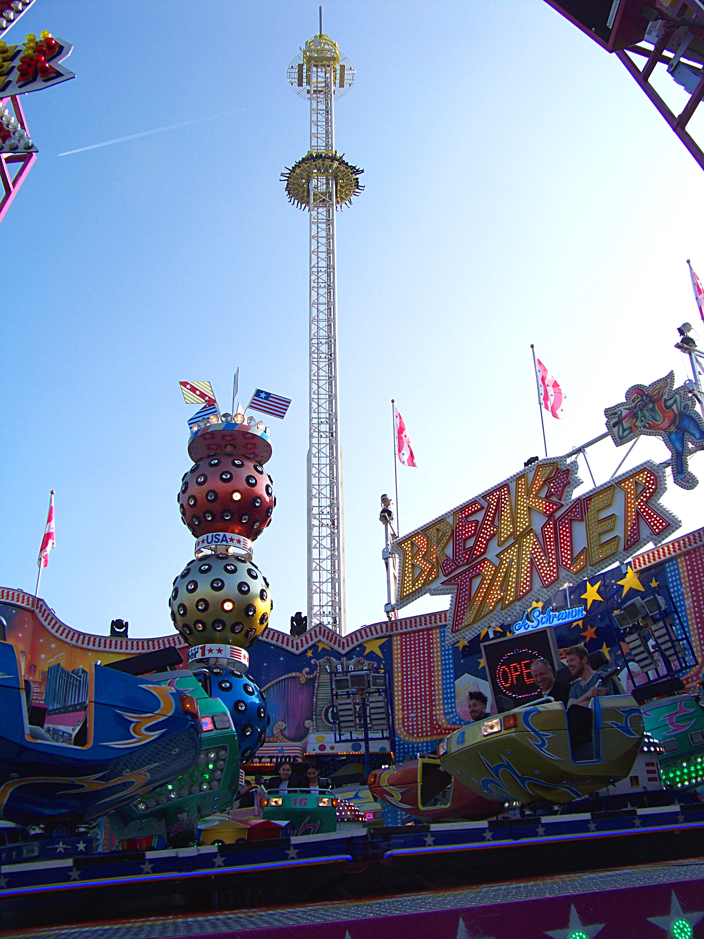 Auf der letzten Ecke des Kirmesrundlaufs steht das Geschäft, das schon auf einigen Fotos im Hintergrund zu sehen war: der Sky Fall von Goetzke.