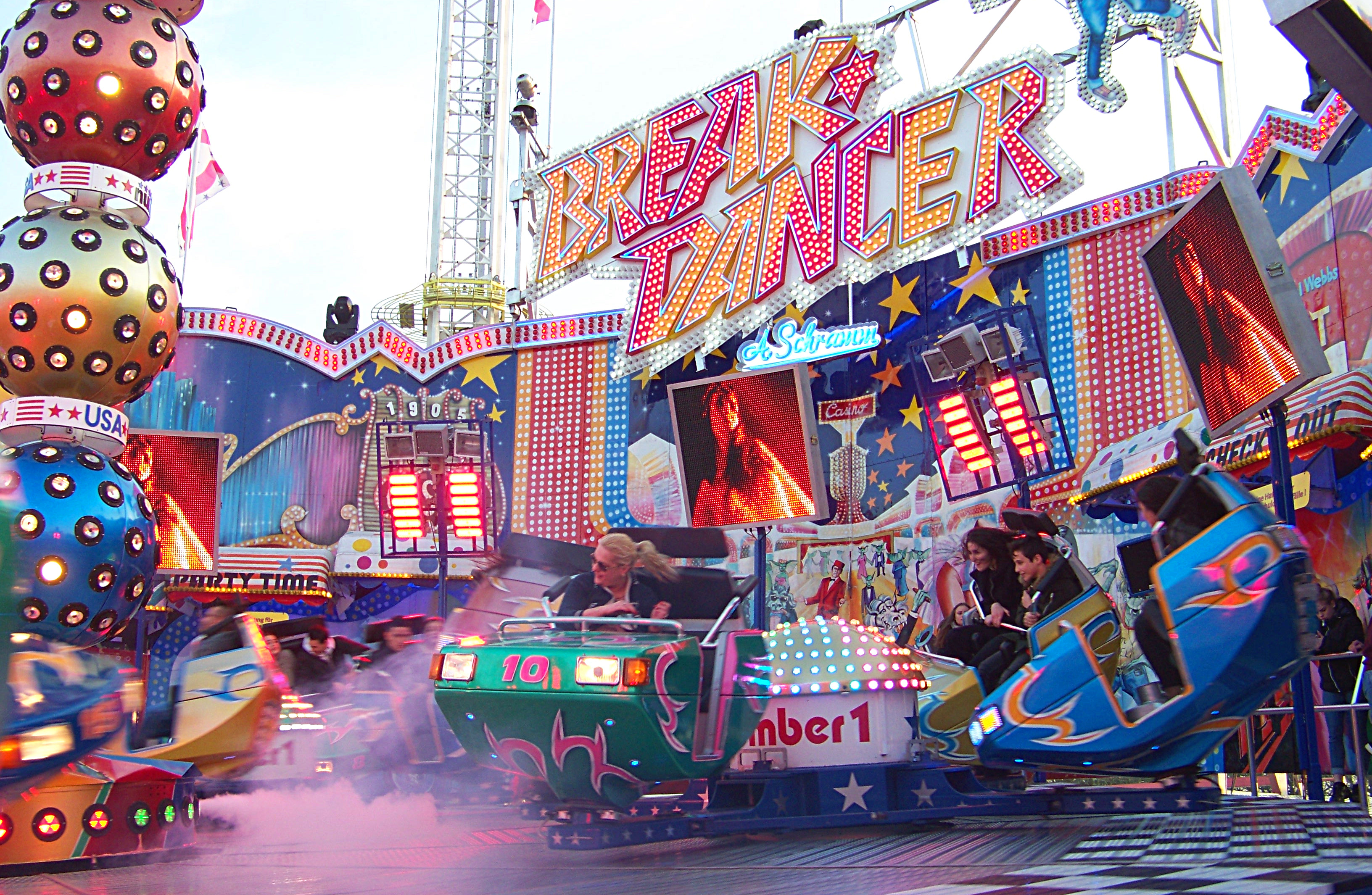 Gegenüber des großen Fabbri-Boosters steht der erste von zwei Autoscootern – hier das (neue) Exemplar von Eiserloh.