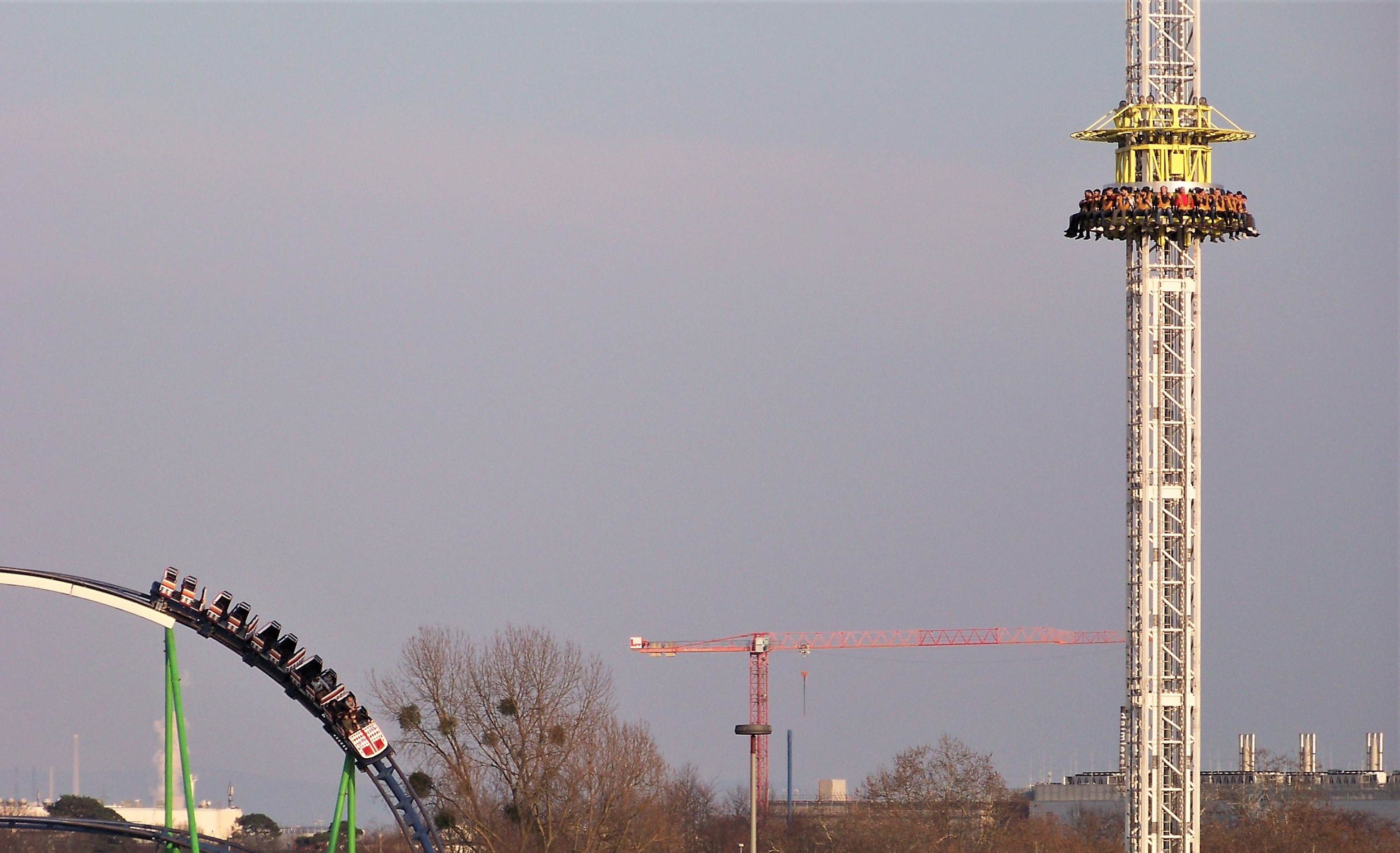 Gegenüber der Wildwasserbahn stehen der Hip Hop Fly von Lagerin...