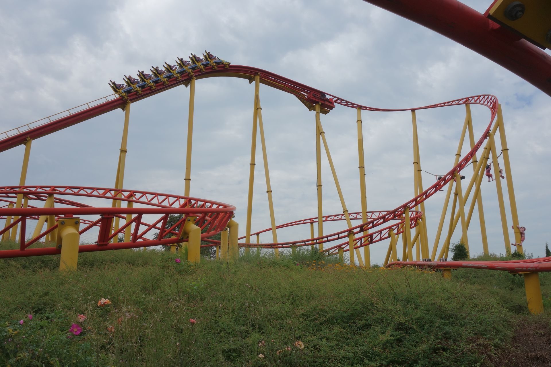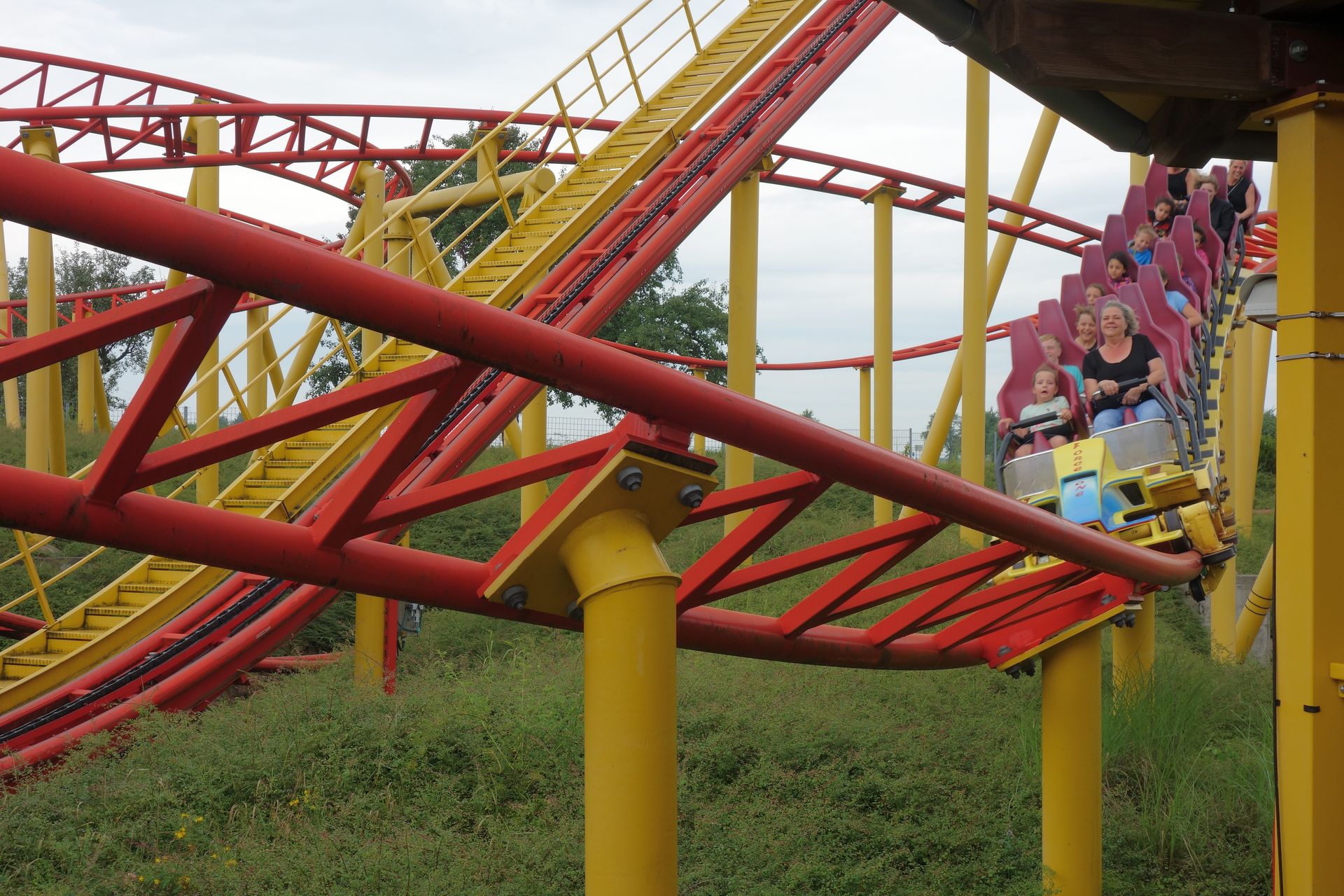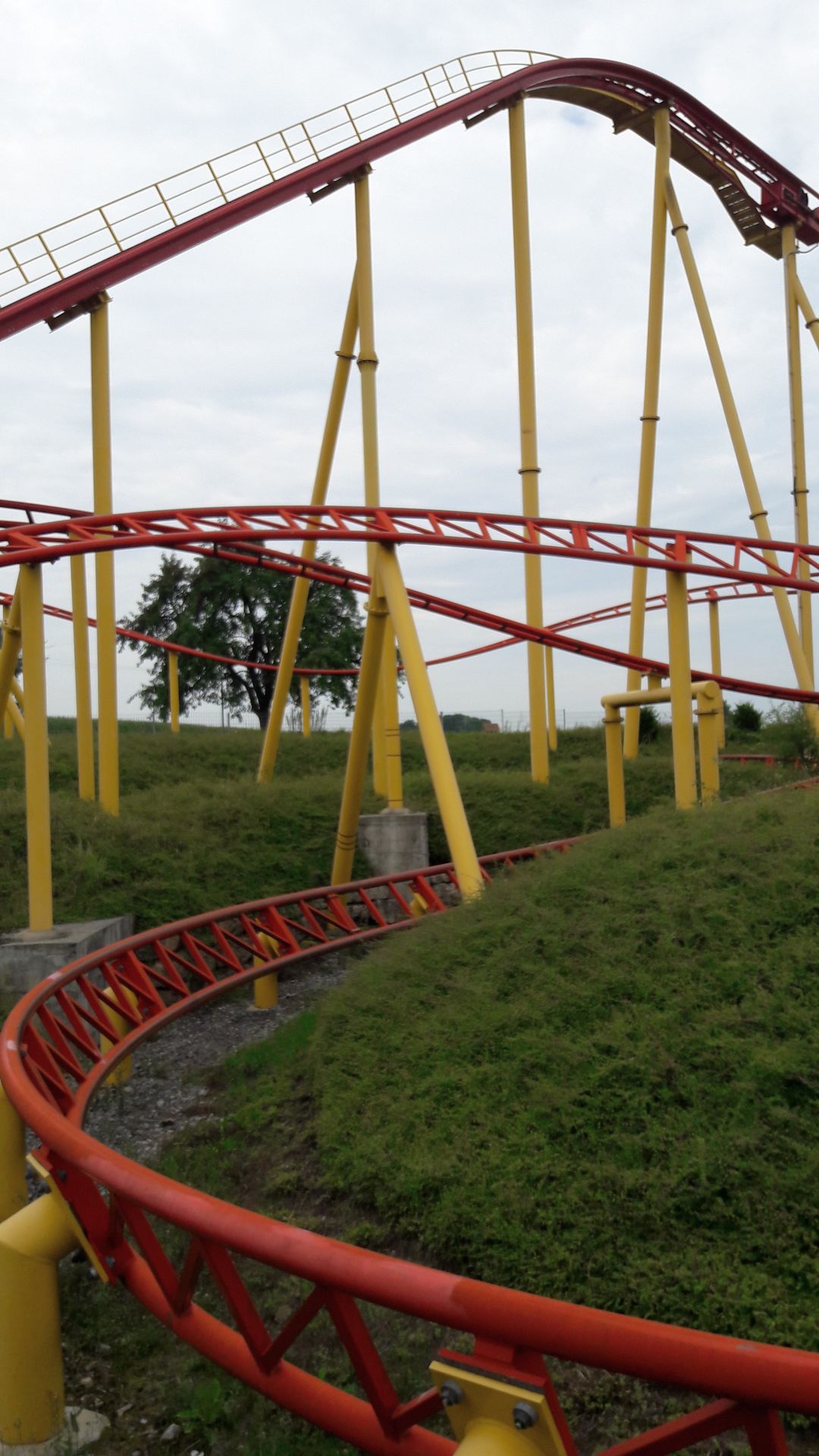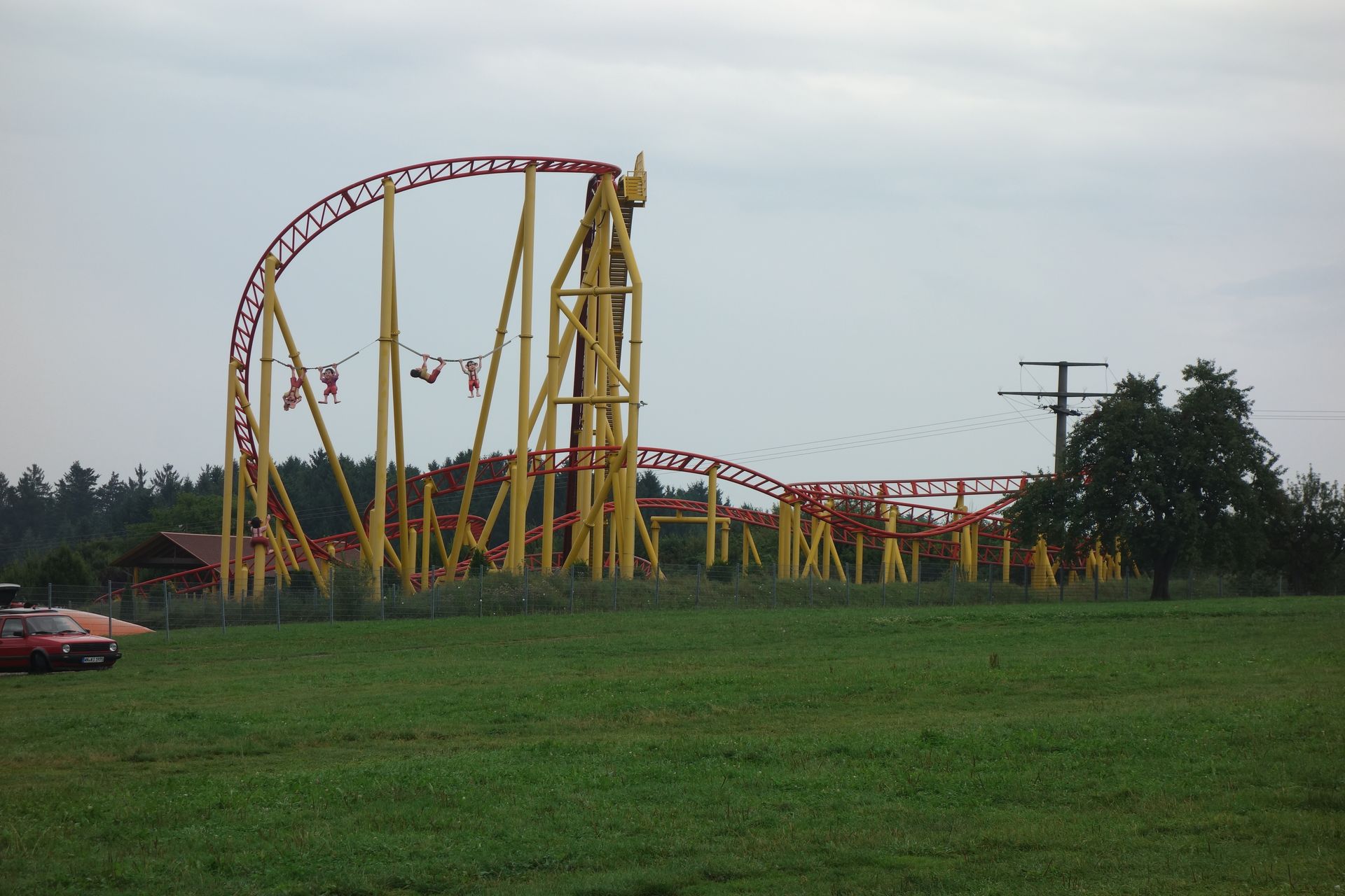Direkt am Ende dieser Wiese lachte uns auch schon die erste Achterbahn des Tages an.