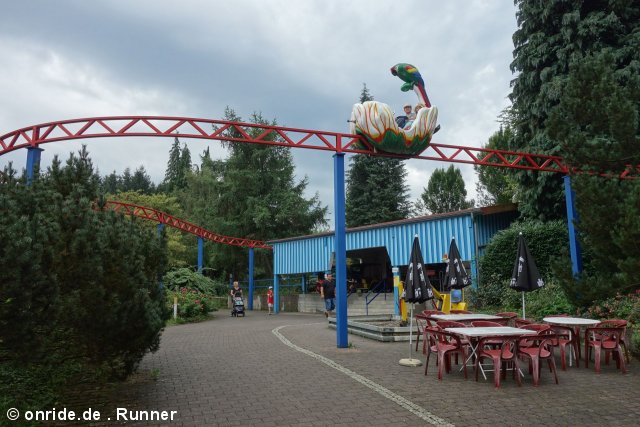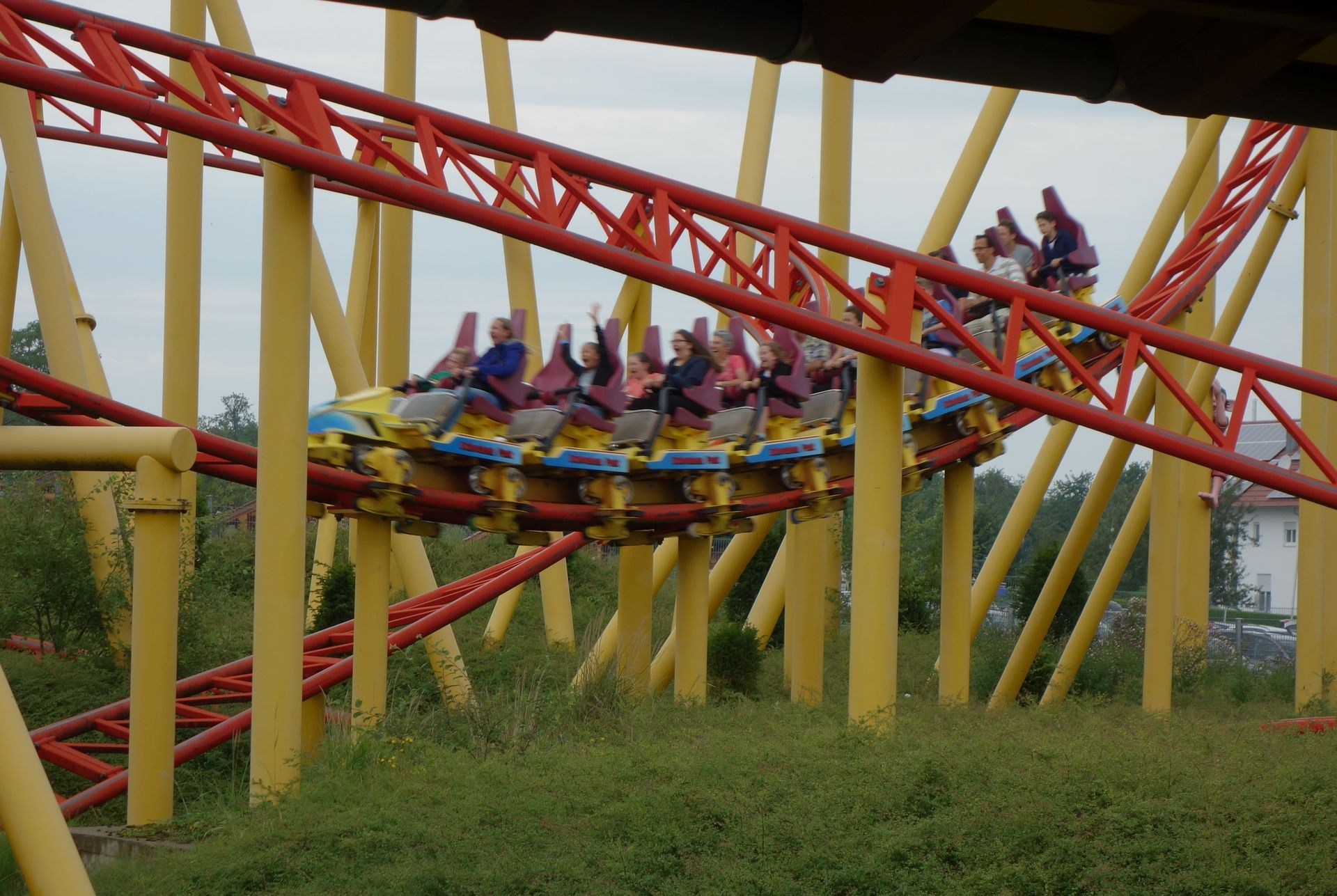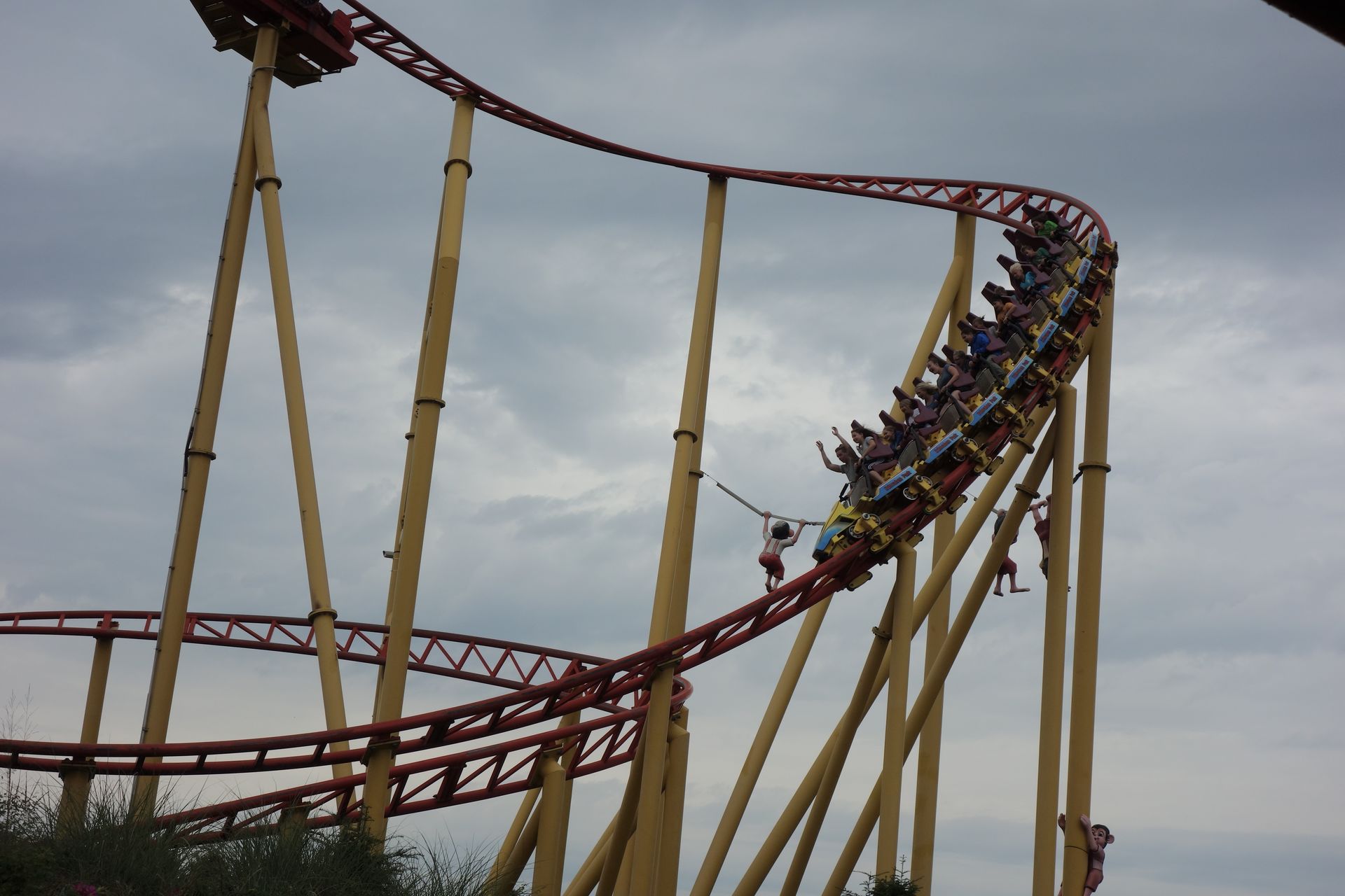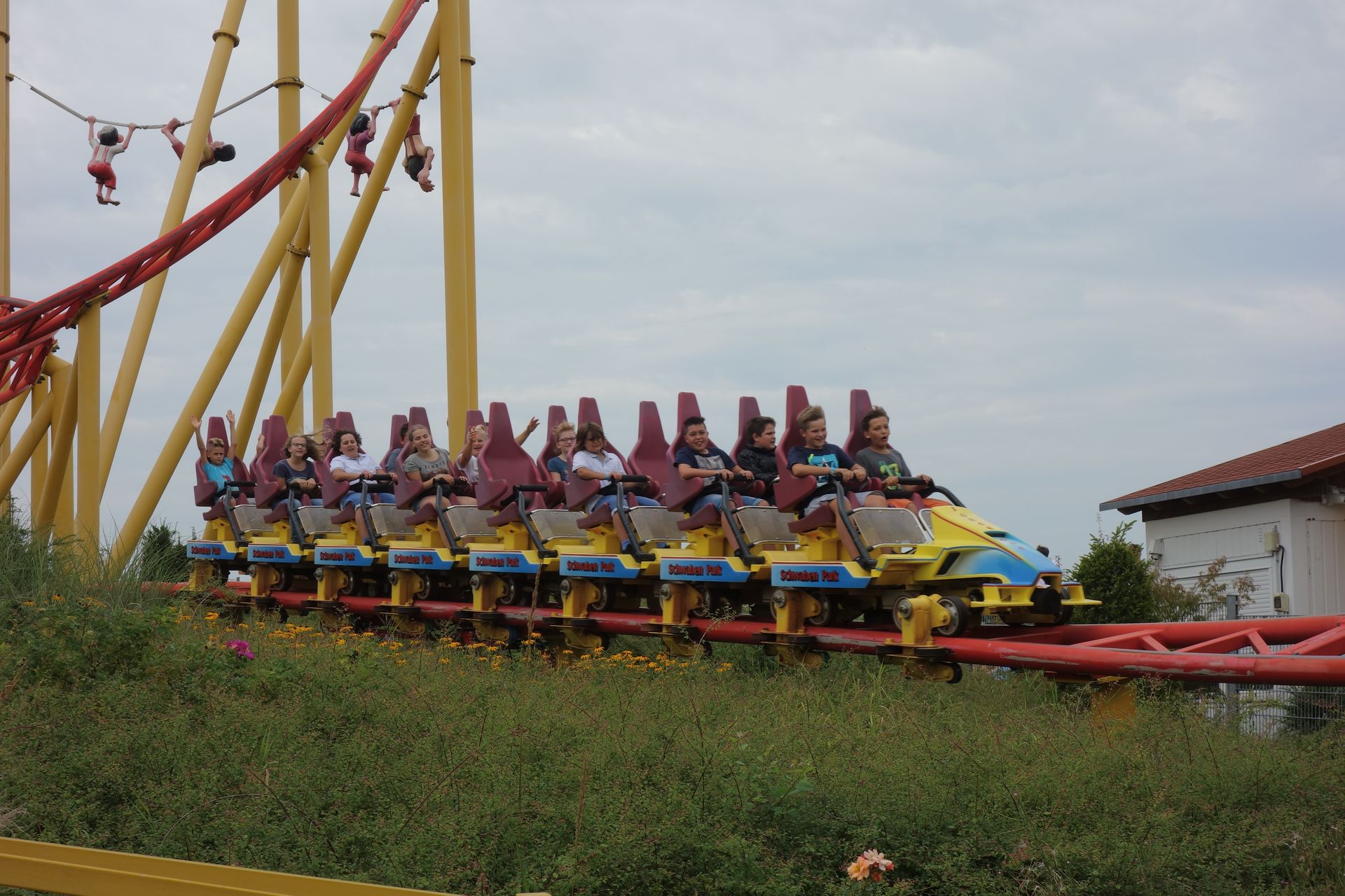 Direkt am Ende dieser Wiese lachte uns auch schon die erste Achterbahn des Tages an.