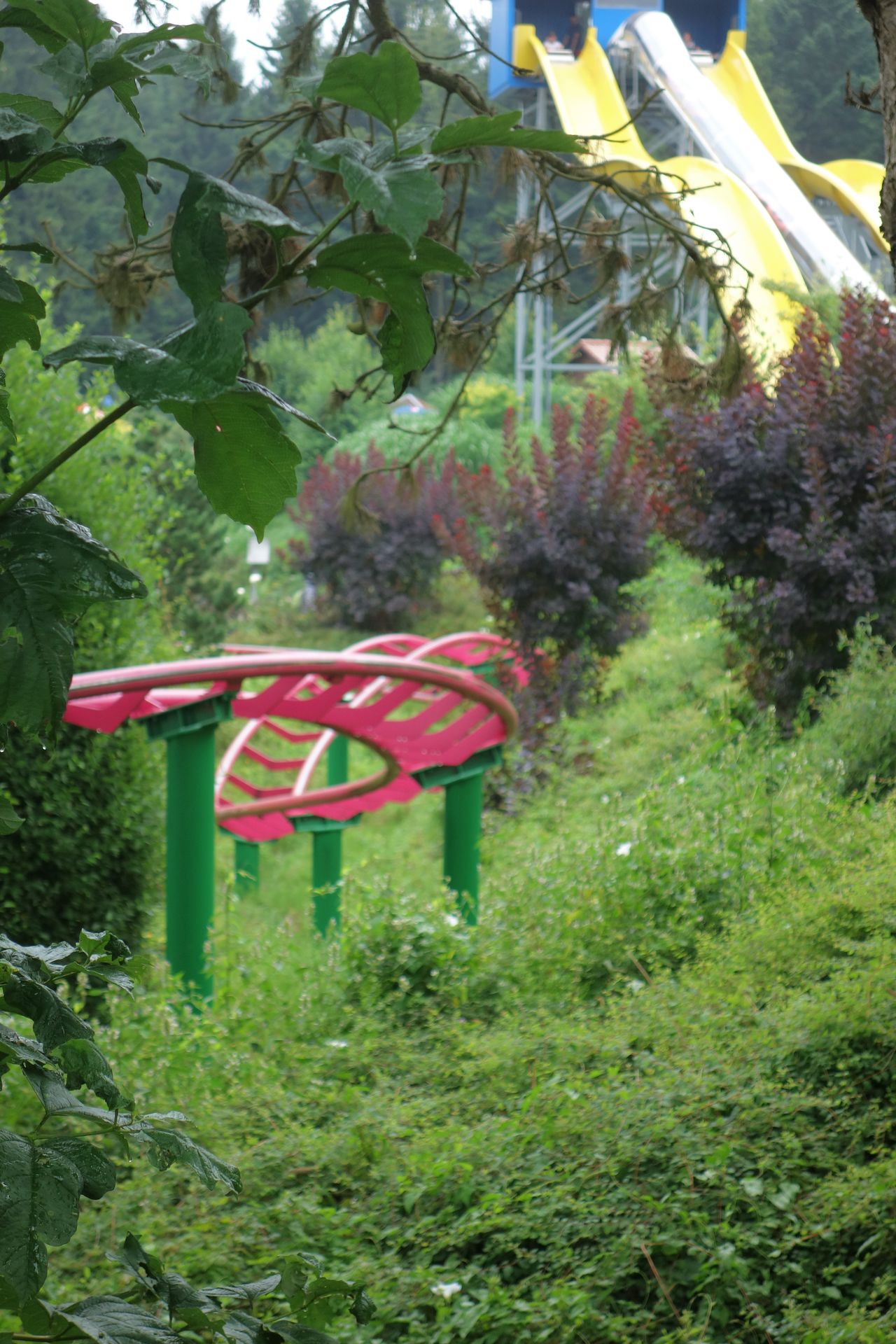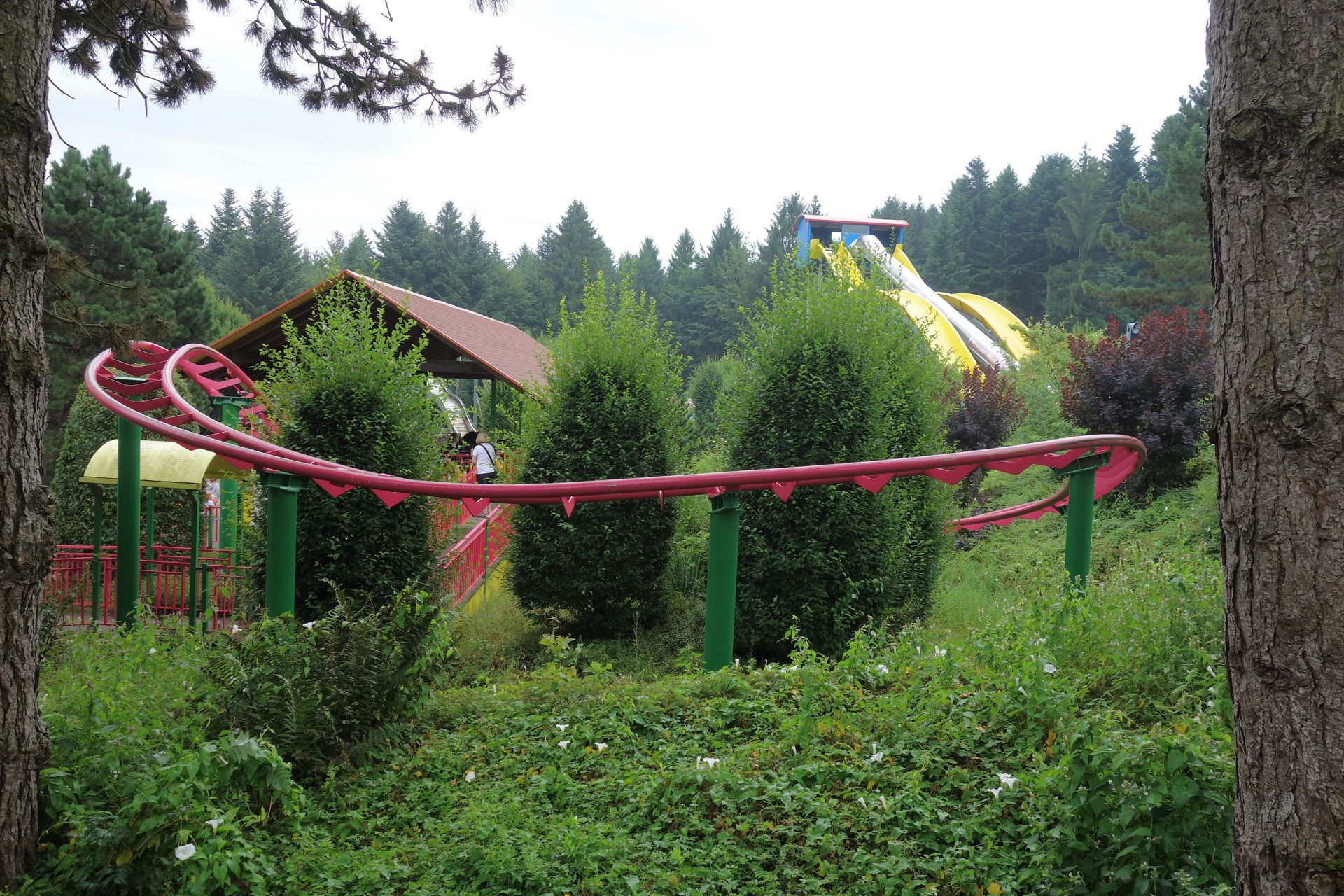 Die Achterbahn ließen wir zunächst links liegen und gingen den Berg hinab durch das grüne Zentrum des Parks.