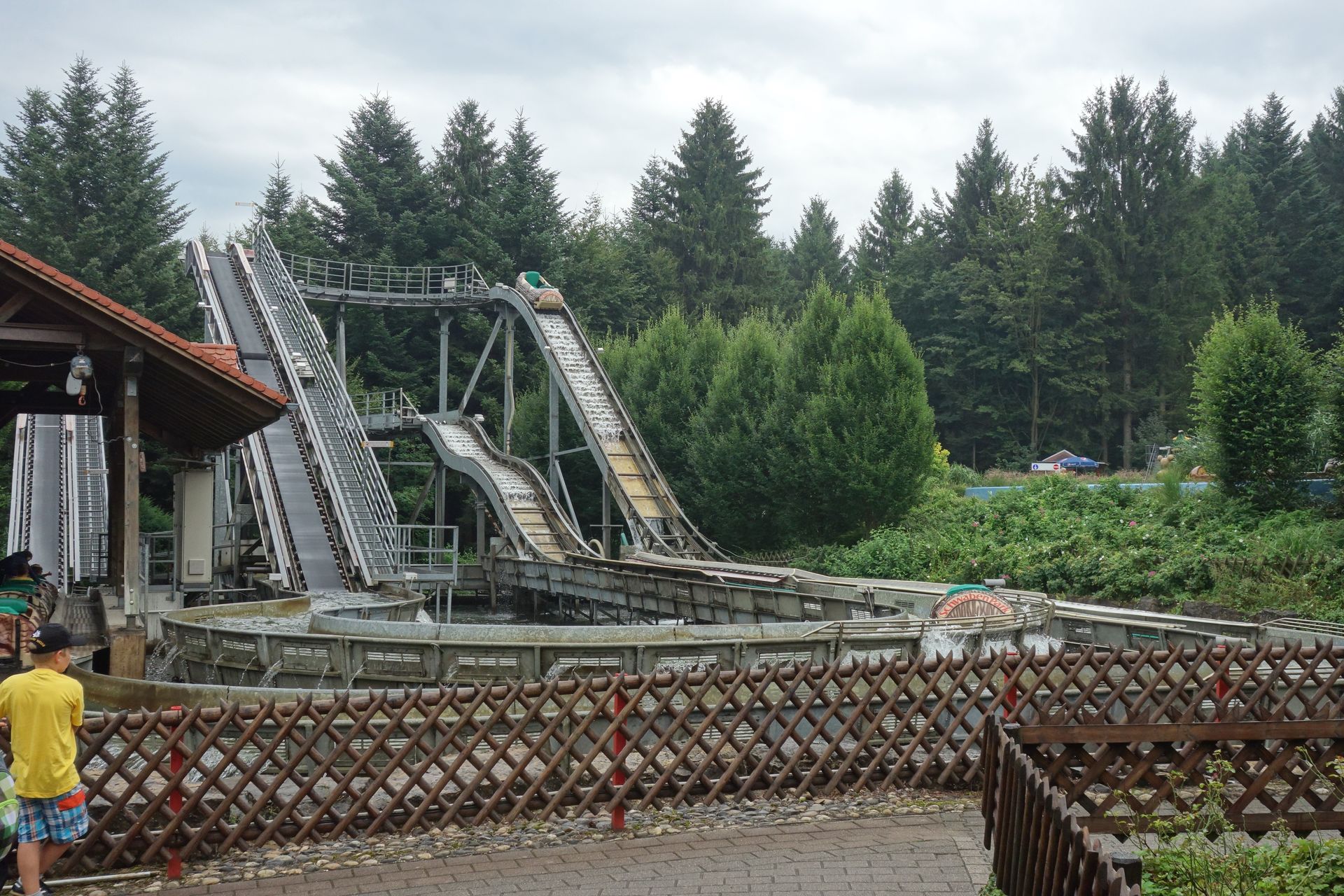 Schließlich kamen wir bei Bootsrutsche und Wildwasserbahn an.