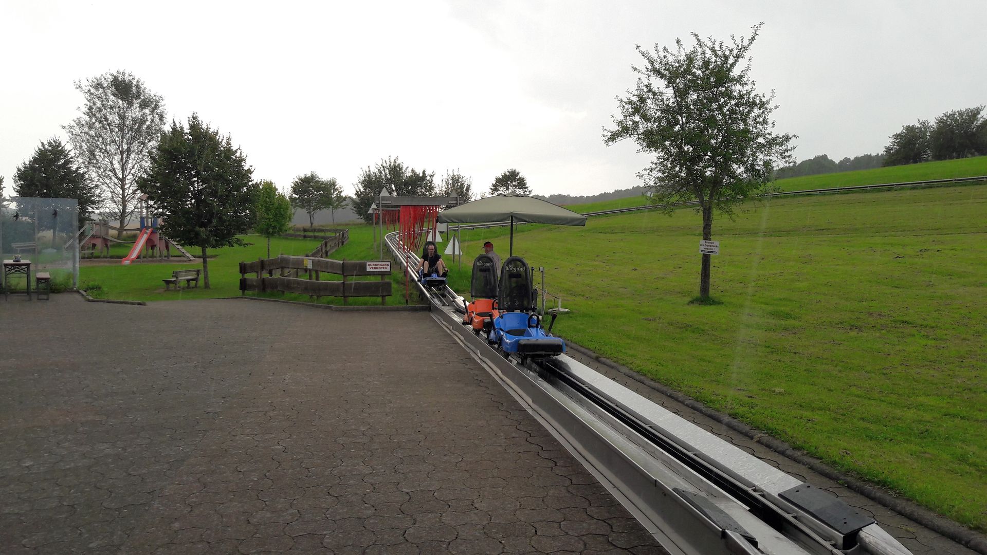 Ein perfektes Timing. Die Sommerrodelbahn hätten wir uns unter diesen Bedingungen abschminken können.