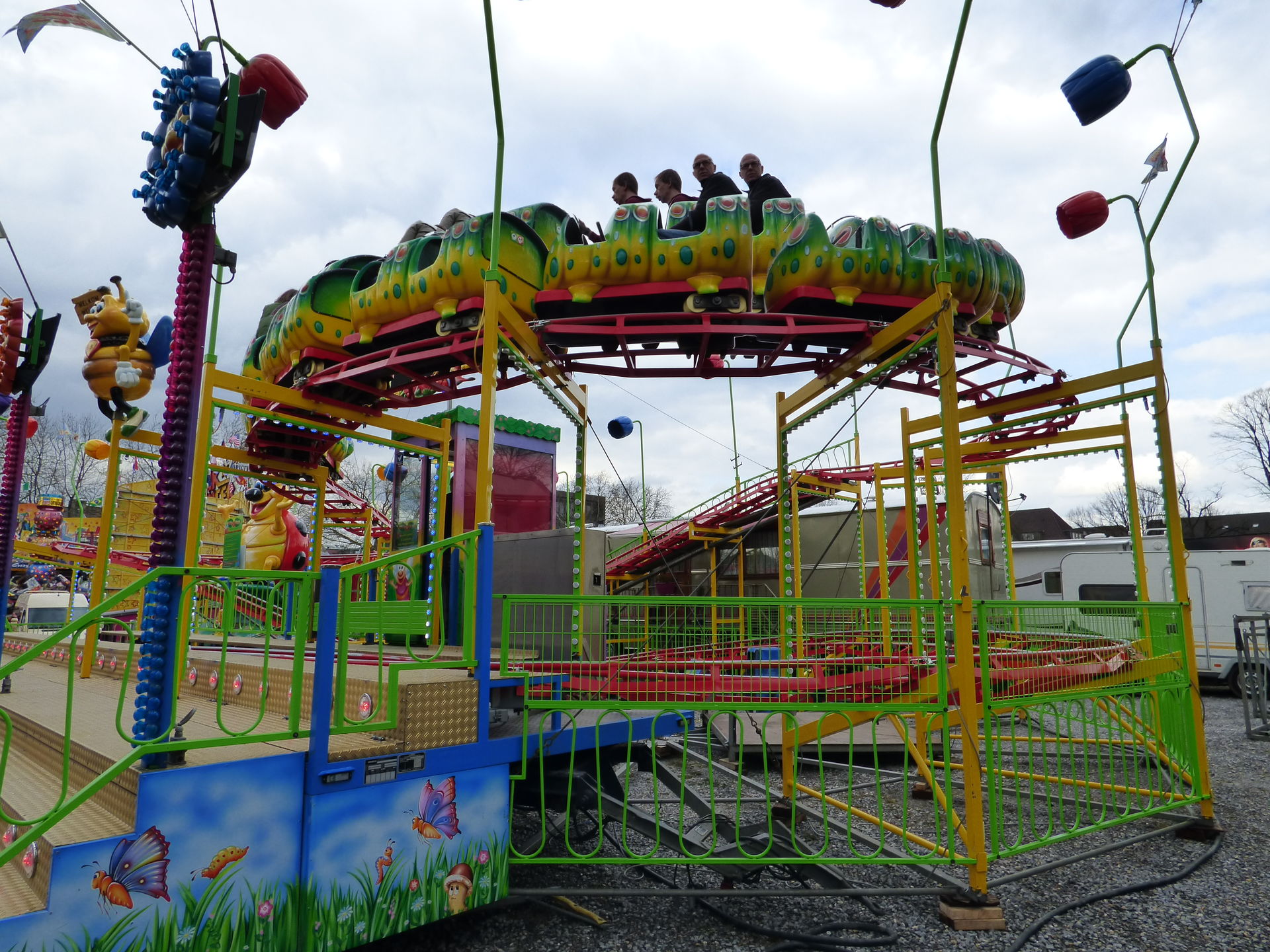 Seit langer Zeit steht in diesem Jahr auch mal wieder eine Achterbahn an der Castroper Straße. Es ist zwar nur die Familienachterbahn "Bugs & Bees", aber immerhin besser als gar nicht. Der Zuschauerzuspruch war auch recht ordentlich. Verwirrend: Die Betreiber haben entweder einen merkwürdigen Sinn für Humor, oder haben schlichtweg nach der Winterpause vergessen, die Sound Files zu ändern. Aus den Lautsprechern dröhnte zu Beginn in voller Lautstärke "We wish you a merry Christmas" und "Jingle Bells". Skuril.