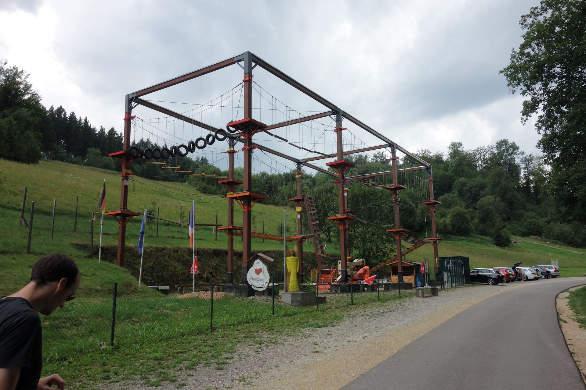 Aus Mangel an Ortskenntnis hatten wir das Auto etwas früh abgestellt und mussten noch einige Meter am zugehörigen Hochseilgarten vorbeilaufen.
