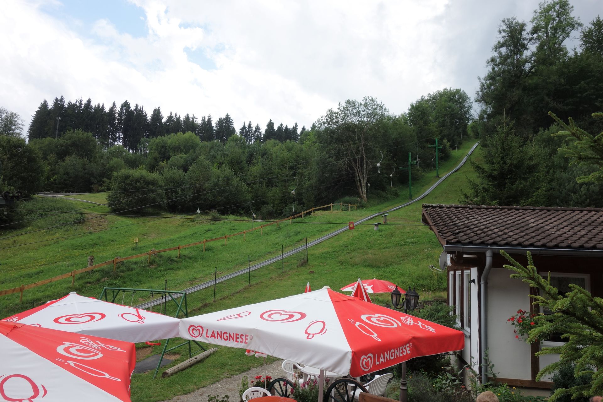 Leider ist der Rest der Strecke sehr schwer einzusehen. Daneben scheint sich noch eine Tubing-Bahn den Hang hinabzuschlängeln.