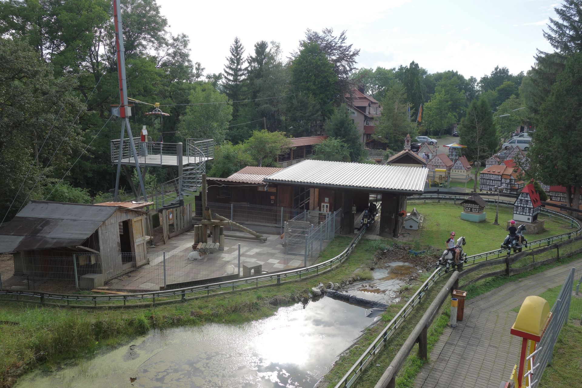 Zudem gibt es noch eine Pferdereitbahn, eine Heege-Seilbahn, ein kleines Karussell und eine Eisenbahn, die das Areal umrundet.