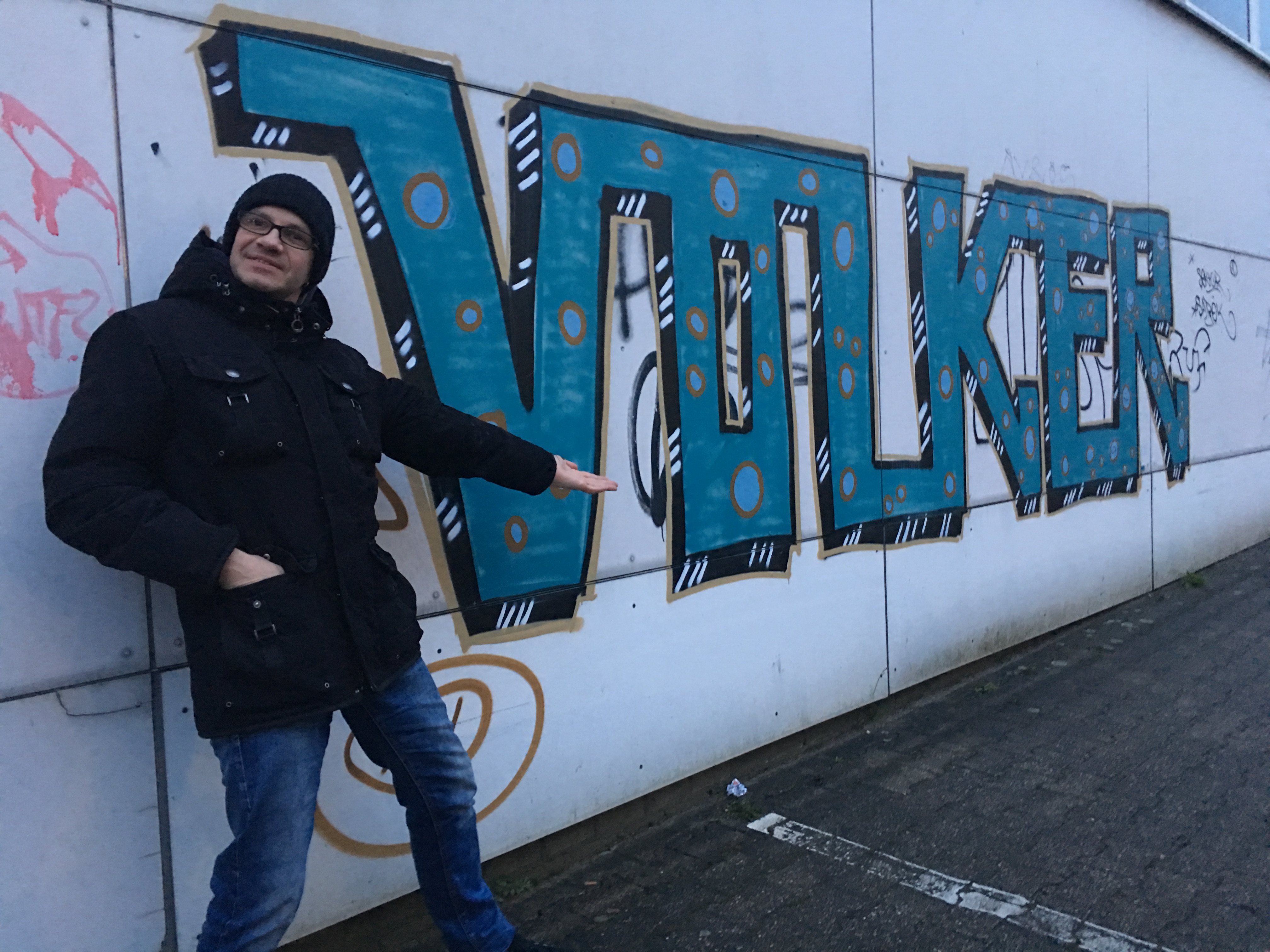 Volker, der alte Schmierfink, musste natürlich noch sein Tag in Aachen hinterlassen.