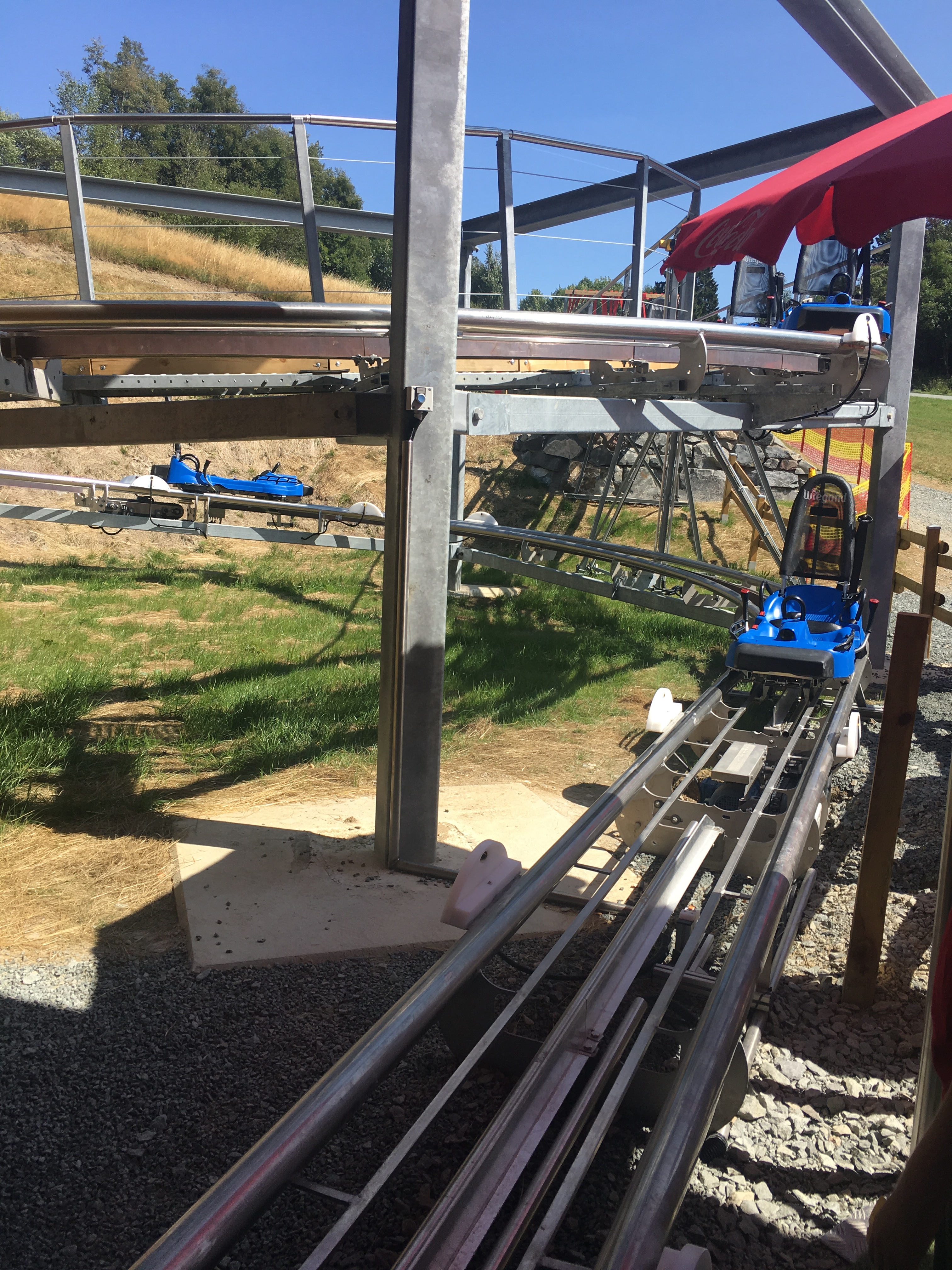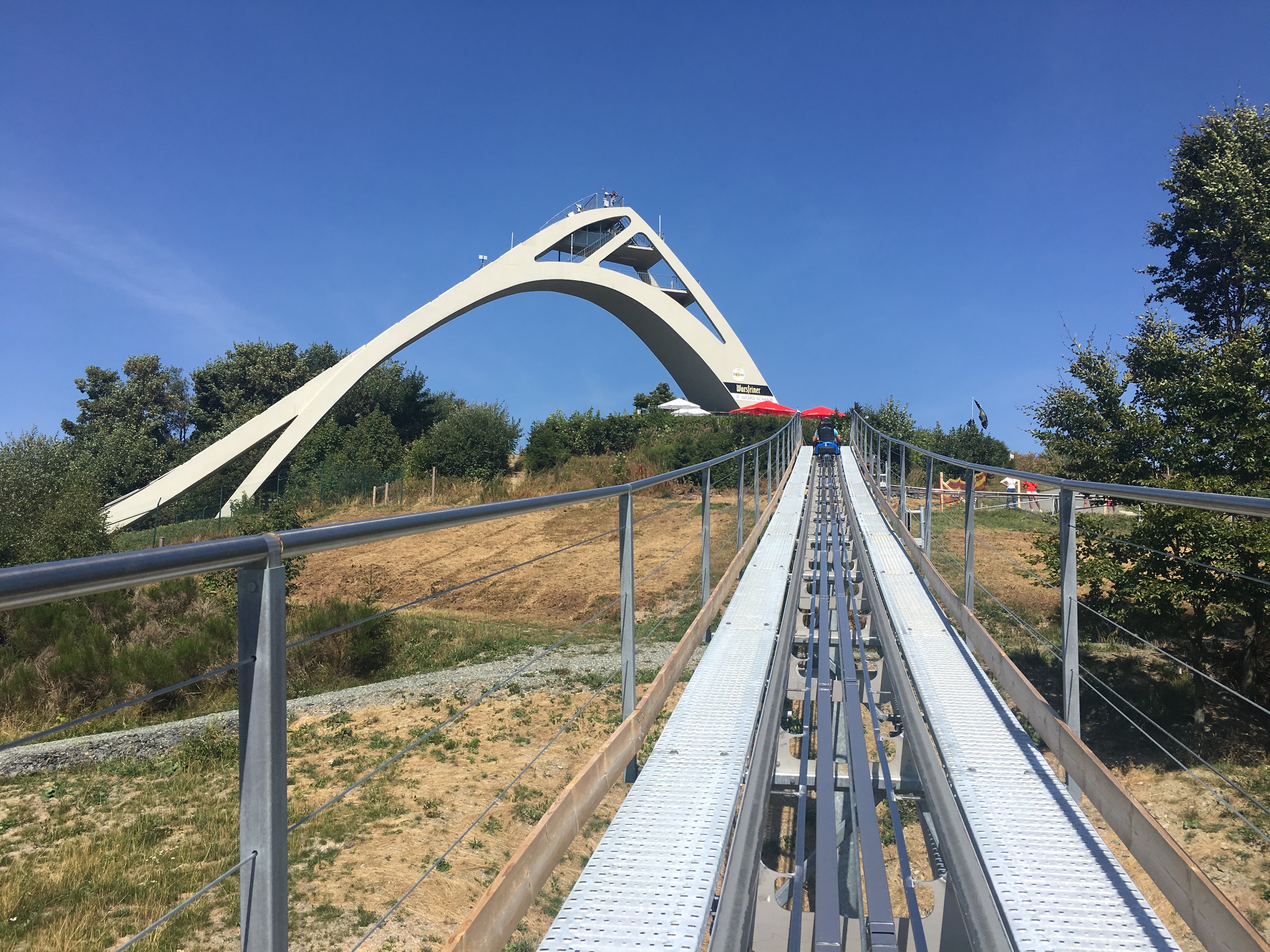 Normale Sommerrodelbahn? Die Brandauer-Bahn wird eben die Brandauer-Bahn mit der Monorail-Schiene... Die eiden Bahnen stehen sich übrigens unmittelbar gegenüber.