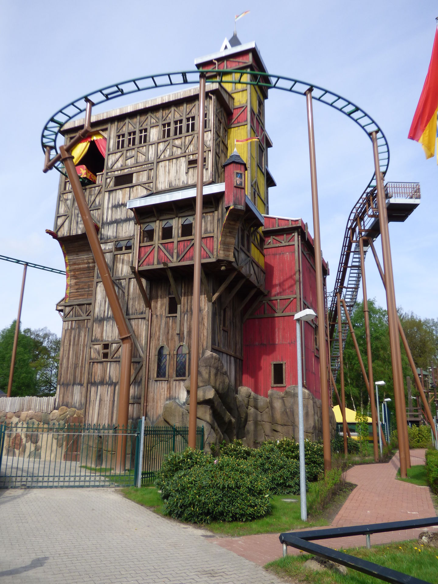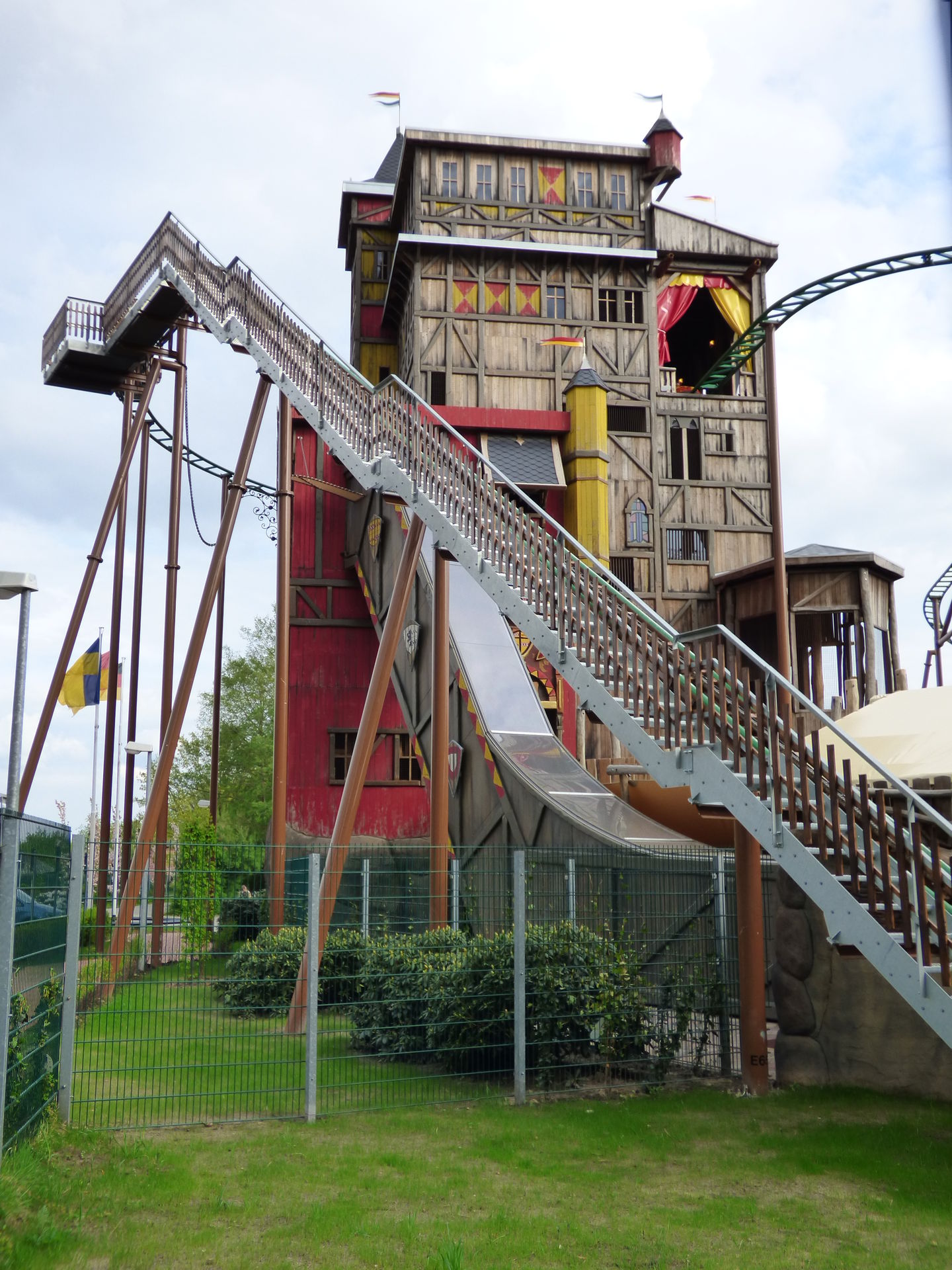 Der Burgturm ansich ist auch richtig schön gestaltet worden. Innen drin sehr schön thematisiert und auf dem Weg zu Achterbahn gibt es auch im Inneren des Turms nochmal zahlreiche Spiel und Klettermöglichkeiten für die Kinder. Ganz oben im Turm findet man auch noch ein Dunkellabyrinth. Hier wurde wirlich perfekt investiert und mit viel Liebe zum Detail gearbeitet.