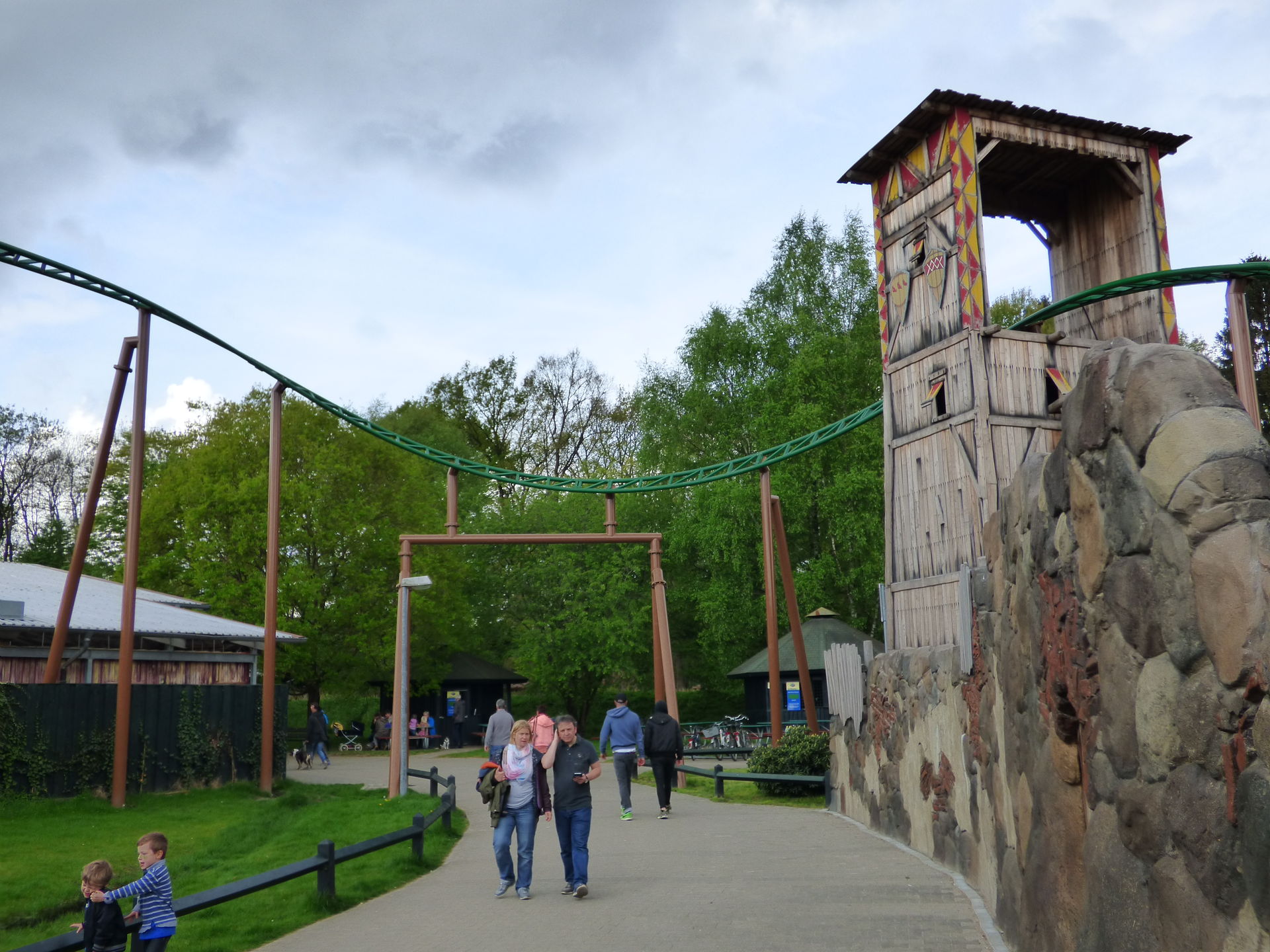 Während unseres Rundgangs trafen wir dann auch irgendwann auf die mysteriöse "Teleralley". Heißt die so? Habe ich zumindest mal irgendwo gelesen, der Parkplan gibt keinen Aufschluss über den Namen. Wir haben hier eine popelige Kinder Seilbahn. Eine Spielplatzattraktion, für die erwachsene Menschen mit der Kassendame feilschen, um kostenlos in den Park zu kommen, sich einmal da drauf zu schwingen und den Park wieder zu verlassen?(zumindest vor Burg Arkan). Eine Seilbahn, für die erwachsene Menschen Pfand an der Kasse hinterlegen, zu dem Ding rennen, ihren Arsch drauf schwingen, wieder zu Kasse rennen, weil sie das Pfand nur wieder bekommen, wenn sie nach 20 Minuten wieder da sind? Um dann zu Hause stolz einen Haken zu machen? Puuuh. Alles klar, nachdem ich das Ding jetzt live gesehen habe, macht das diese Geschichten nur noch umso peinlicher.