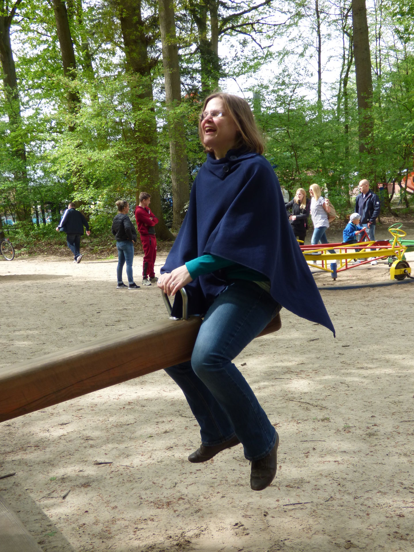 In den nächsten Stunden wurde jetzt erstmal gerutscht, gewippt, geklettert, geschaukelt und gehüpft. Es wurde alles angetestet und wir hatten einen Heidenspaß. Das eine oder andere Gerät stellte uns zwar vor kleine oder auch große Herausforderungen. In die einem kamen wir schlecht rein, aus den anderen überhaupt nicht wieder raus. Aber wir hatten Spaß inne Backen. Und das ist das, was zählt.