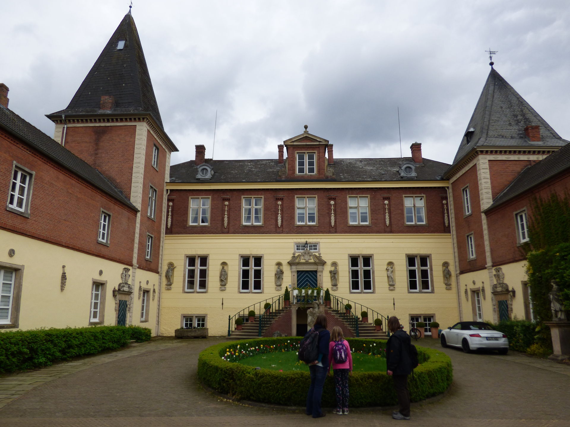 Dennoch kam es jetzt erst zu einem Erstbesuch. Zusammen mit Manuela und Ralf machten wir uns auf den Weg ins Emsland. Der Wetterbericht erwies sich als totale Ente, noch am Morgen hieß es für Haren Regen, Sturm und stark Windböen. Was wir fanden war herrlichster Sonnenschein und ein paar Wolken und Null Regen. Einem wunderbaren Tag in Schloss Dankern stand also nichts im Weg.