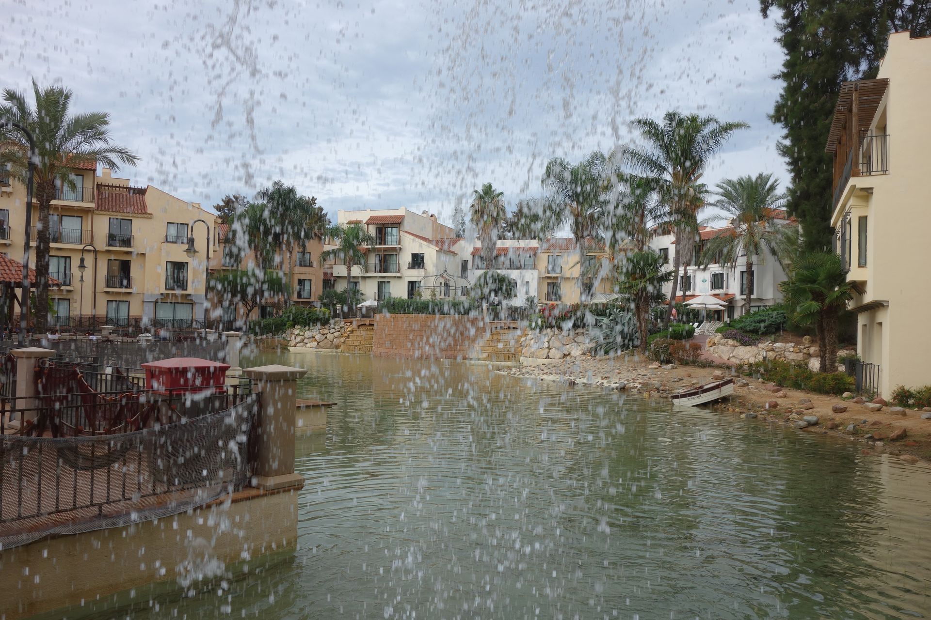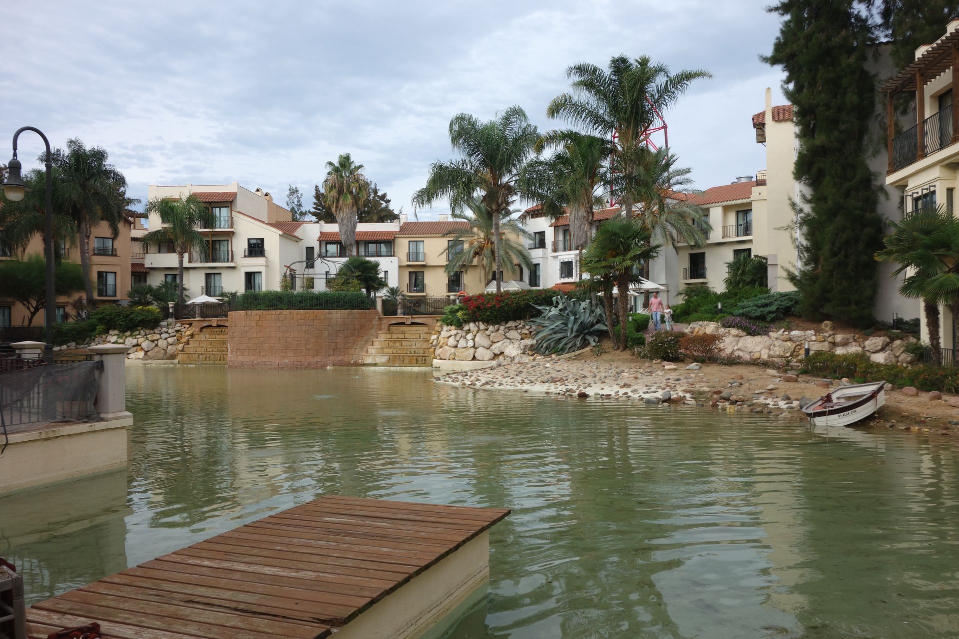 Vorbei am Pool direkt vor unserer Terrassentür entdeckten wir dann sogar noch eine Abkürzung zum Hauptplatz mit den Restaurants und dem Parkeingang.